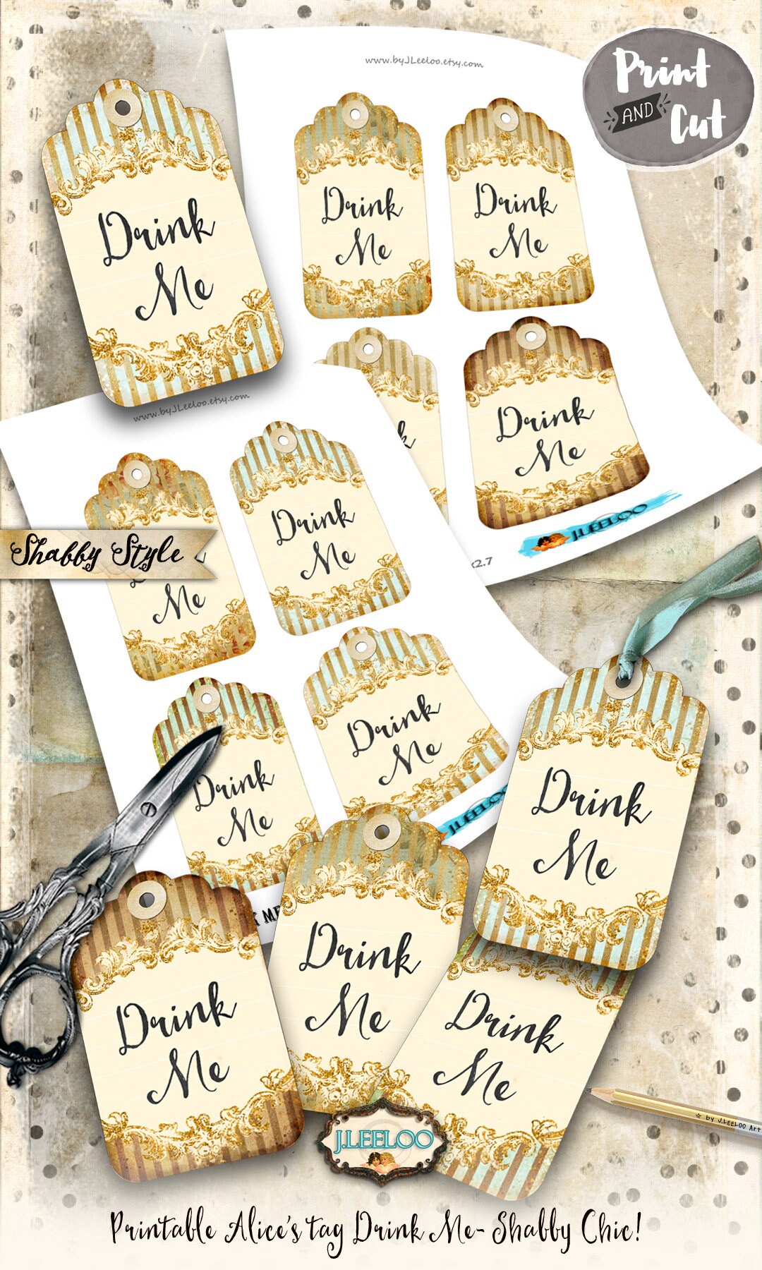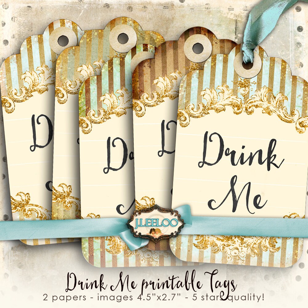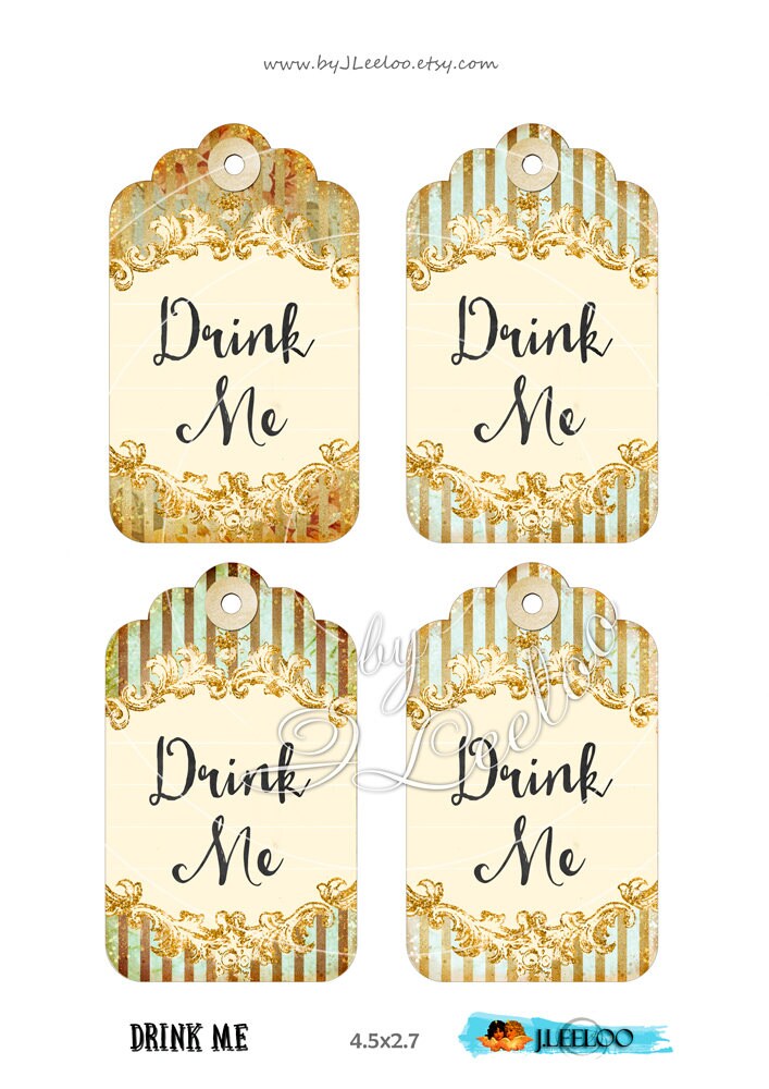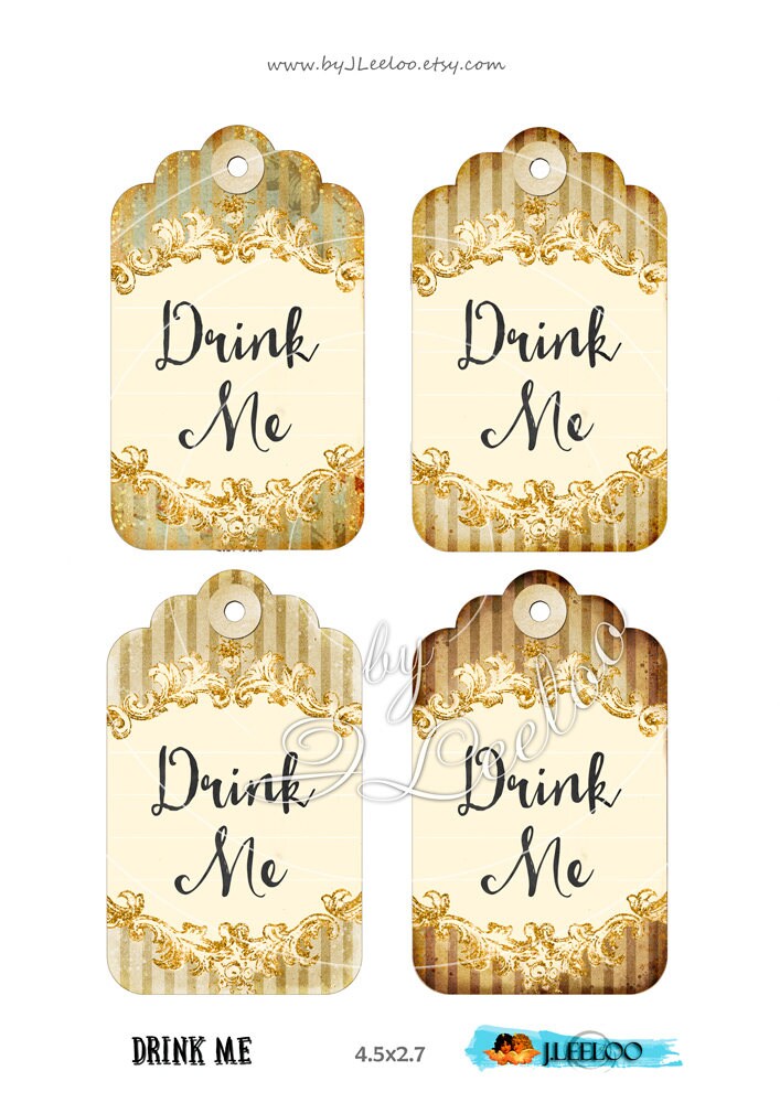DRINK ME - Digital collage sheets: Alice Wonderland tags download and print for hang tags, labels, scrapbook, jewelry holders, cards, and your others craft project.