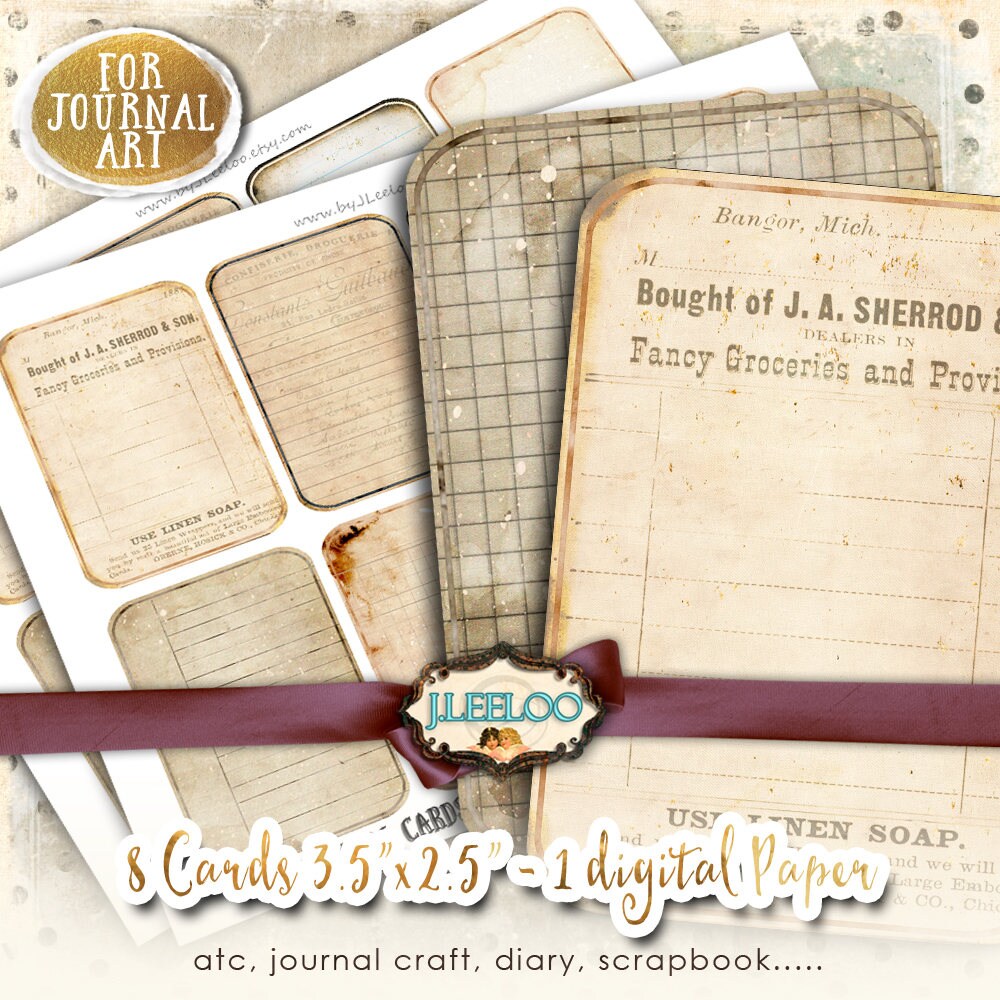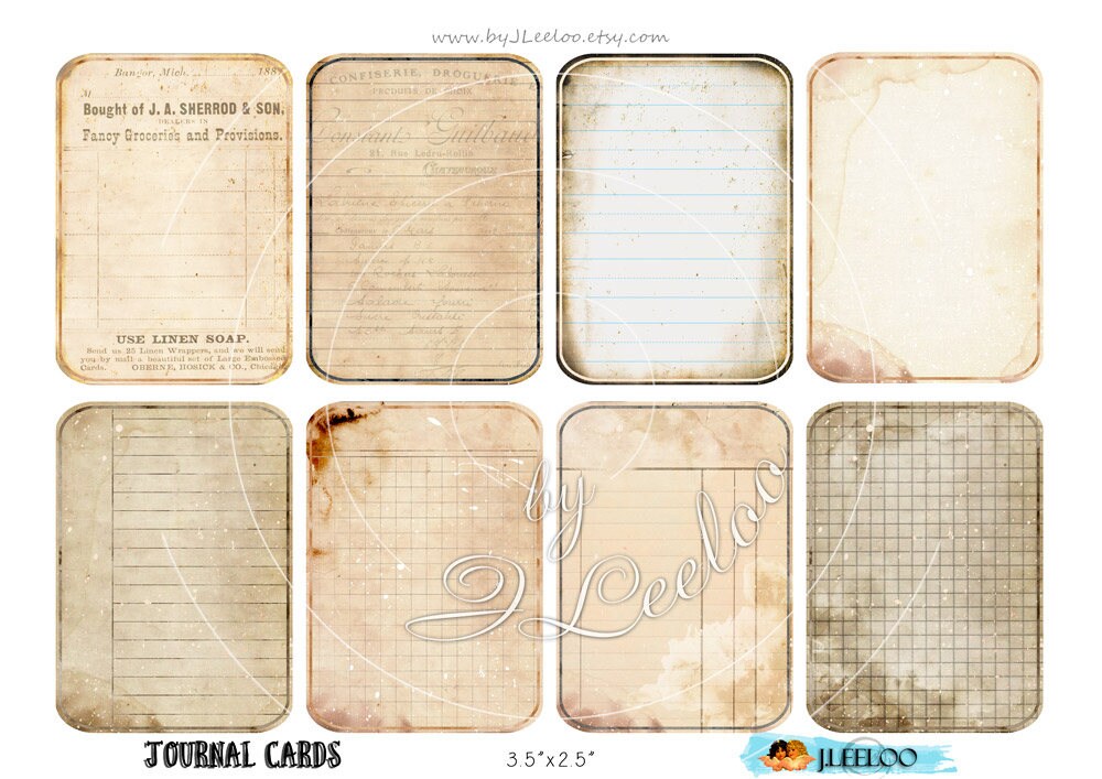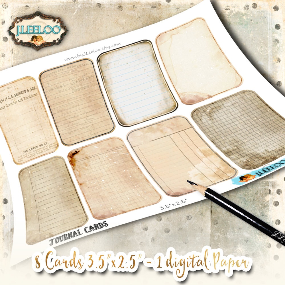 JOURNAL CARDS Digital Download - Printable digital collage sheet - Paper for your artwork: scrapbook, diary art, hang tags, jewelry holders, invitations, greetings cards or backing cards.... for your creativity!