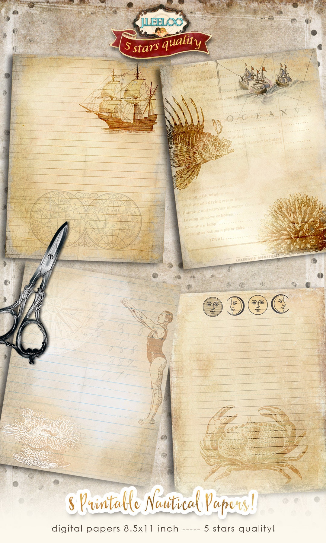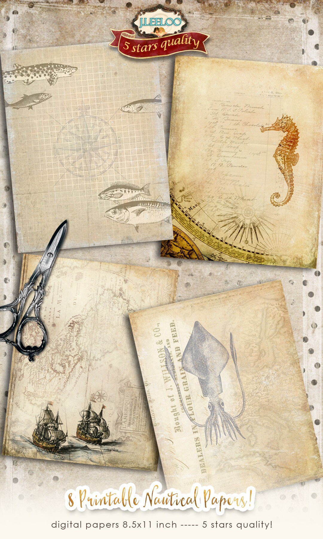 NAUTICAL Instant Download - digital collage sheets for journal art, scrapbook, bookmaking pages, stationery, background, diary, invited, iron-on transfer, card making.... print it as many time as you want.