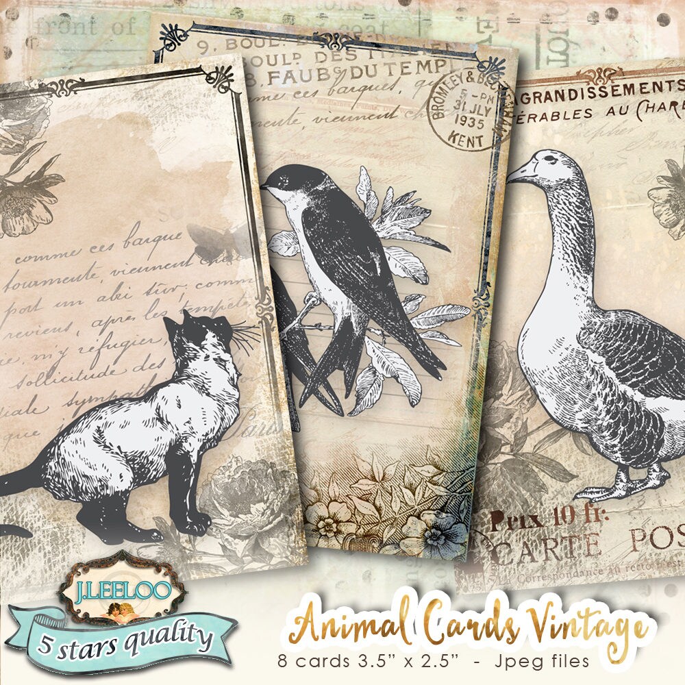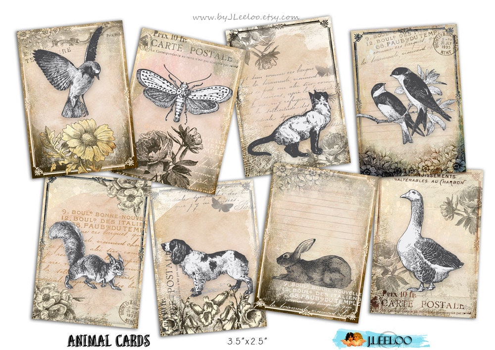ANIMAL CARDS Digital Download - Printable digital collage sheet - Paper for your artwork: scrapbook, diary art, hang tags, jewelry holders, invitations, greetings cards or backing cards.... for your creativity!