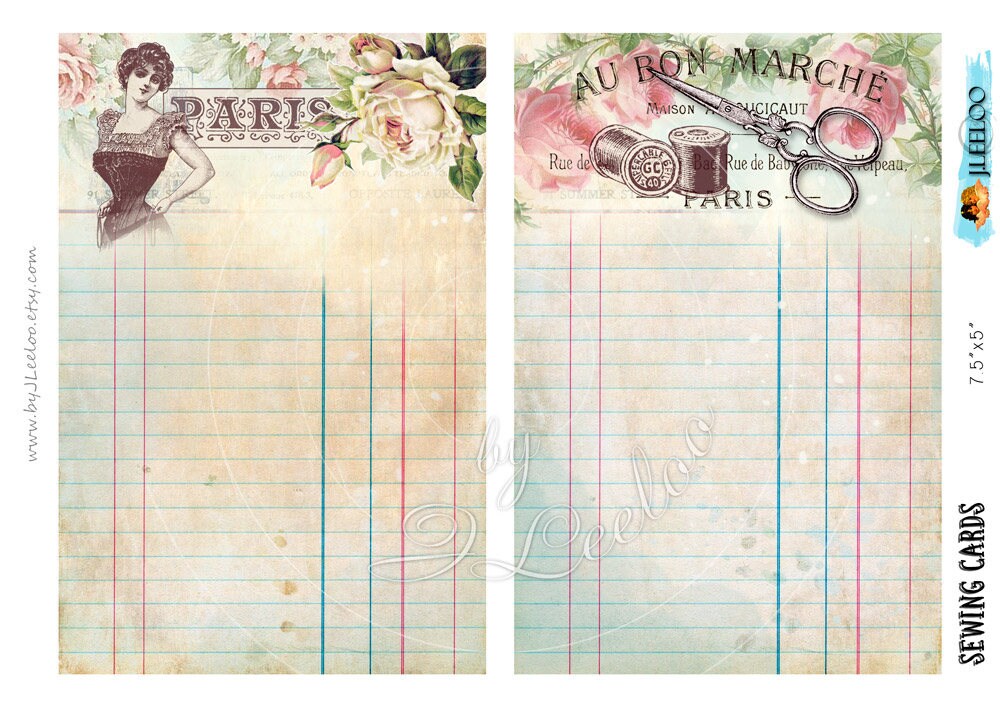 SEWING CARDS Digital collage sheets: download and print for paperwork, tags, jewelry, cards, mix media, scrapbooking, journal kits and your others craft projects.