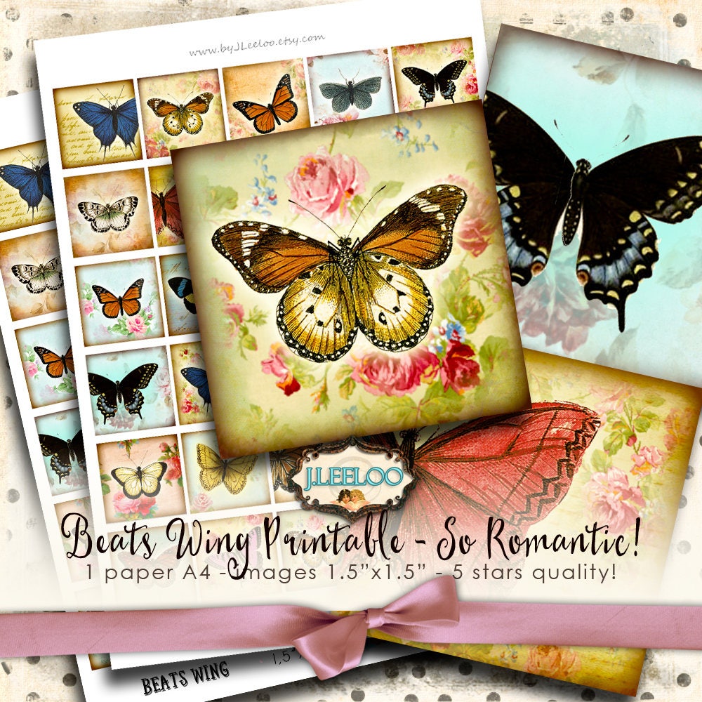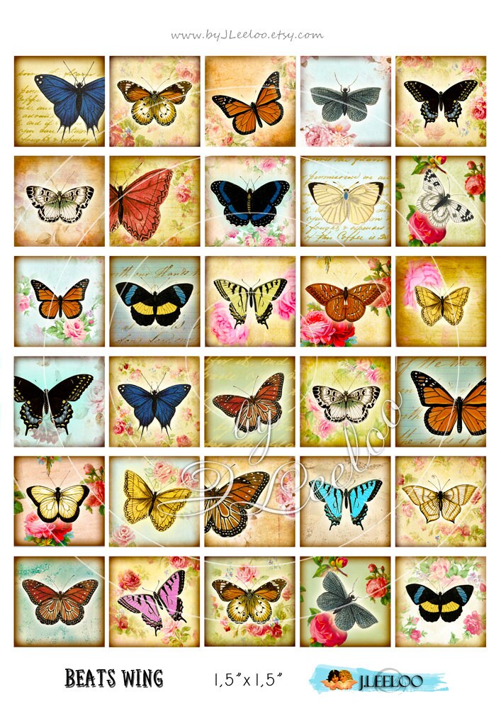 BEATS WINGS instant download printable - digital collage sheets - square images for your crafting project - glass cabochons, jewelry, resin pendants, hang tags, rings, earrings and all your need for your art.