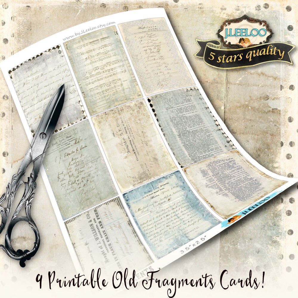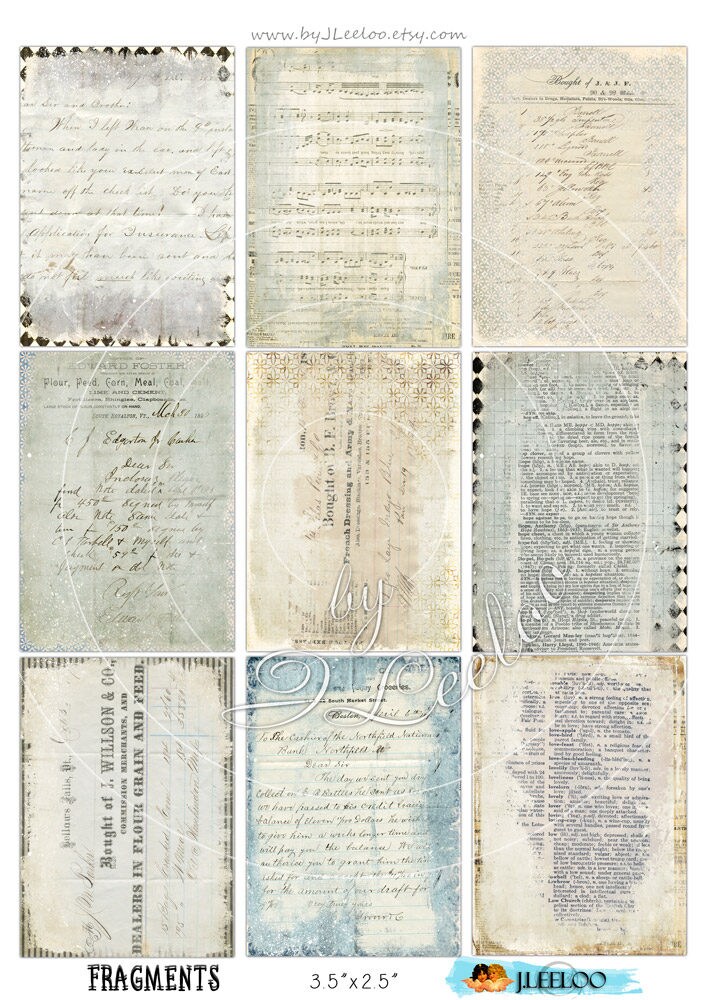 FRAGMENT Printable digital collage sheet - Shabby chic papers for your artwork: aceo or atc cards, scrapbook, diary art, hang tags, jewelry holders, invitations or annuncements, greetings cards or backing cards.... for your creativity!