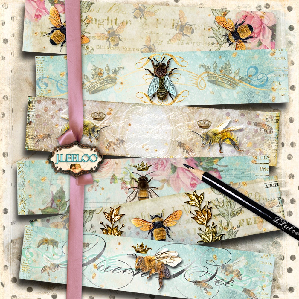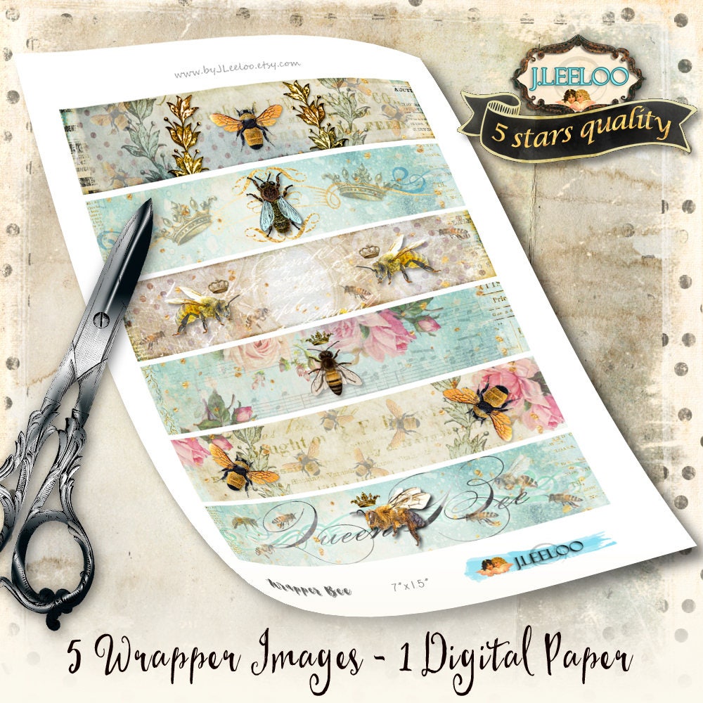 WRAPPER BEE - Digital collage sheet - Instant digital papers - Images for your artwork: wrapper soap, bookmarks, scrapbook, diary art, hang tags, invitations or announcements, greetings cards or banner.... for your creativity!