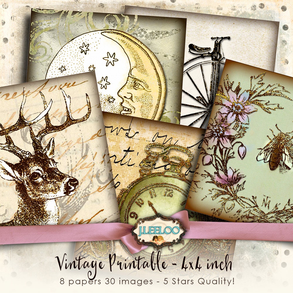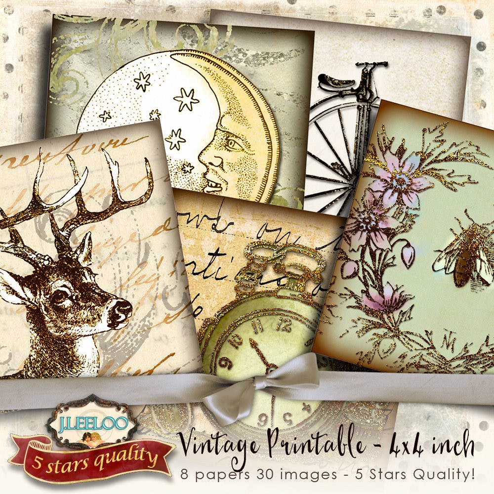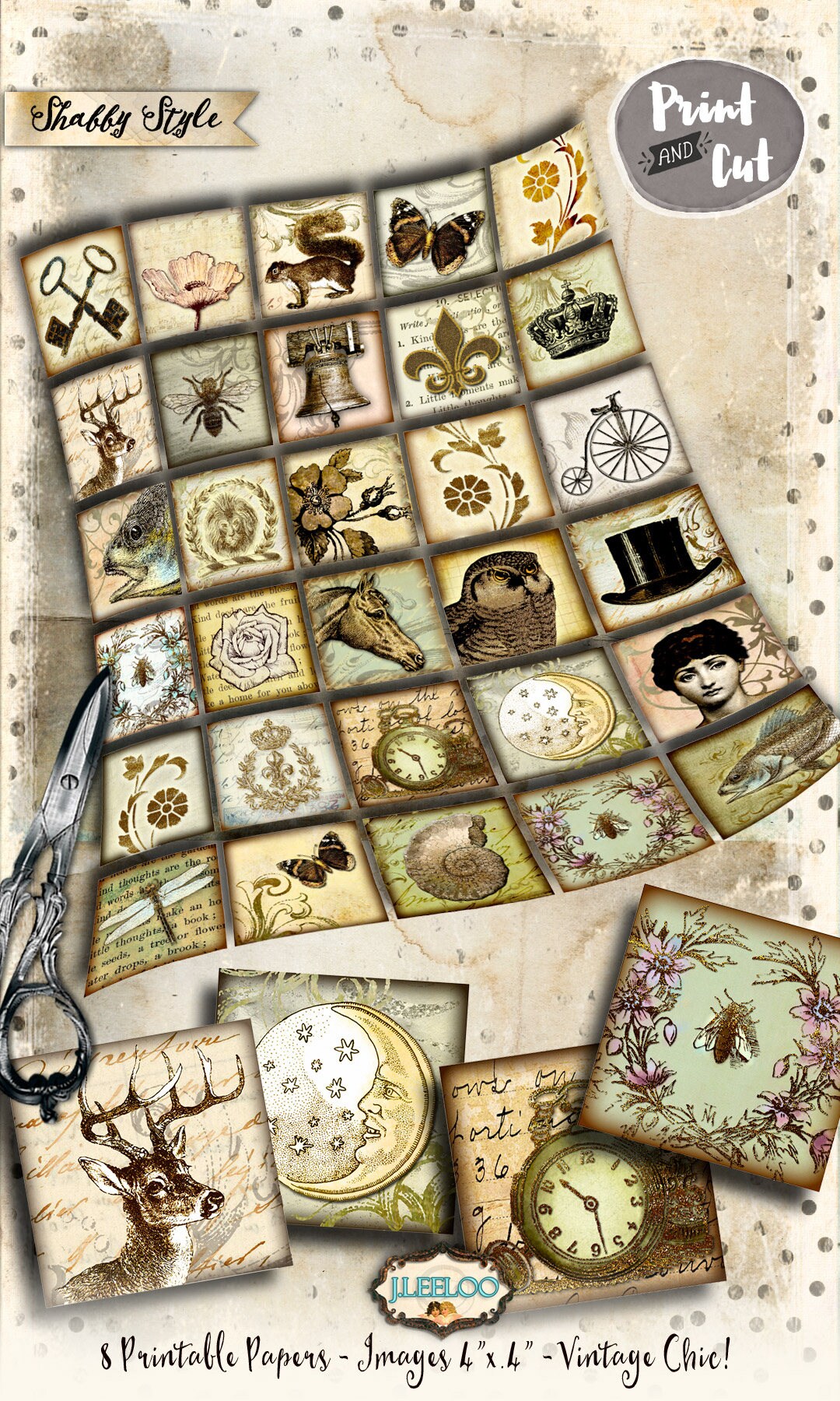 VINTAGE Instant Download - Digital collage sheets - Squares printable images for coaster, jewelry holder, hang tags, stickers and all your craft project.
