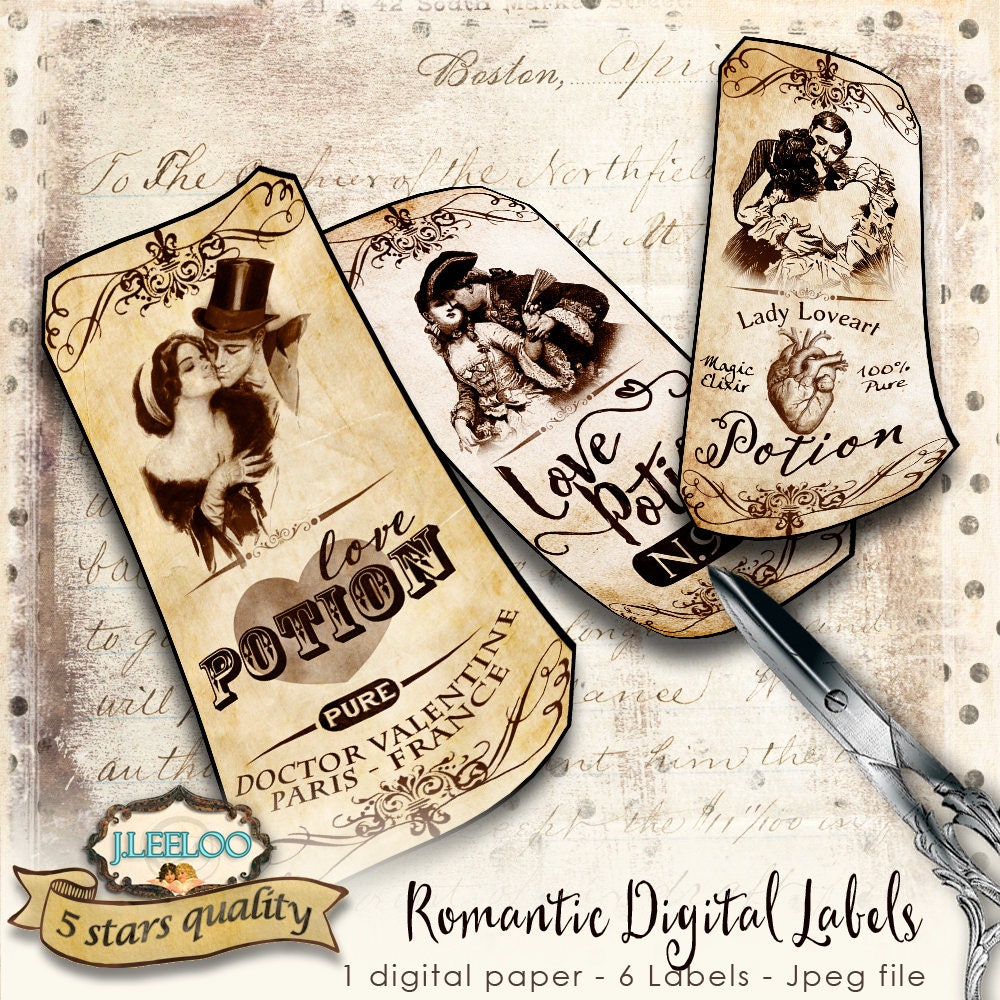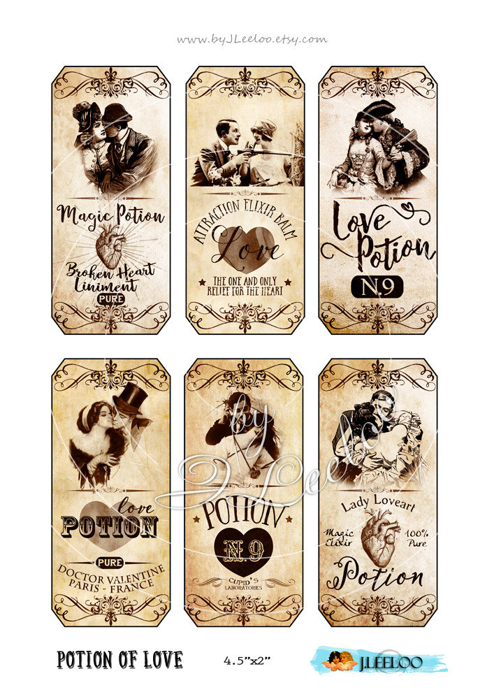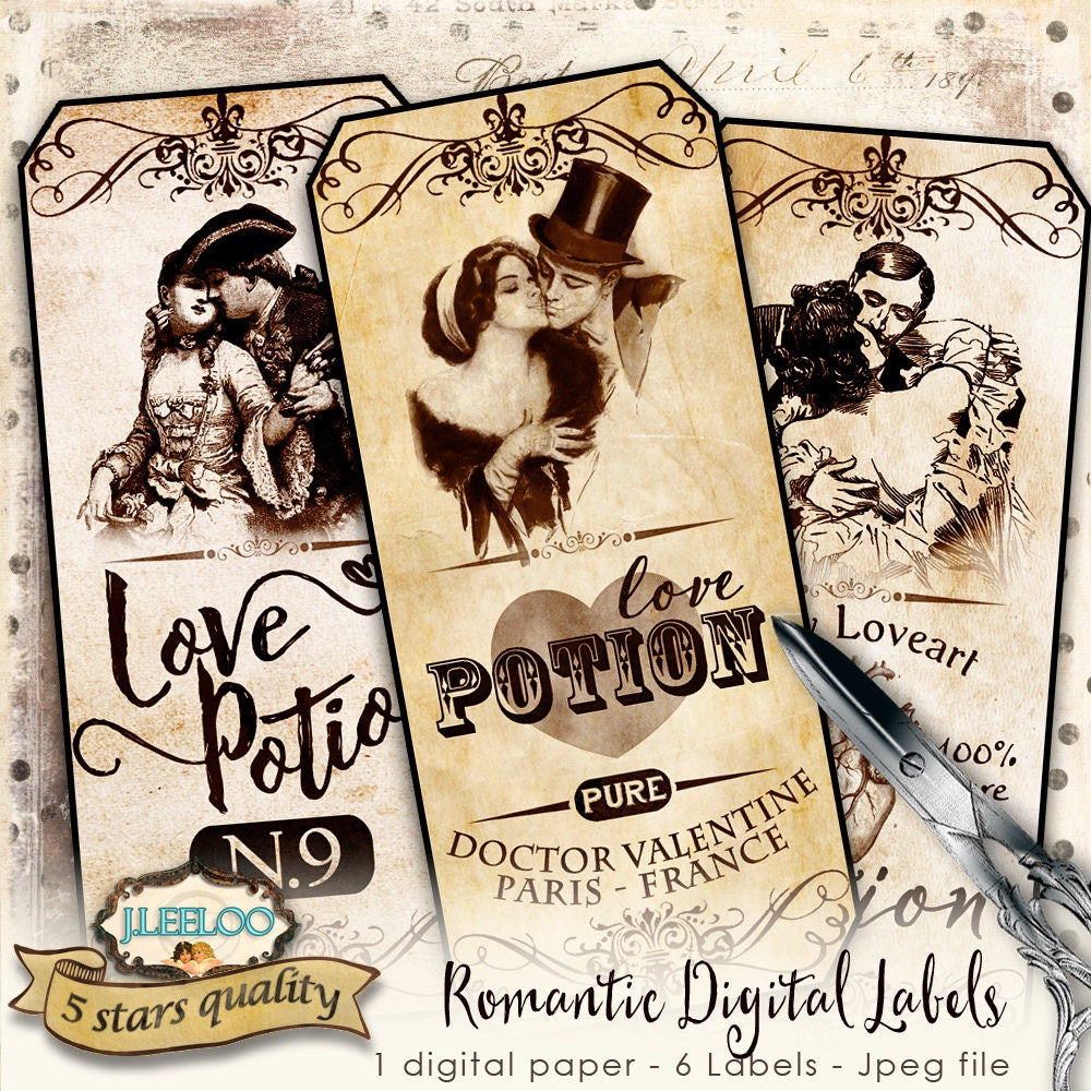 POTION OF LOVE - label tag apothecary clipart valentine crafting paper art scrap - Digital collage sheet printable instant download and your others craft project.