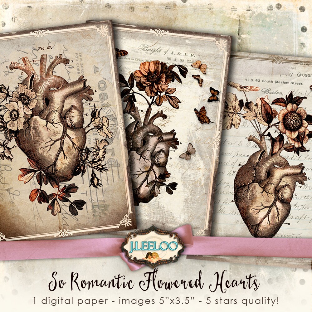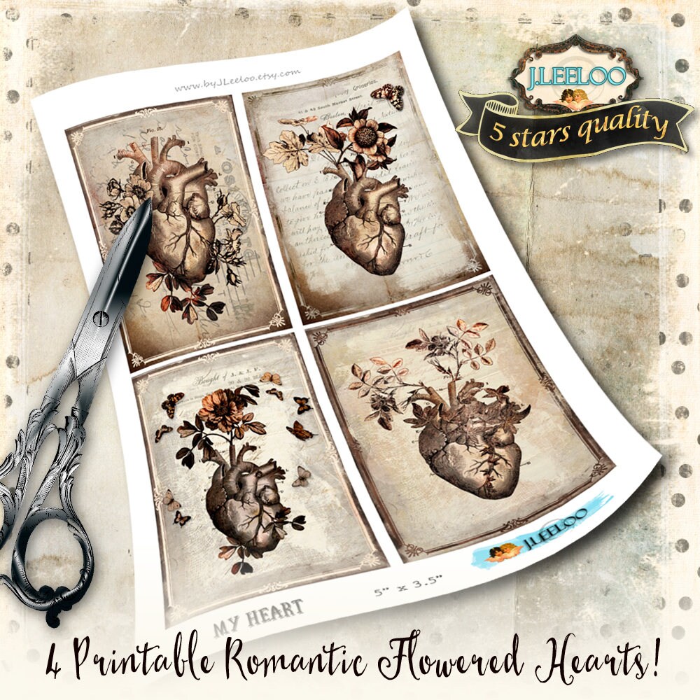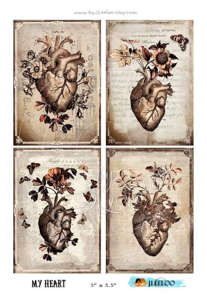 MY HEART vintage background Printable digital collage sheet - Valentine's cards for your artwork: postcards, scrapbook, diary art, hang tags, jewelry holders, invitations or annuncements, greetings cards or backing cards.... for your creativity!