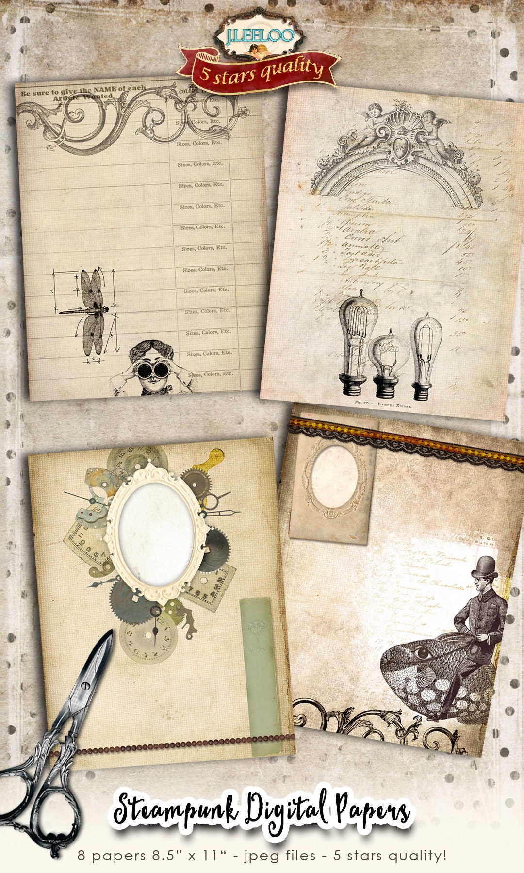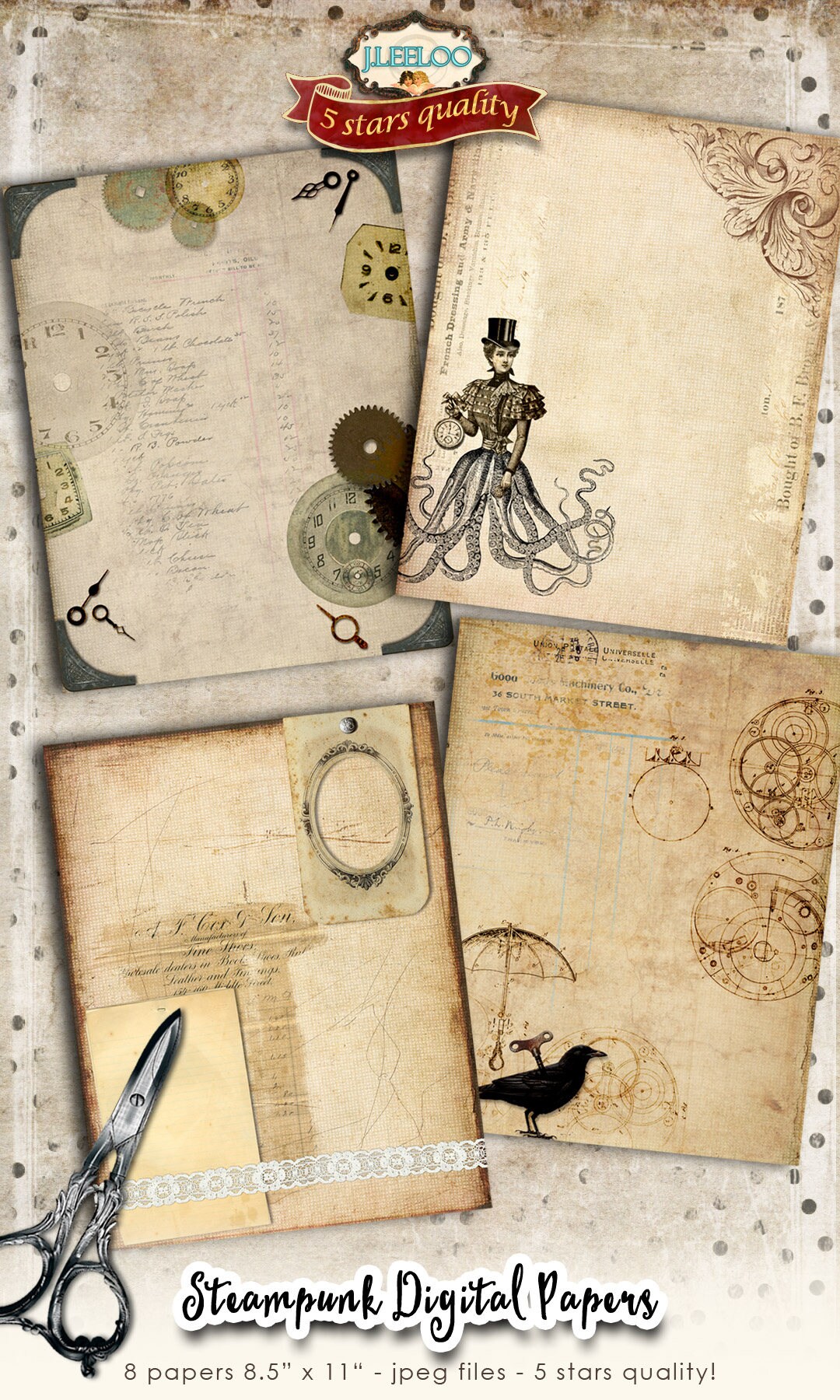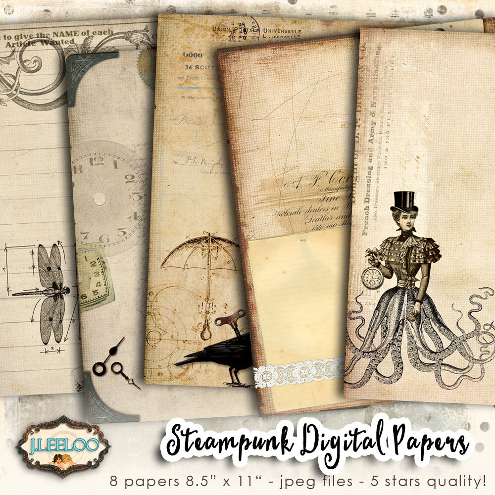 STEAMPUNK Instant Download - digital collage sheets for journal art, scrapbook, bookmaking pages, stationery, background, diary, invited, iron-on transfer, card making.... print it as many time as you want.
