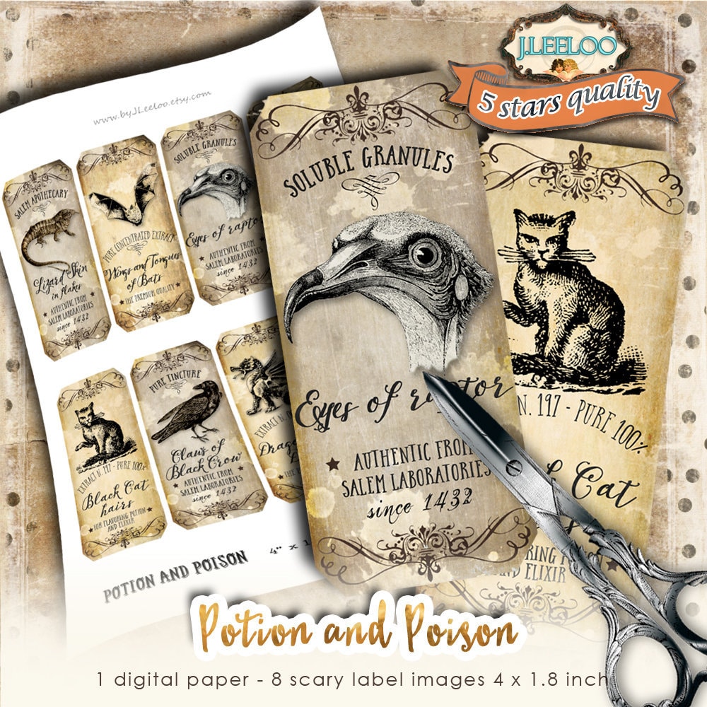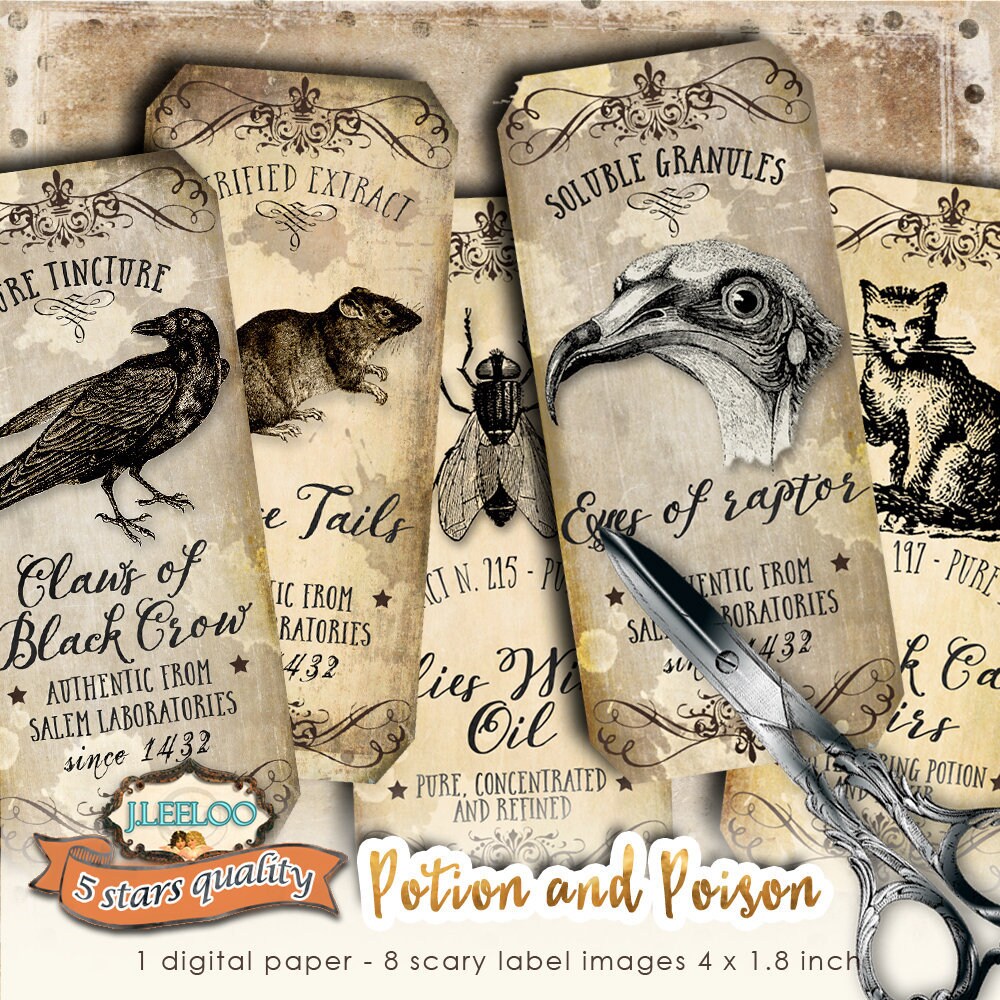 POTION AND POISON - Digital collage sheets - Label tag apothecary images instant download ready to print for your bottle jar, invitation, jewelry making, stickers, scrapbook and your others craft project.