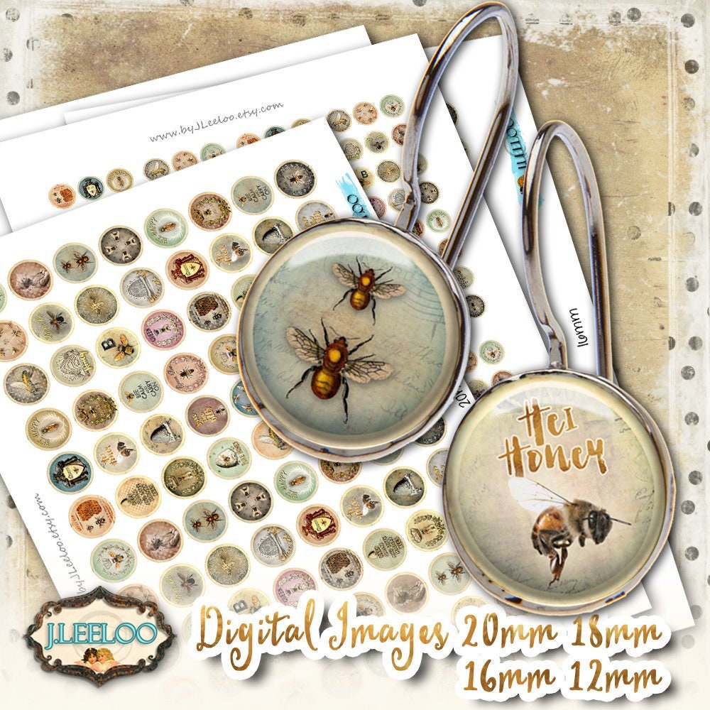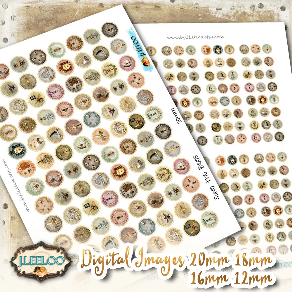 SAVE THE BEES - Digital collage sheets - Circles images instant download ready to print for your jewelry making, resin pendants, rings, earrings and button, for magnets, stickers, scrapbook and your others craft project.