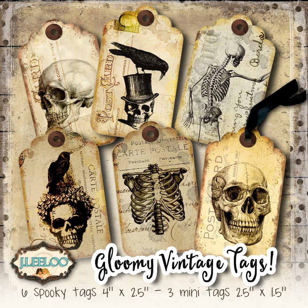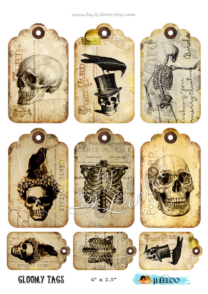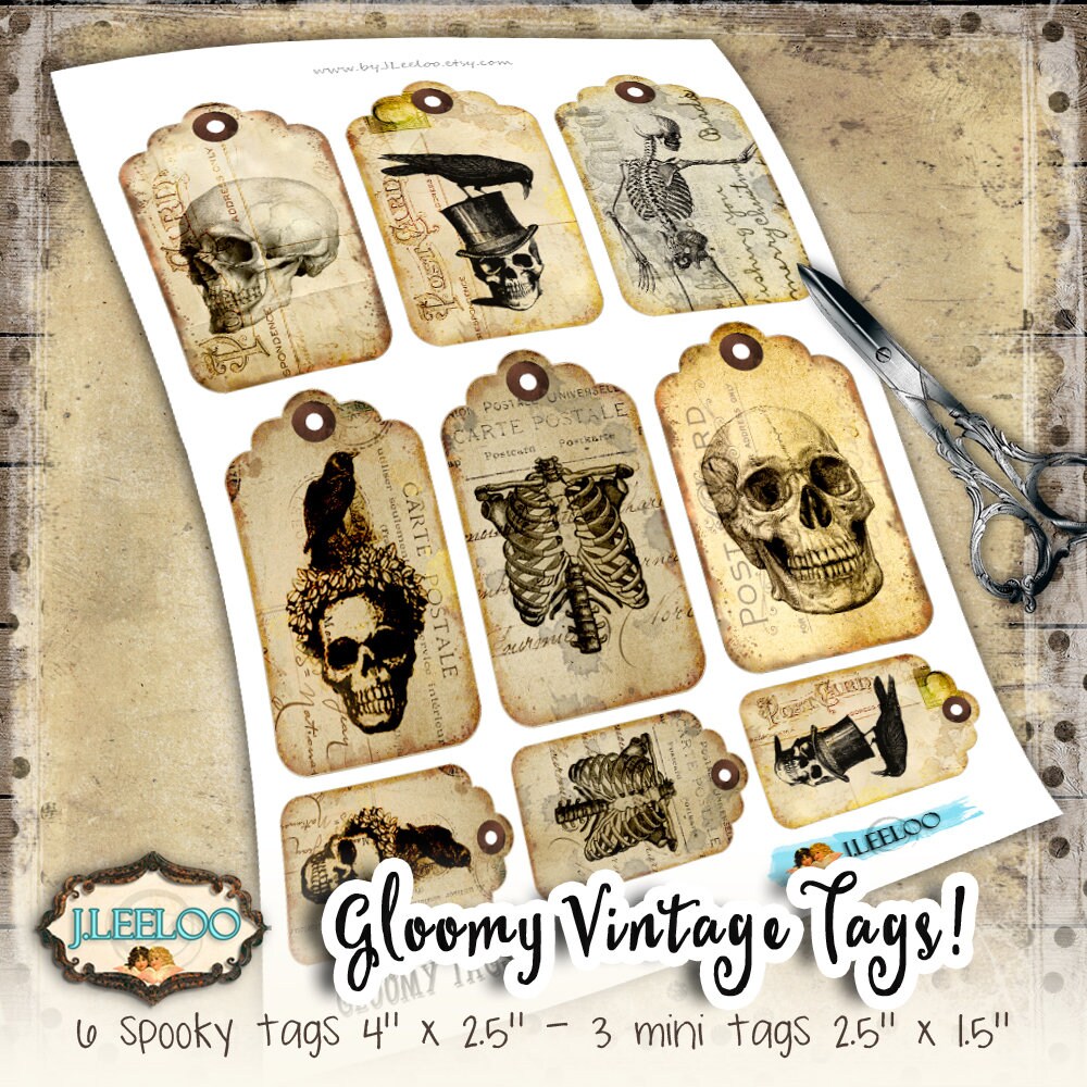 GLOOMY TAGS - printable Halloween vintage antique paper - apothecary scrapbook ephemera grunge aged digital download instant download ready to print for your bottle jar, invitation, jewelry making, stickers, scrapbook and your others craft project.