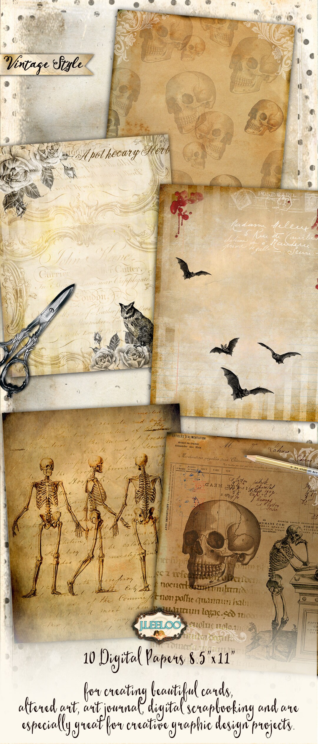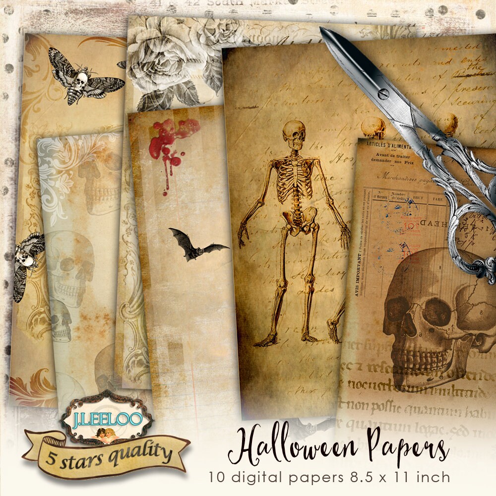 HALLOWEEN PAPERS Instant Download - Digital collage sheets pack - vintage documents digital paper - Large images for scrapbook, background, artwork.