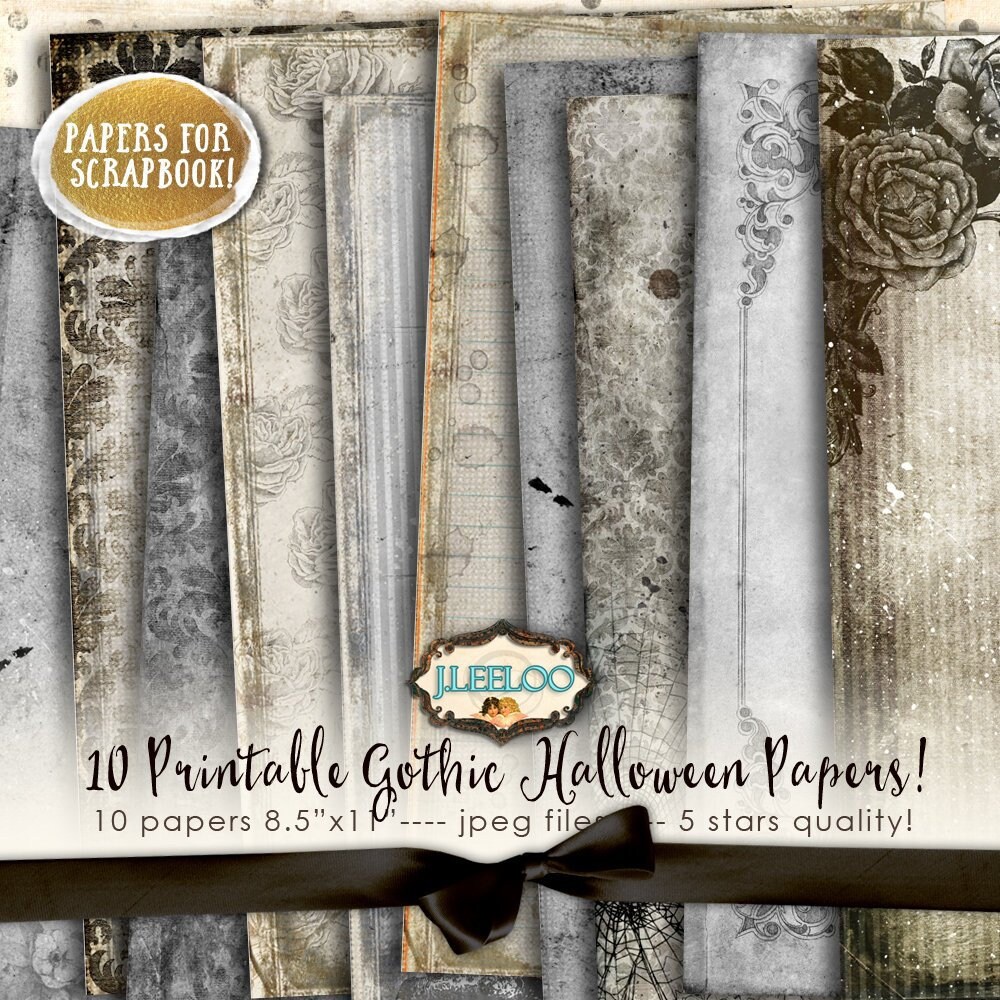 GOTHIC HALLOWEEN 10 large 8.5 x 11 inch papers shabby junk journal art crafting tattered backgrounds scrapbooking instant download printable diary.