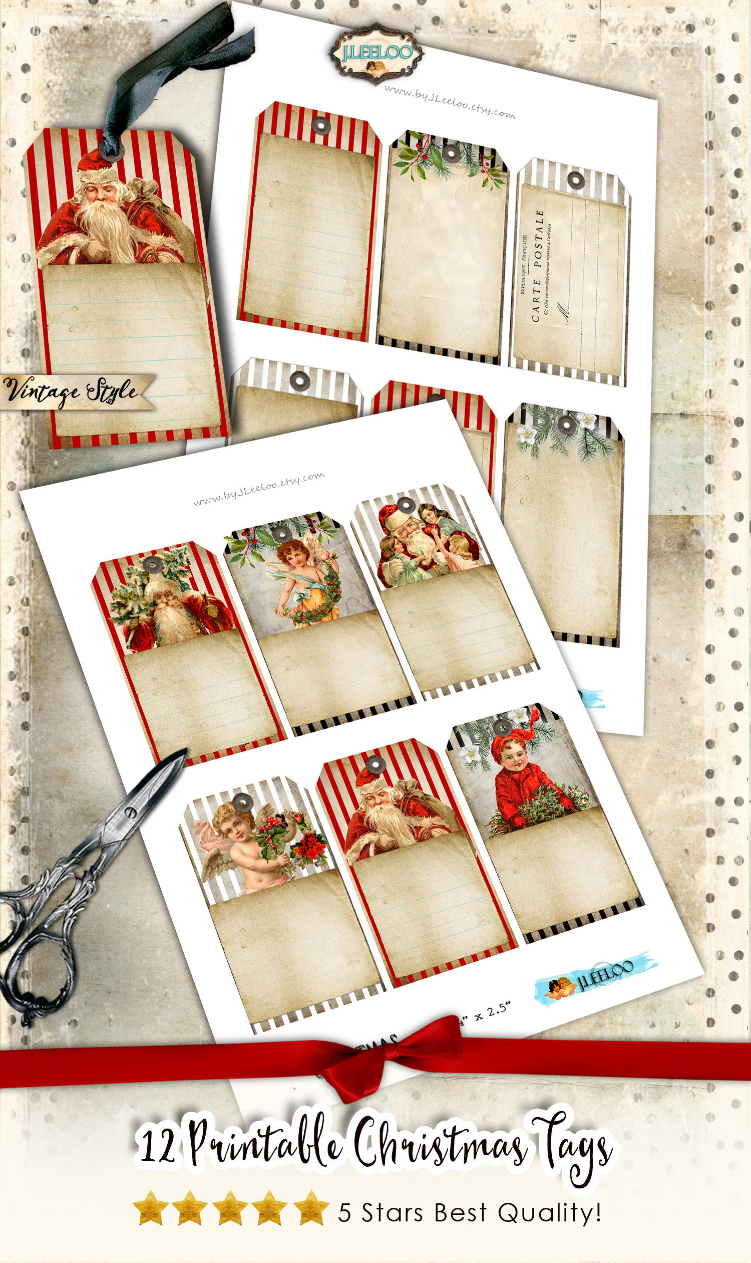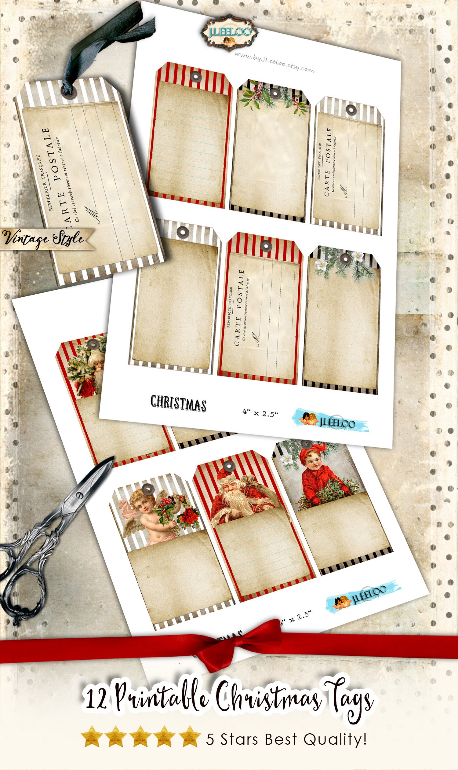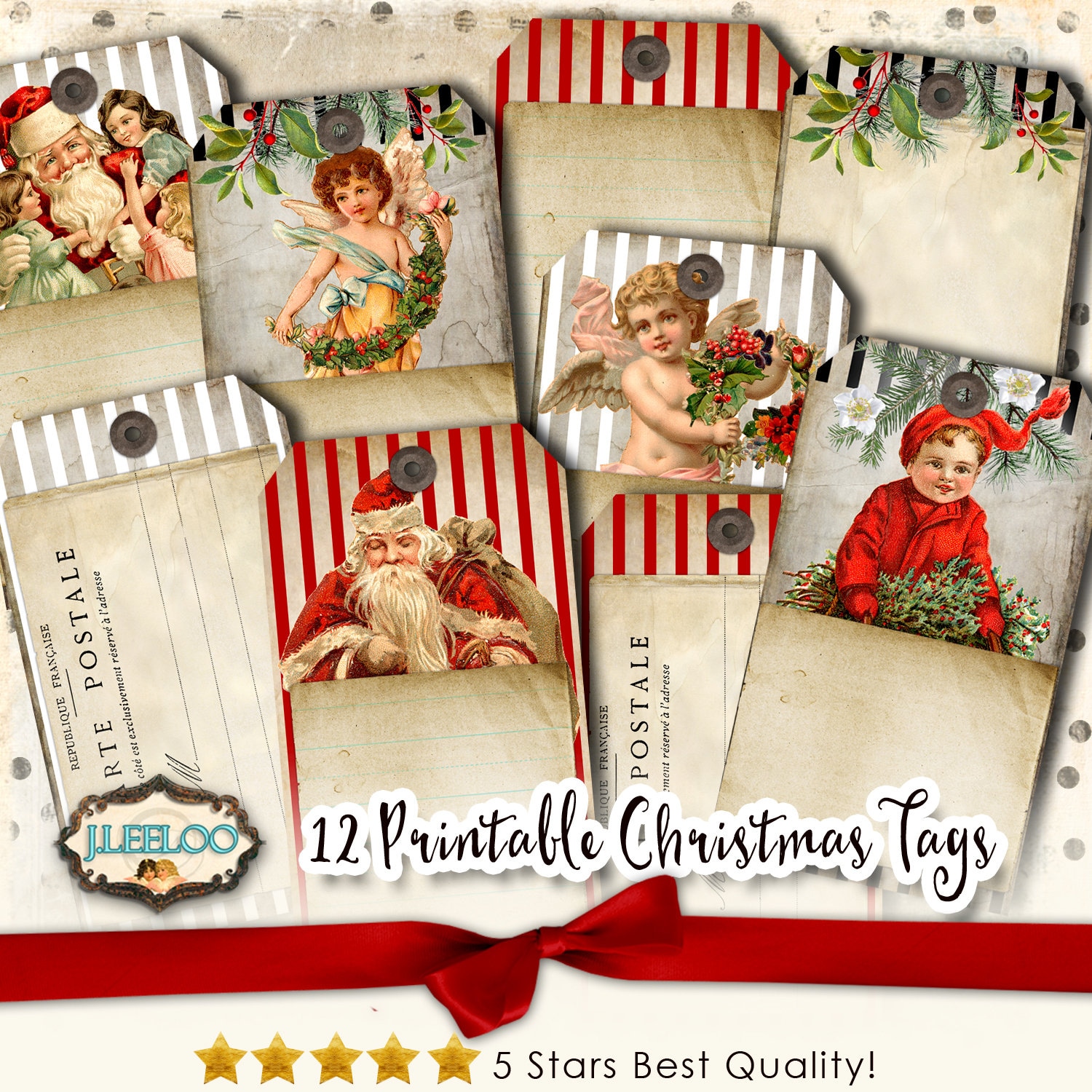 CHRISTMAS - Digital collage sheets: download labels and print for paper craft gift tags vintage ephemera scrapbooking downloadable graphic