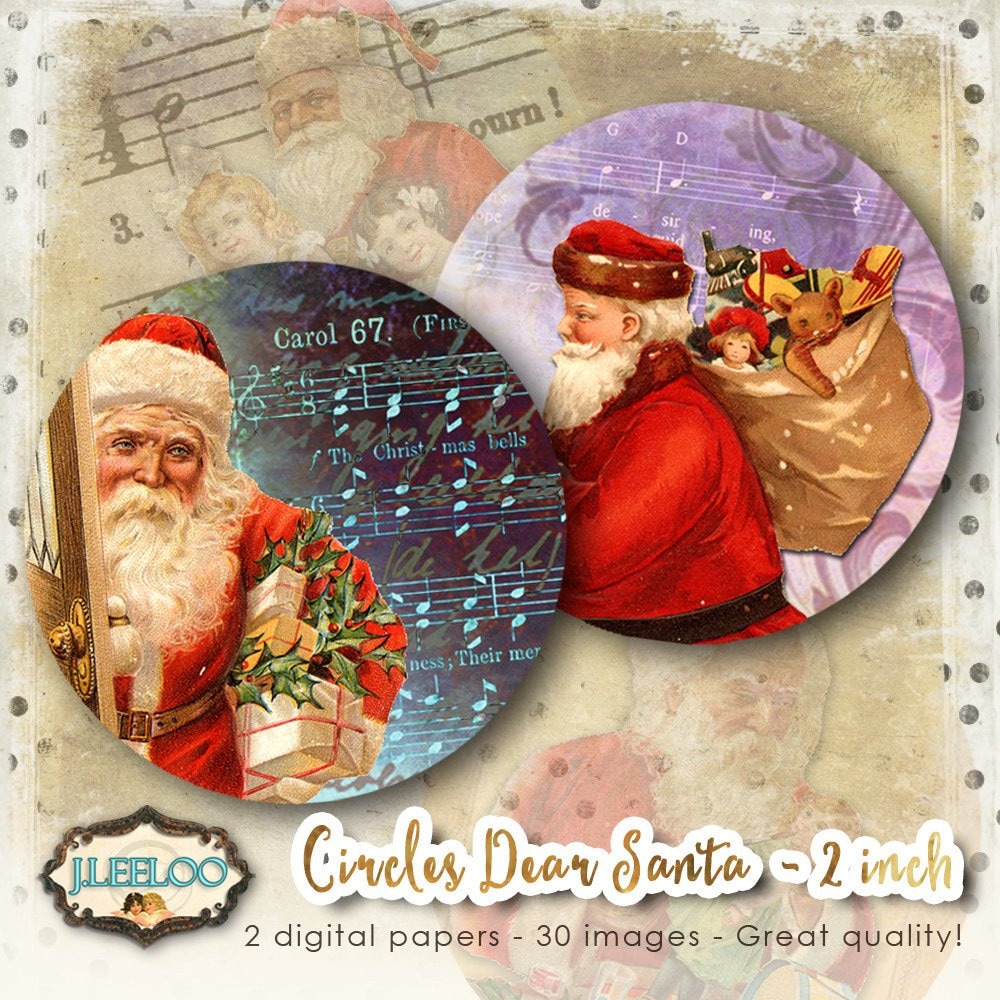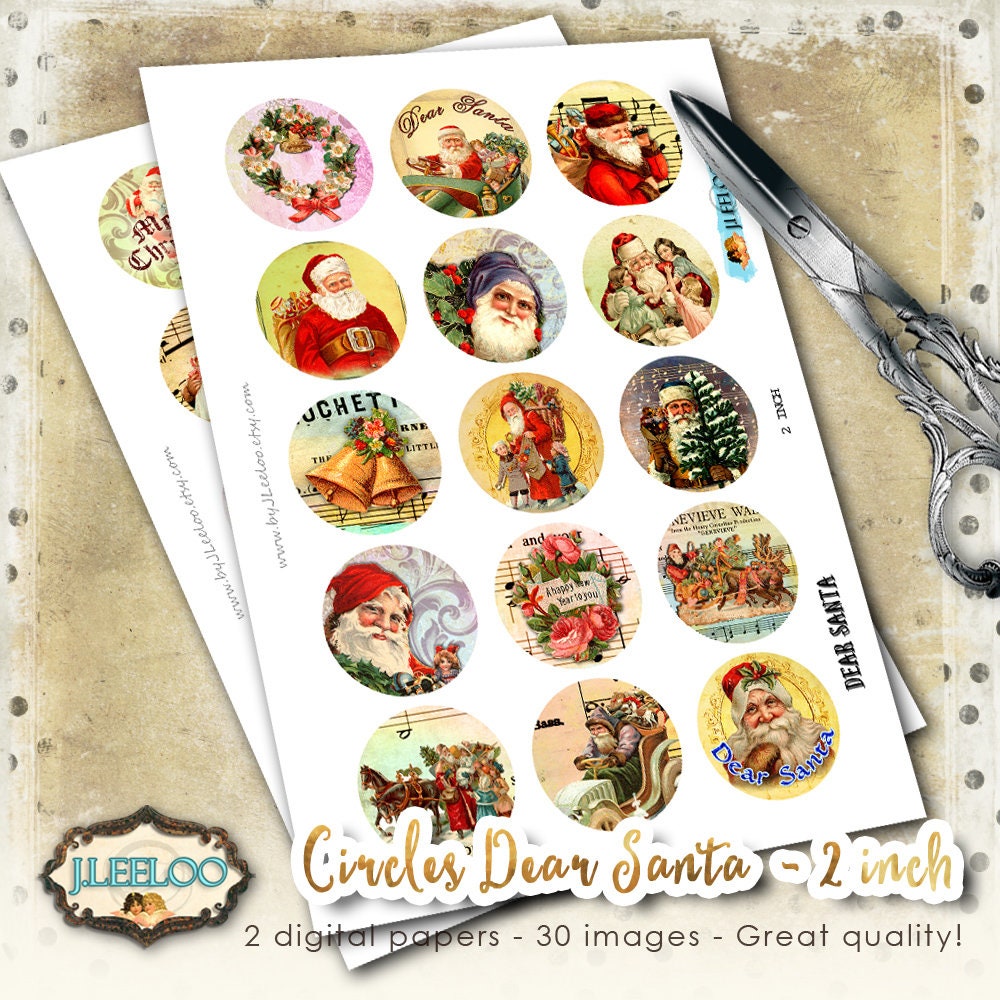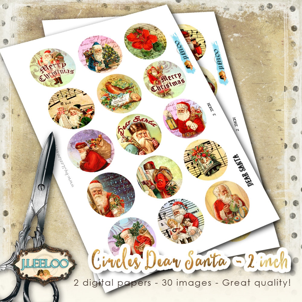 DEAR SANTA Digital collage sheets - Circles images instant download ready to print for your jewelry making, cupcake topper, resin pendants, rings, earrings and button, for magnets, stickers, scrapbook and your others craft project.