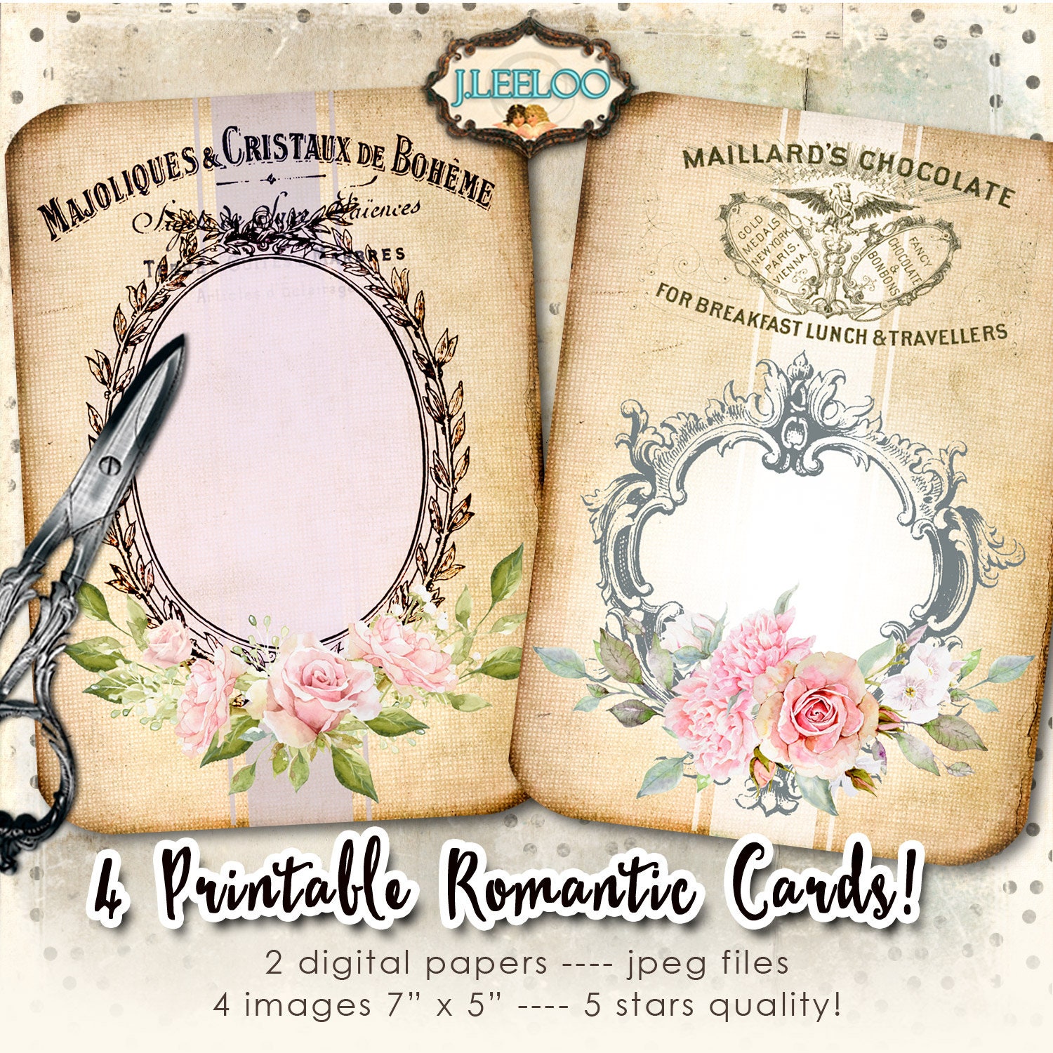 FRENCH FLOWERS Digital collage sheets: download and print Shabby Chic Vintage for paperwork, tags, jewelry, cards, mix media, scrapbooking, journal kits and your others craft projects.