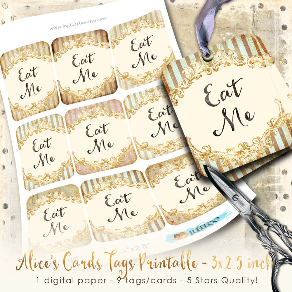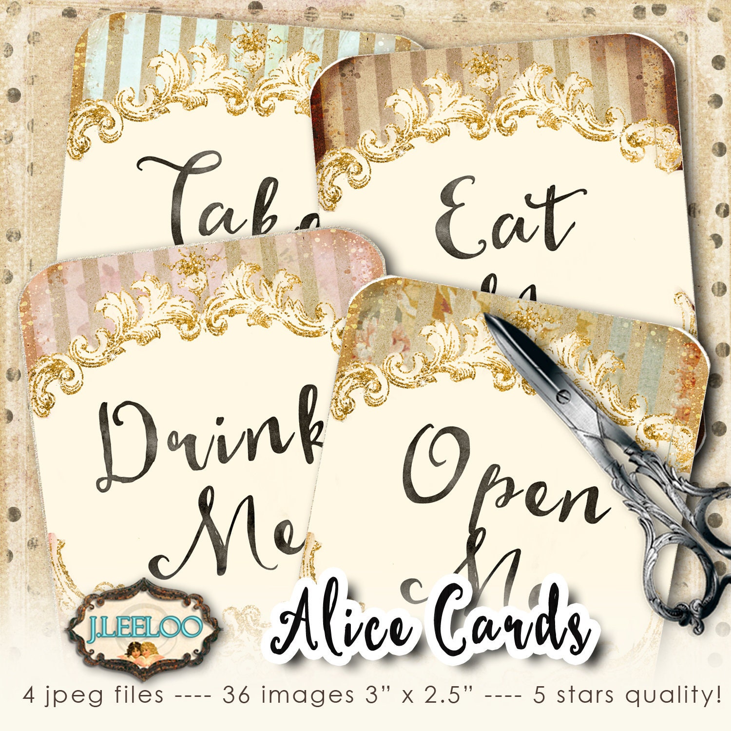 ALICE CARDS - Digital collage sheets: Alice in Wonderland cards tags download and print for hang tags, labels, scrapbook, jewelry holders, cards, and your others craft project.