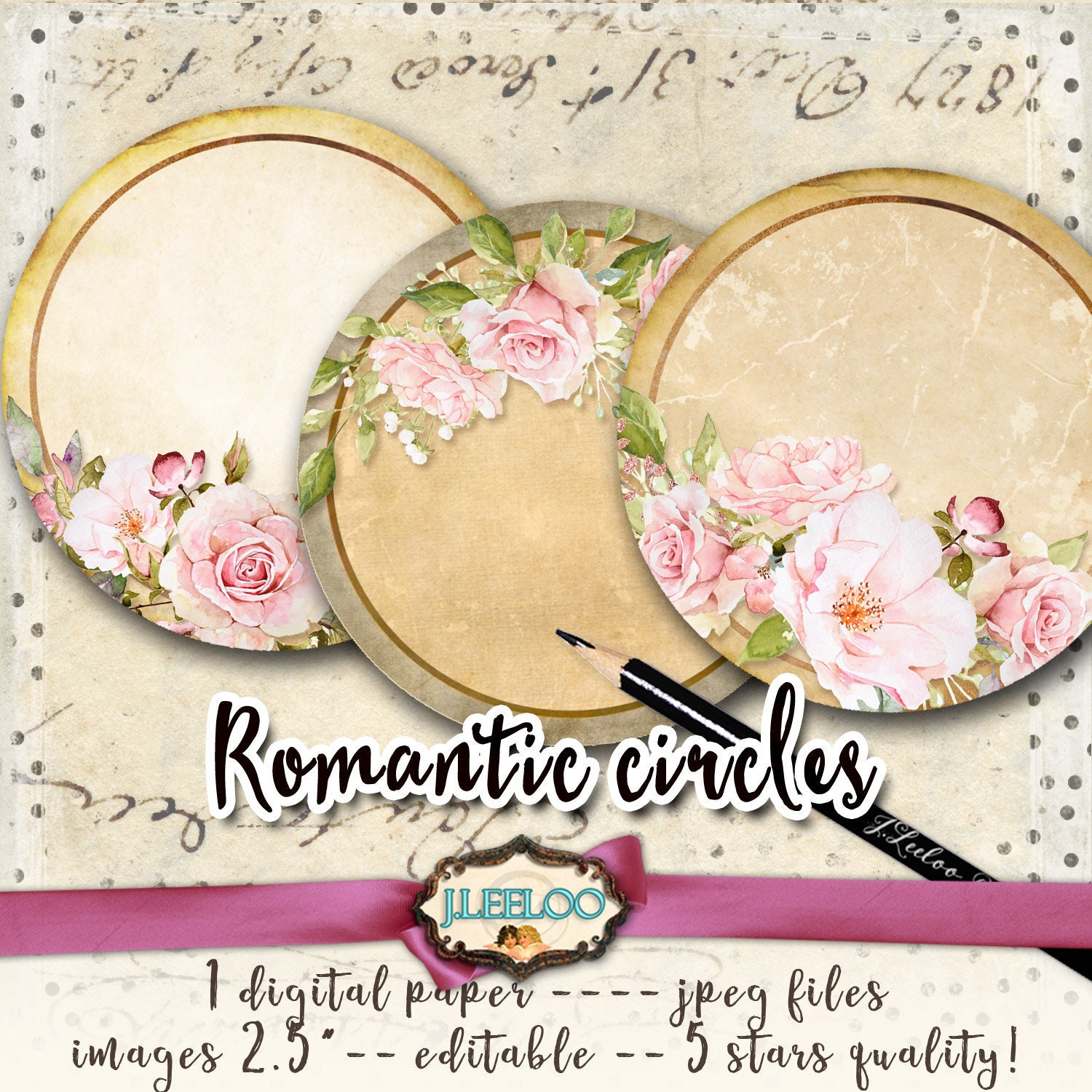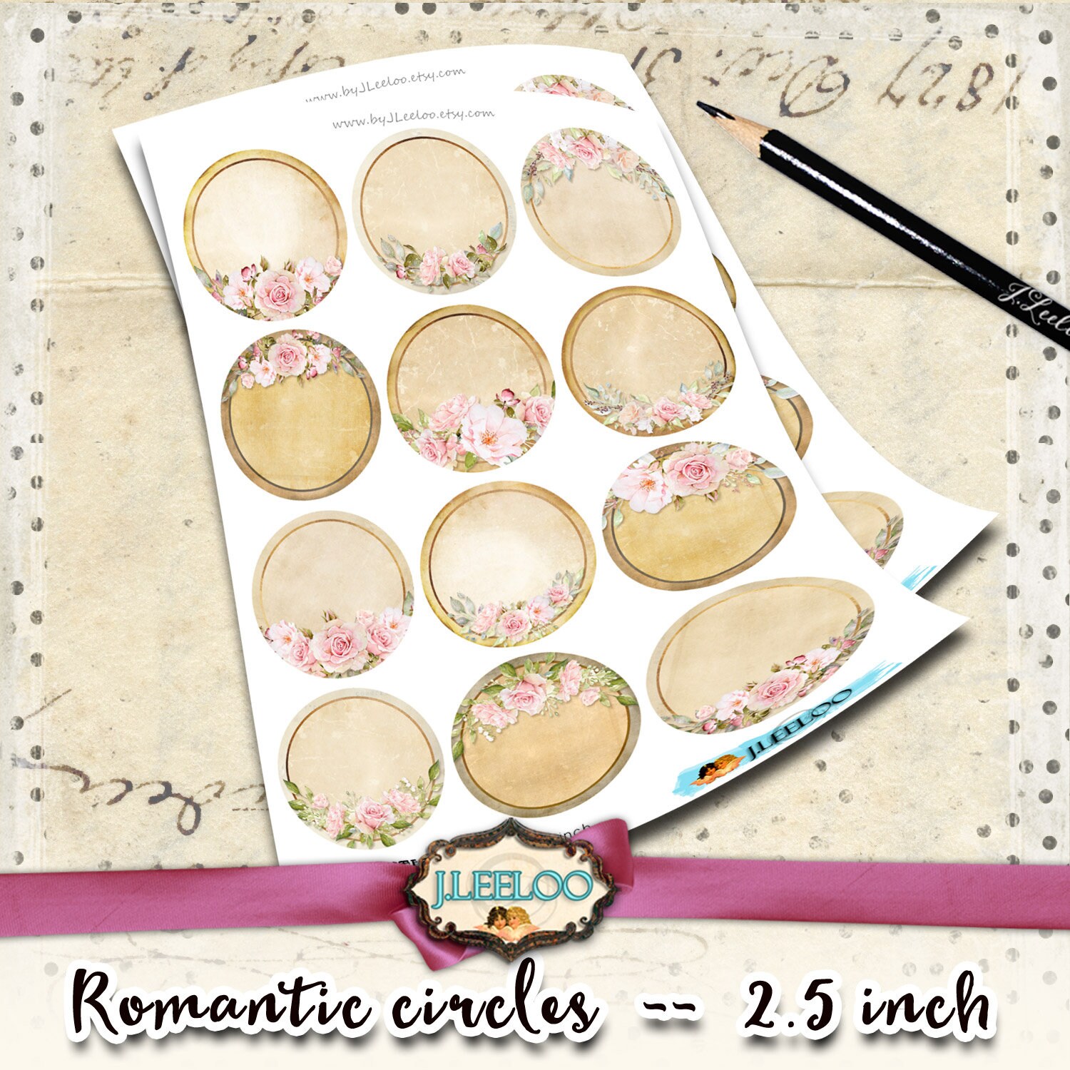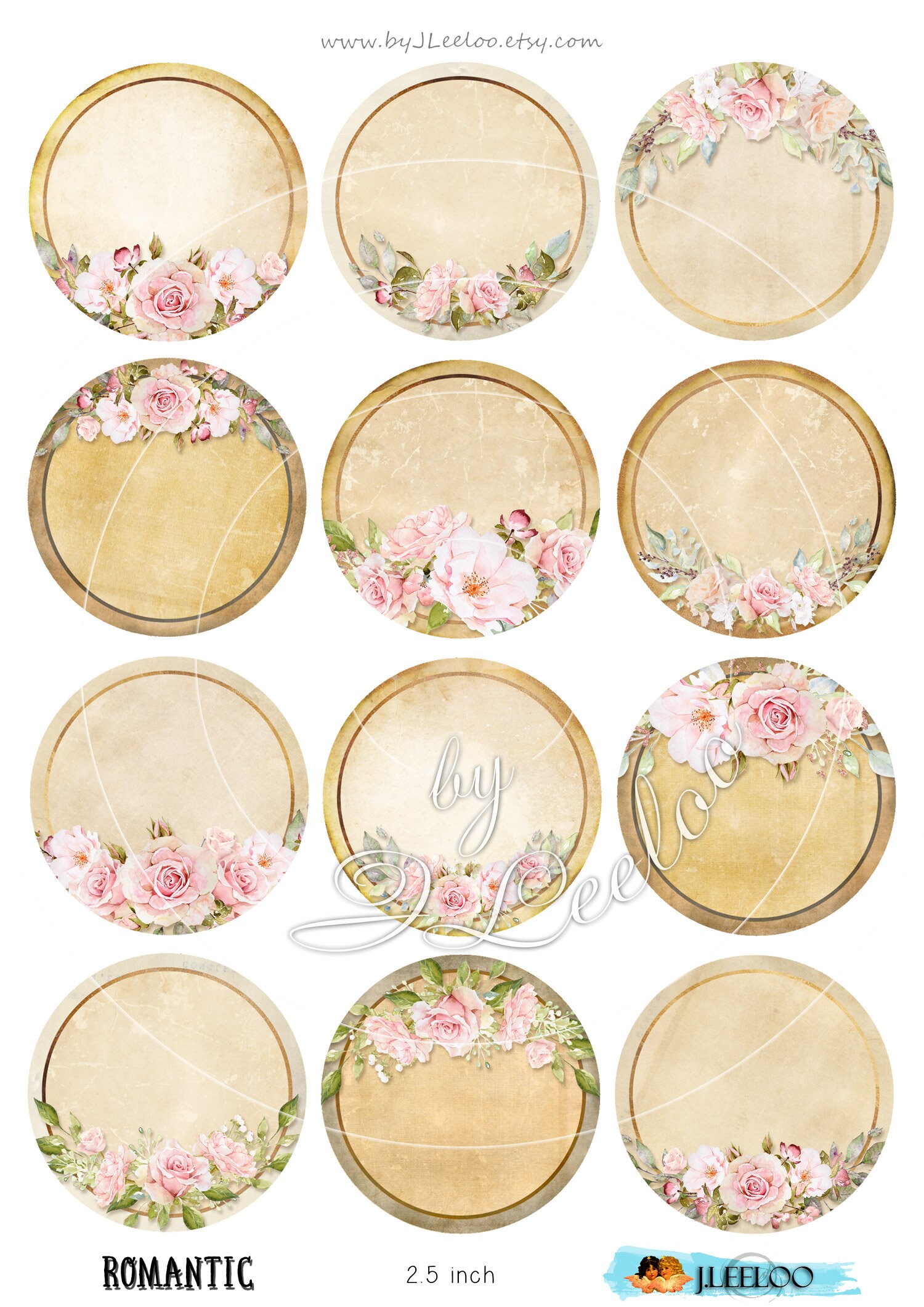 ROMANTIC digitale circles frames printable wreath shabby chic editable vintage 2.5 inch Instant Download ready to print for your jewelry making, resin pendants, rings, earrings and button, for magnets, stickers, scrapbook and your others craft project.