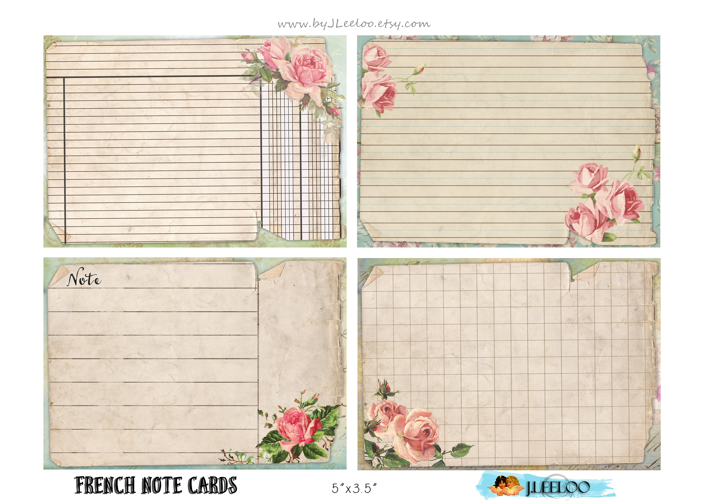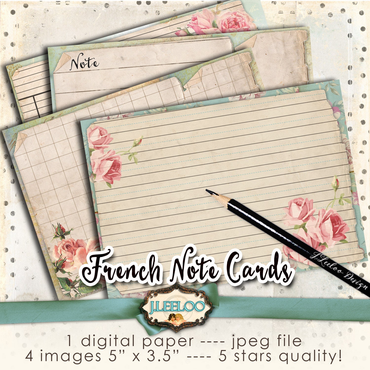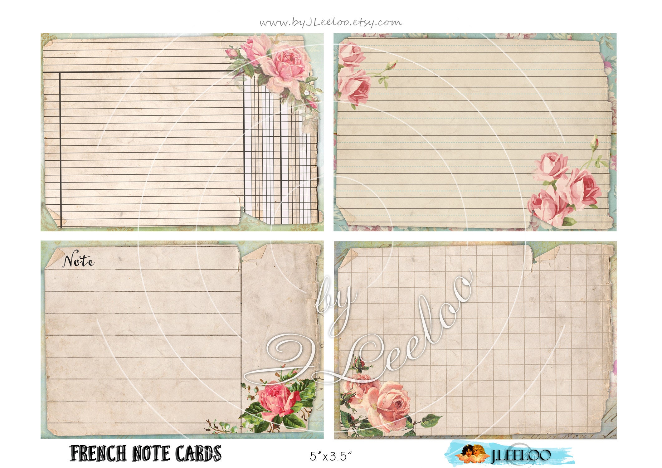 FRENCH NOTE CARDS Digital collage sheet - Editable shabby chic vintage digital papers ledger : images for your diary, artwork, postcards, hang tags, invitations, greeting cards, announcements, scrapbook, backing cards.... all for your crafting project!