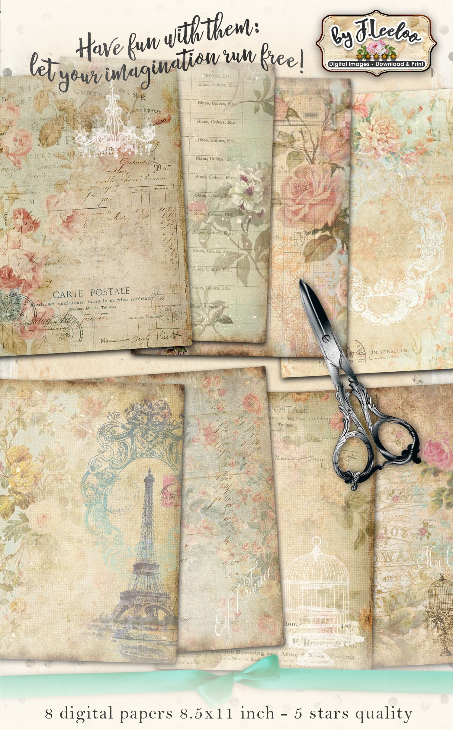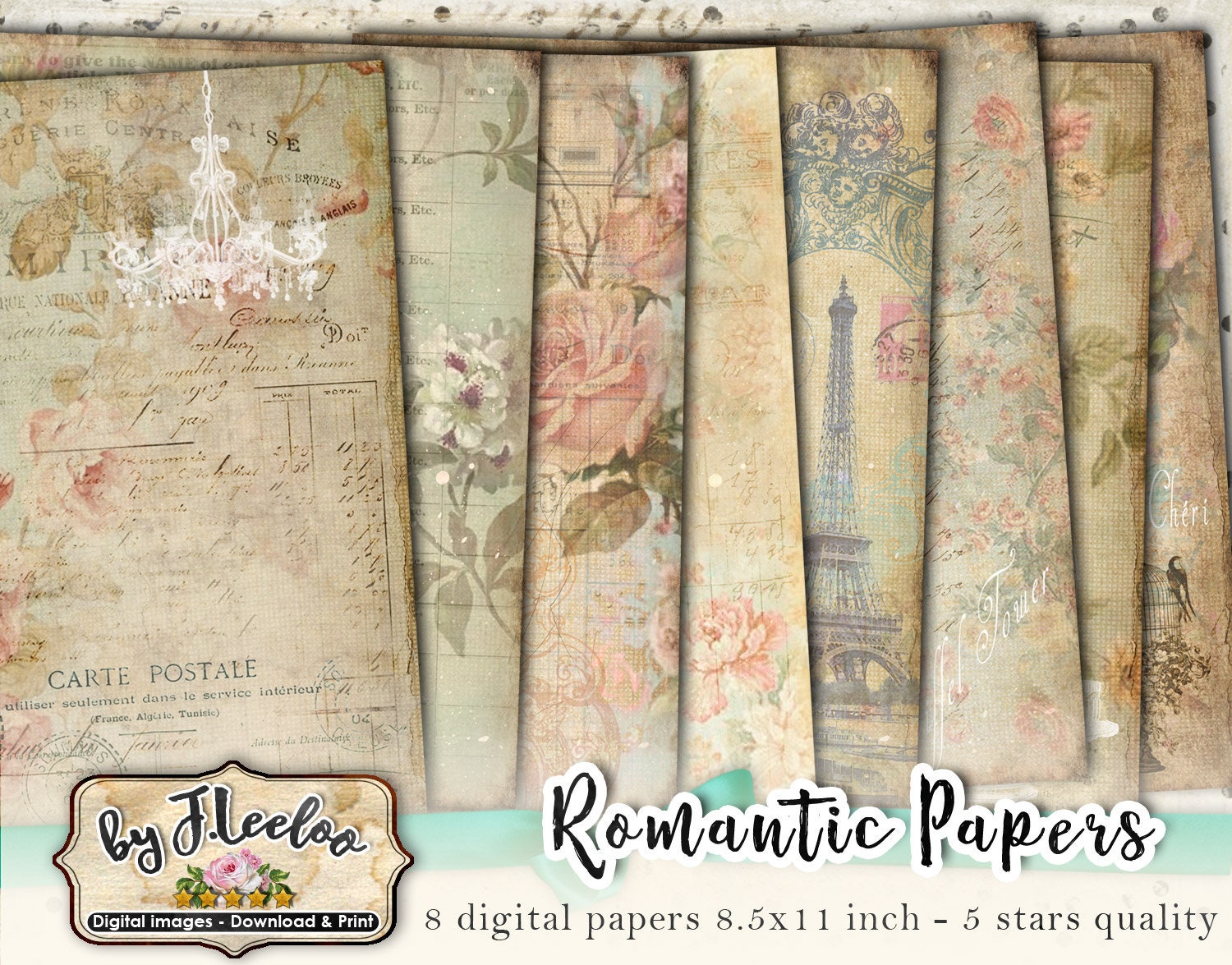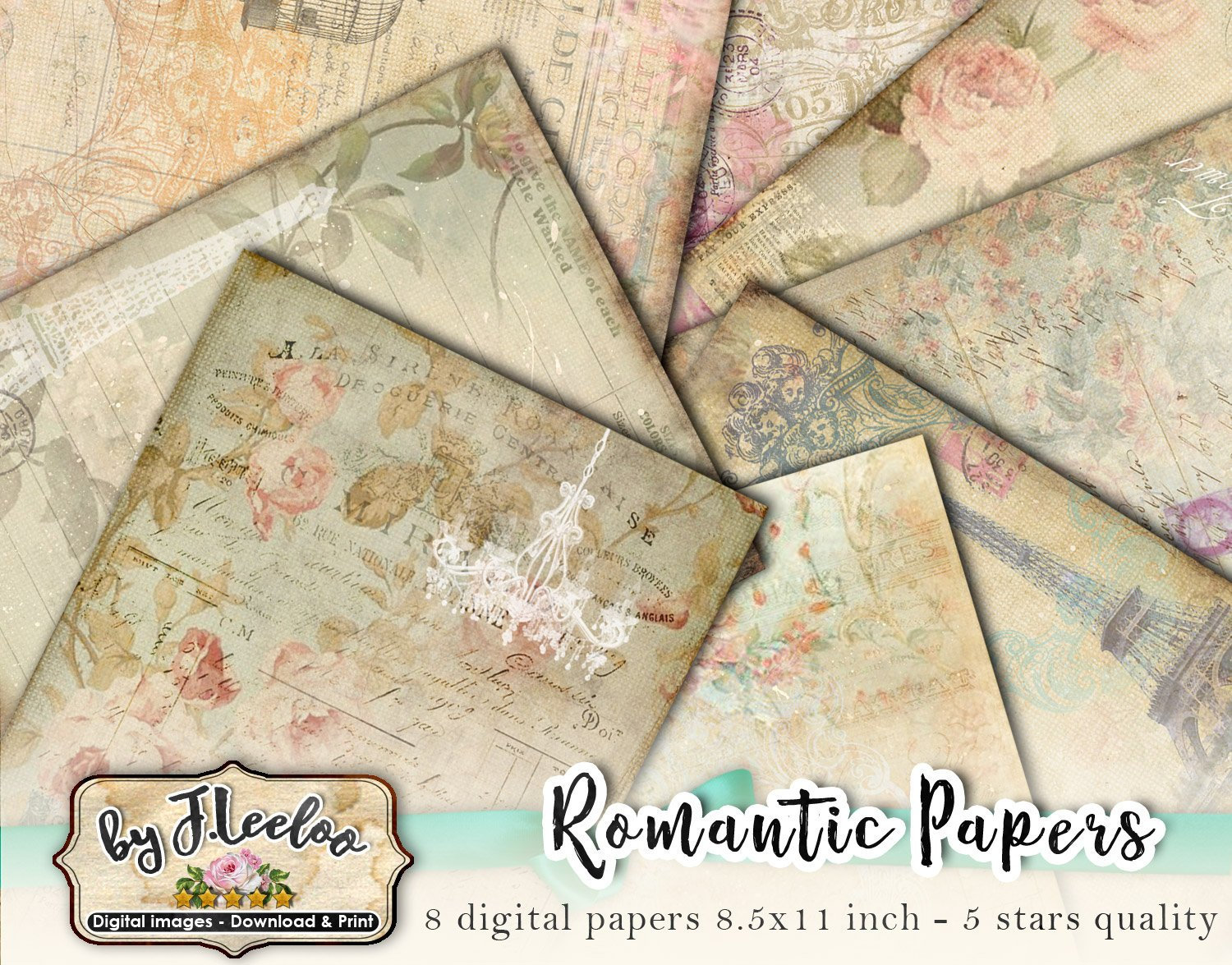 ROMANTIC Instant Download - Large Digital French Papers - Victorian digital papers for your crafting projects: scrapbook, background, diary, iron-on transfer, card making.... print it as many time as you want.