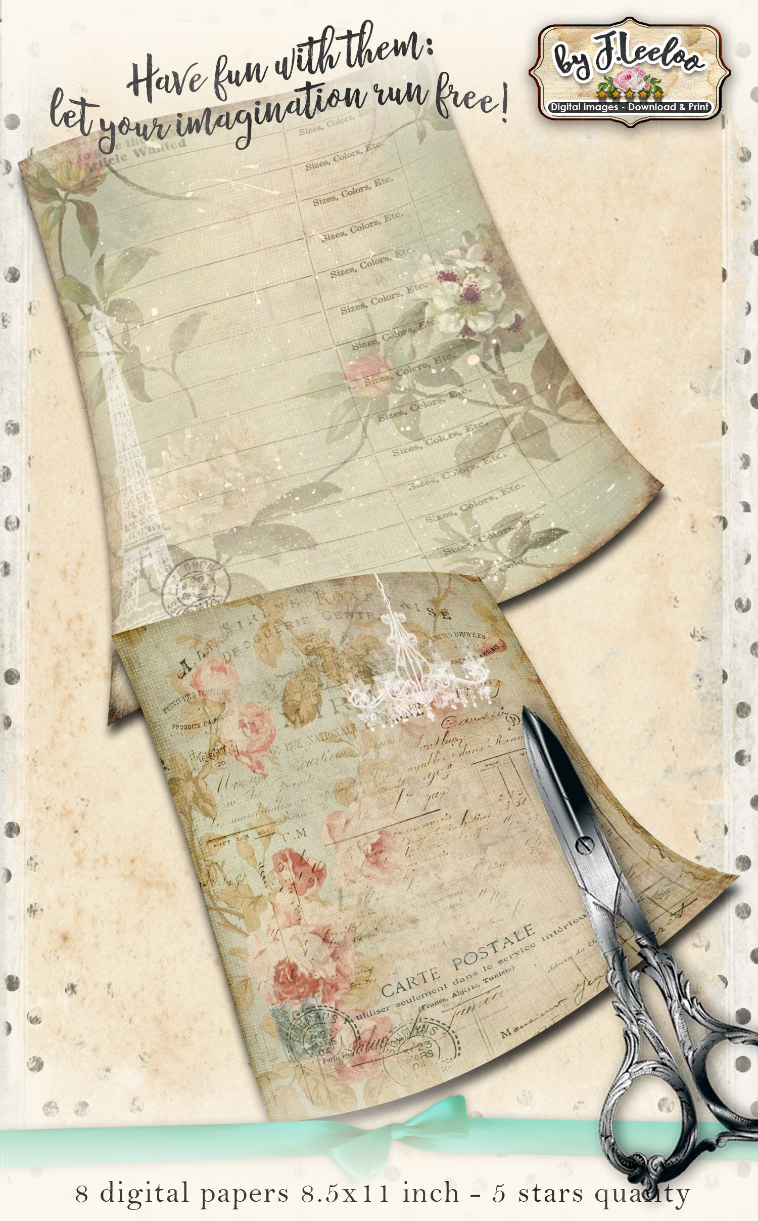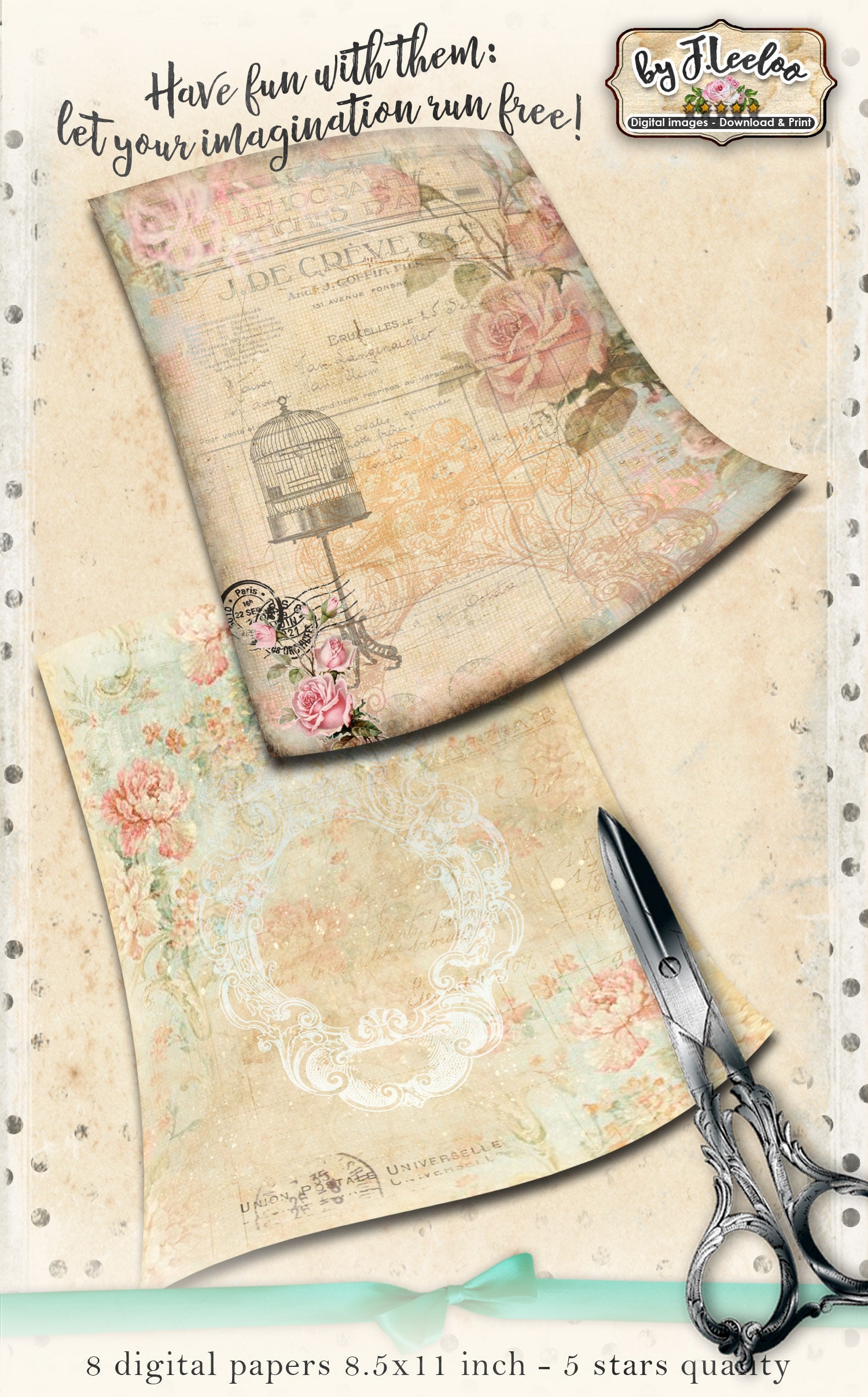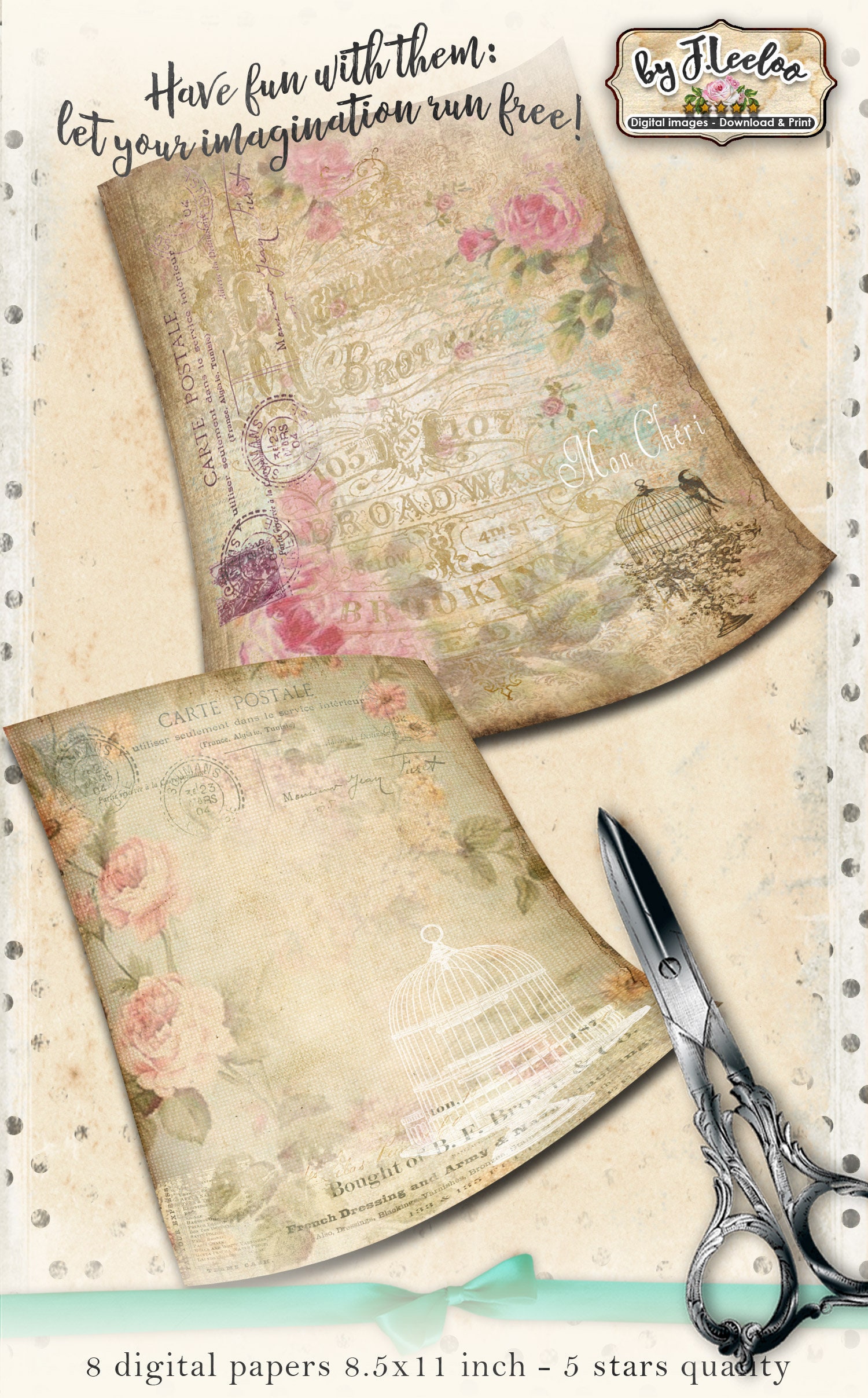 ROMANTIC Instant Download - Large Digital French Papers - Victorian digital papers for your crafting projects: scrapbook, background, diary, iron-on transfer, card making.... print it as many time as you want.