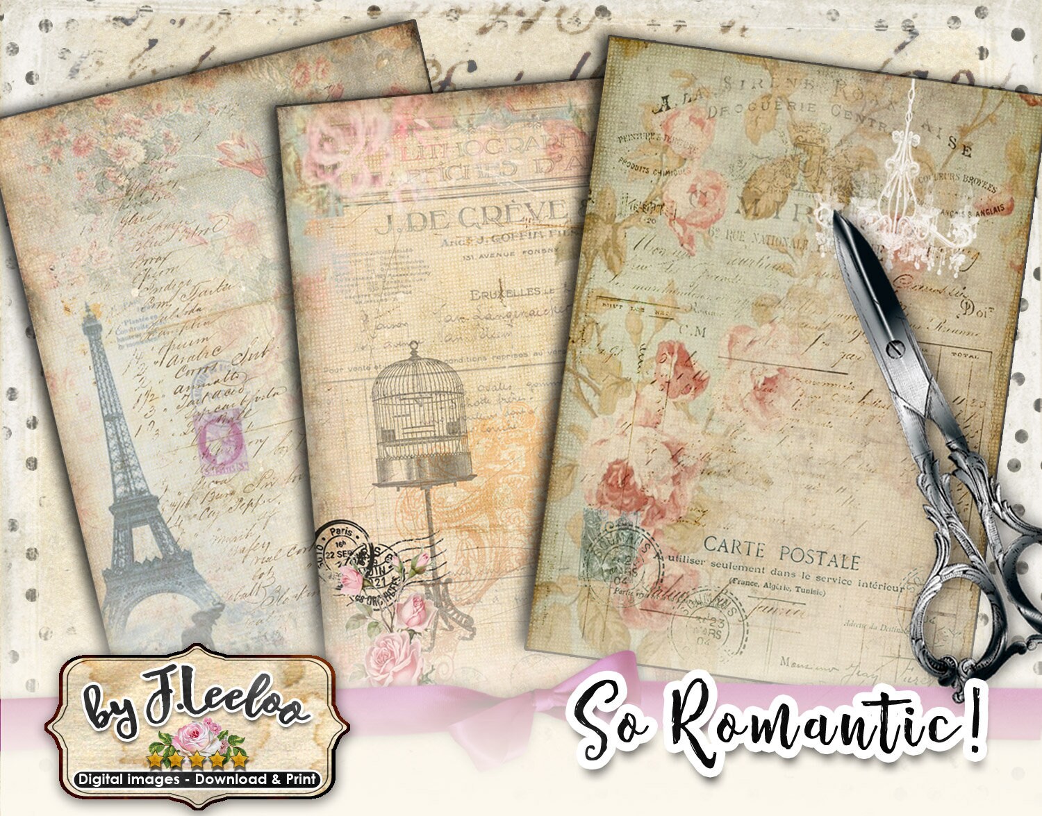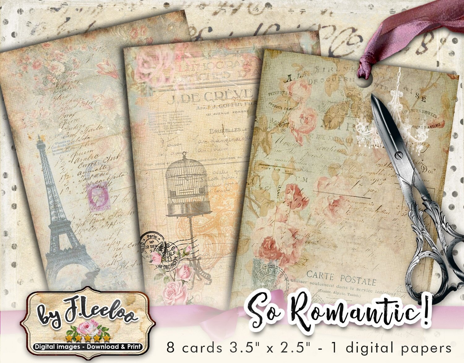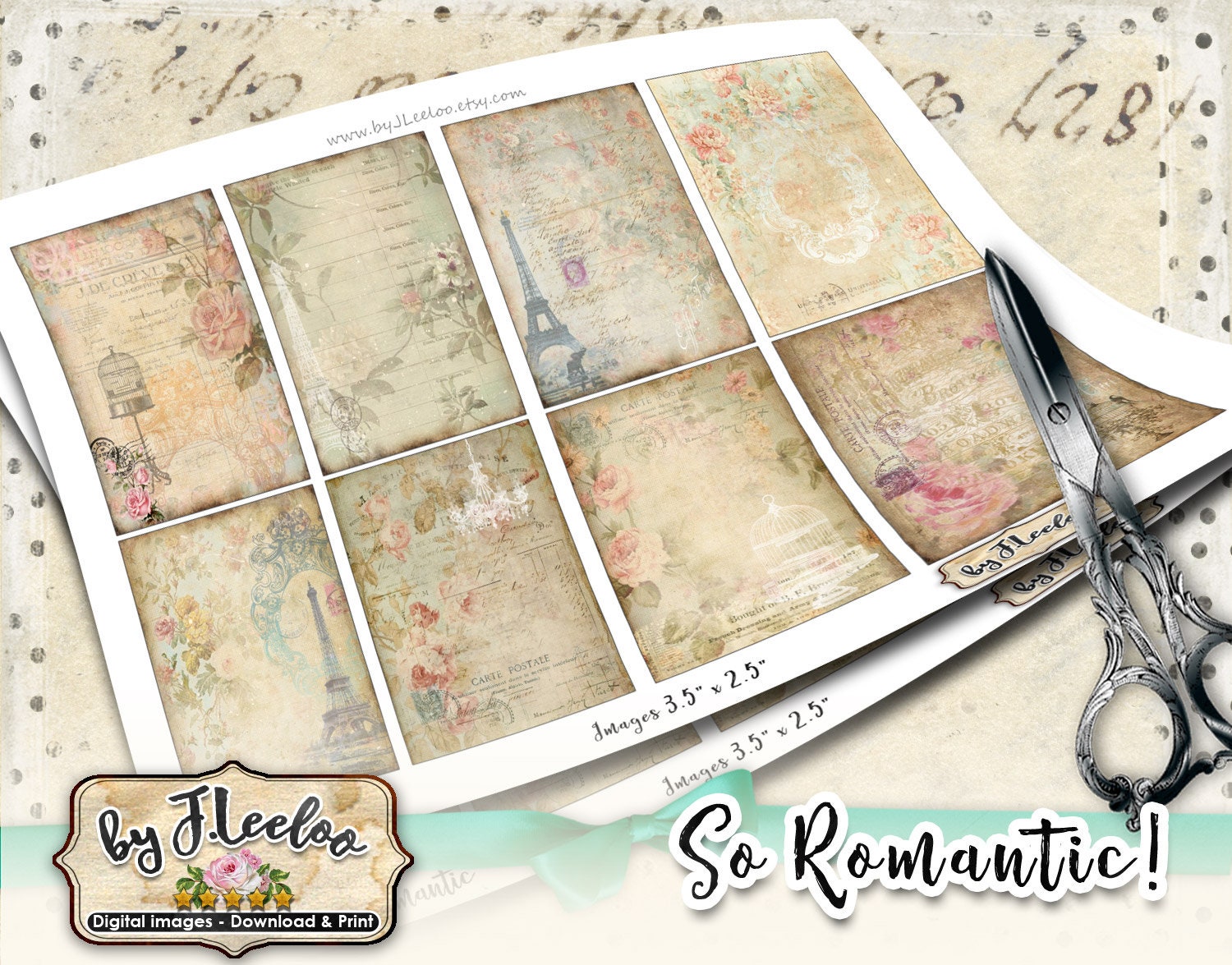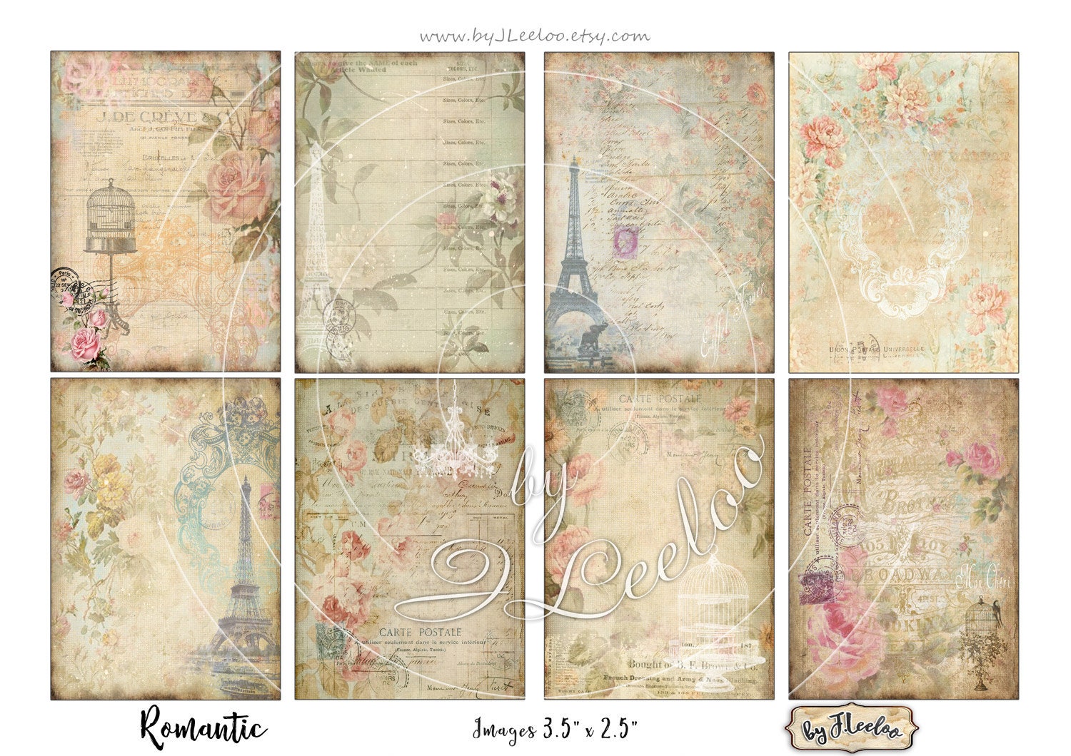 ROMANTIC Paris atc aceo Digital collage sheet for invitation greeting card jewelry holder diary art scrapbook