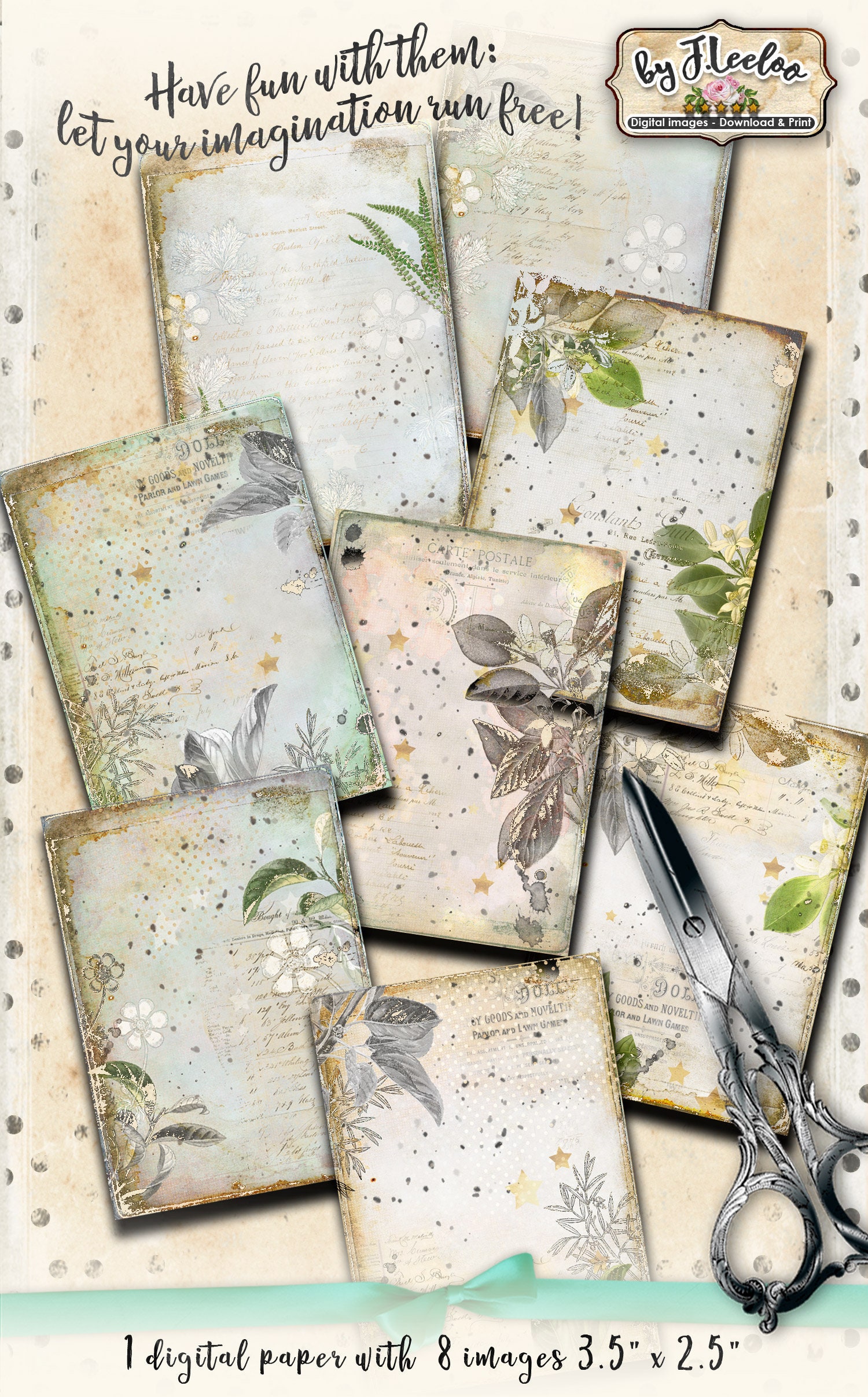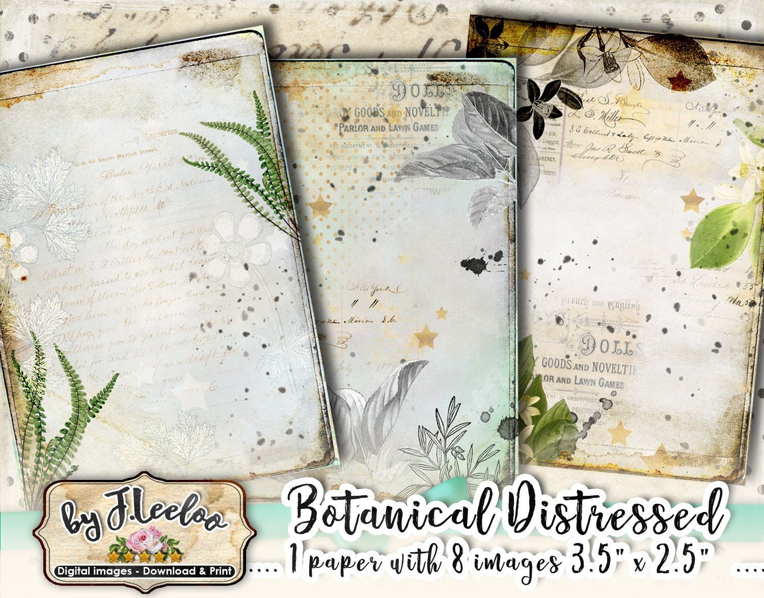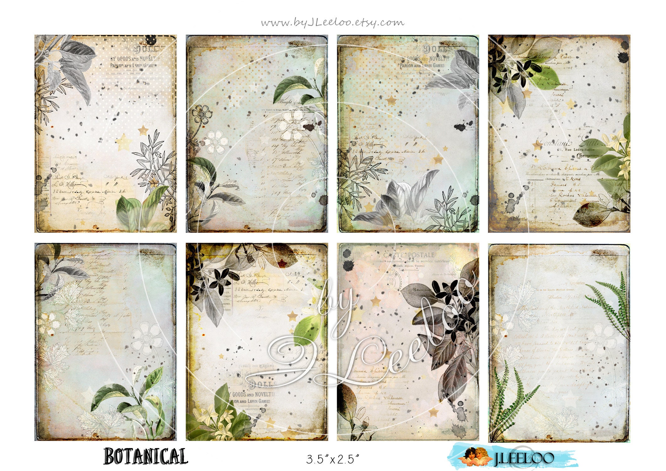 BOTANICAL distressed atc aceo Digital collage sheet for invitation greeting card jewelry holder diary art scrapbook
