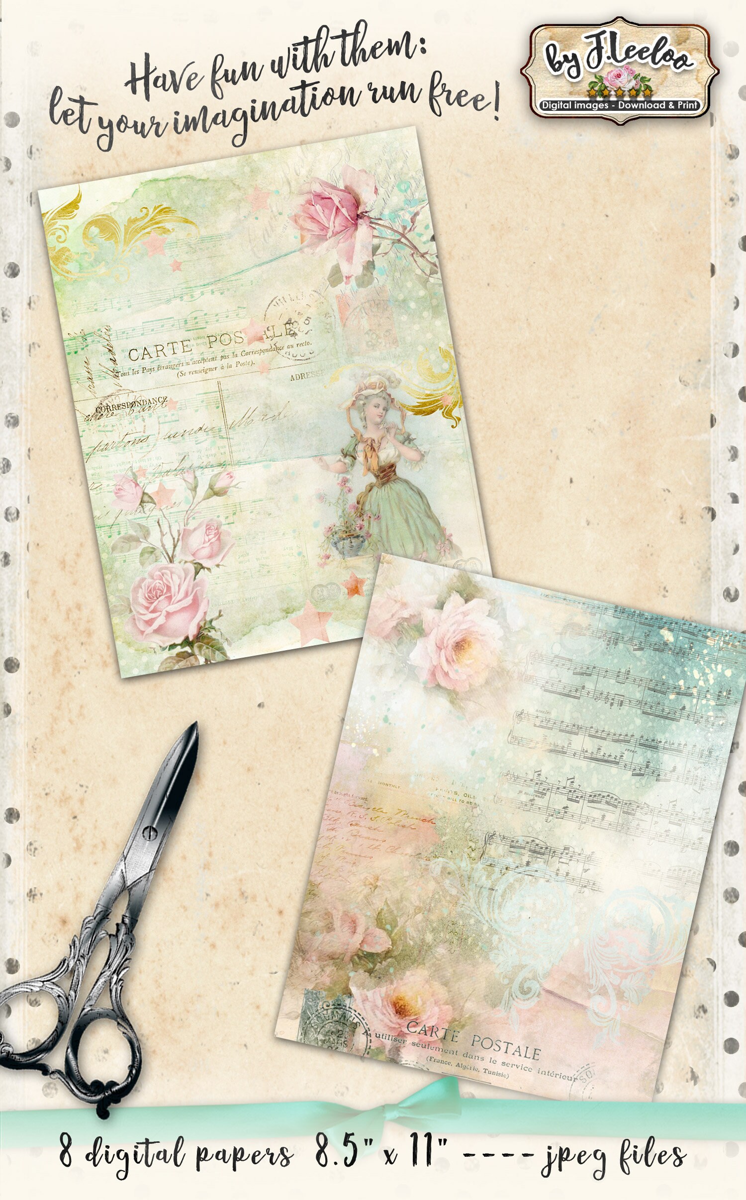 ROMANCE Instant Download - Large Digital French Papers - Victorian digital papers for your crafting projects: scrapbook, background, diary, iron-on transfer, card making.... print it as many time as you want.