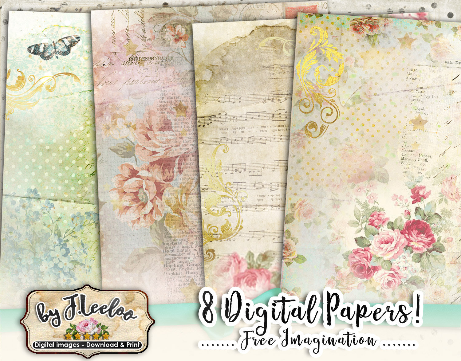 8 large Digital collage sheets