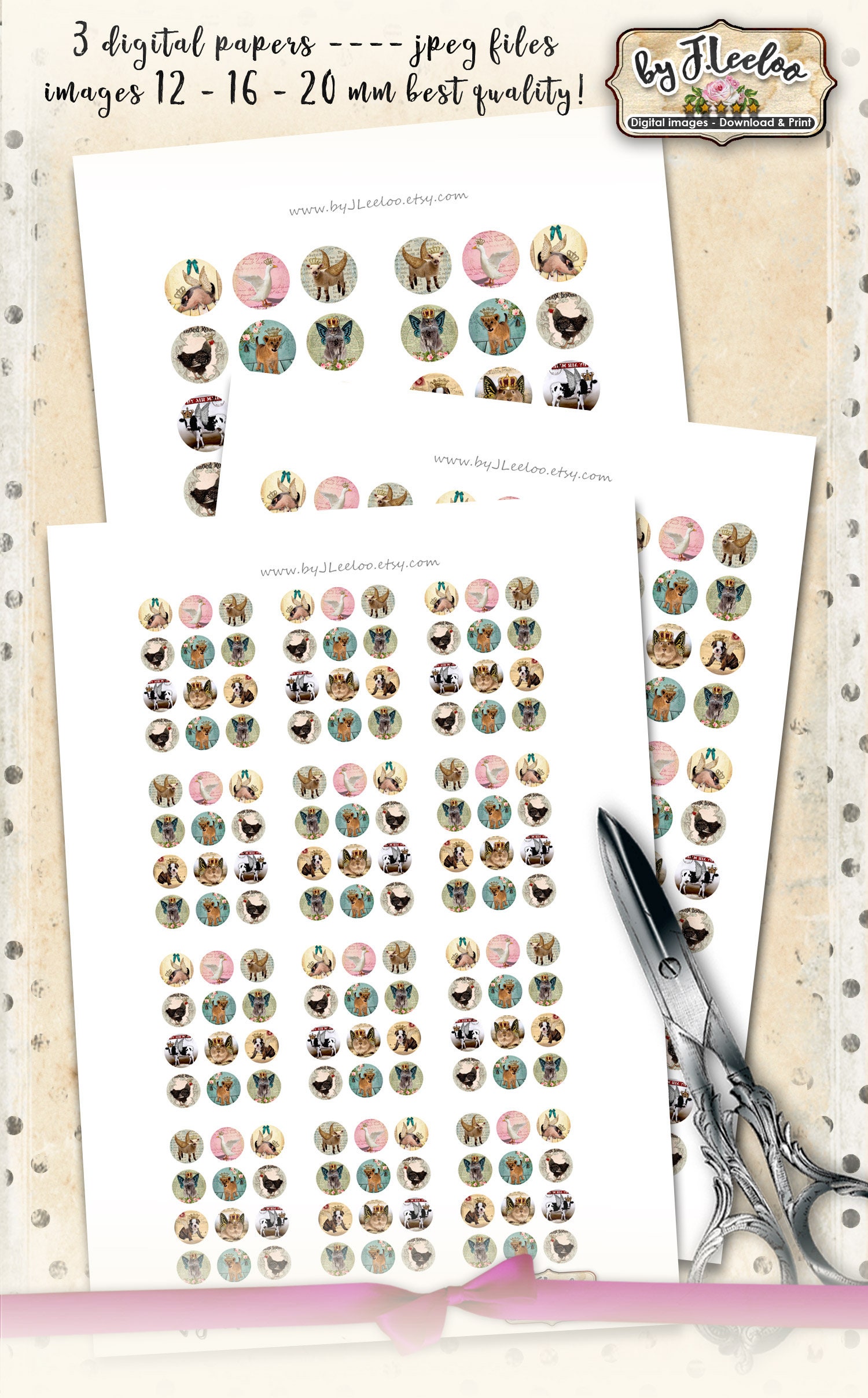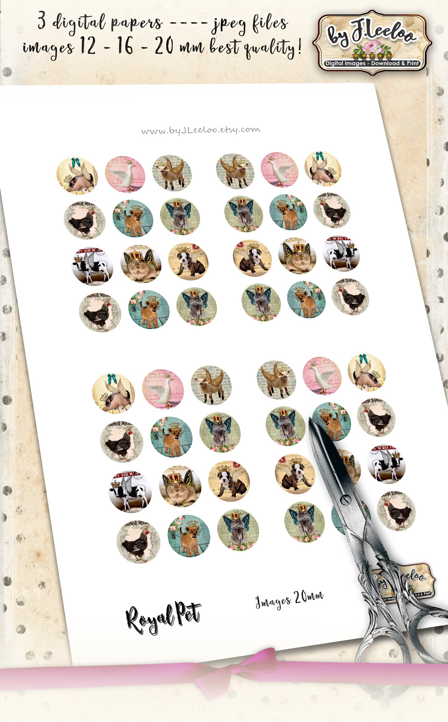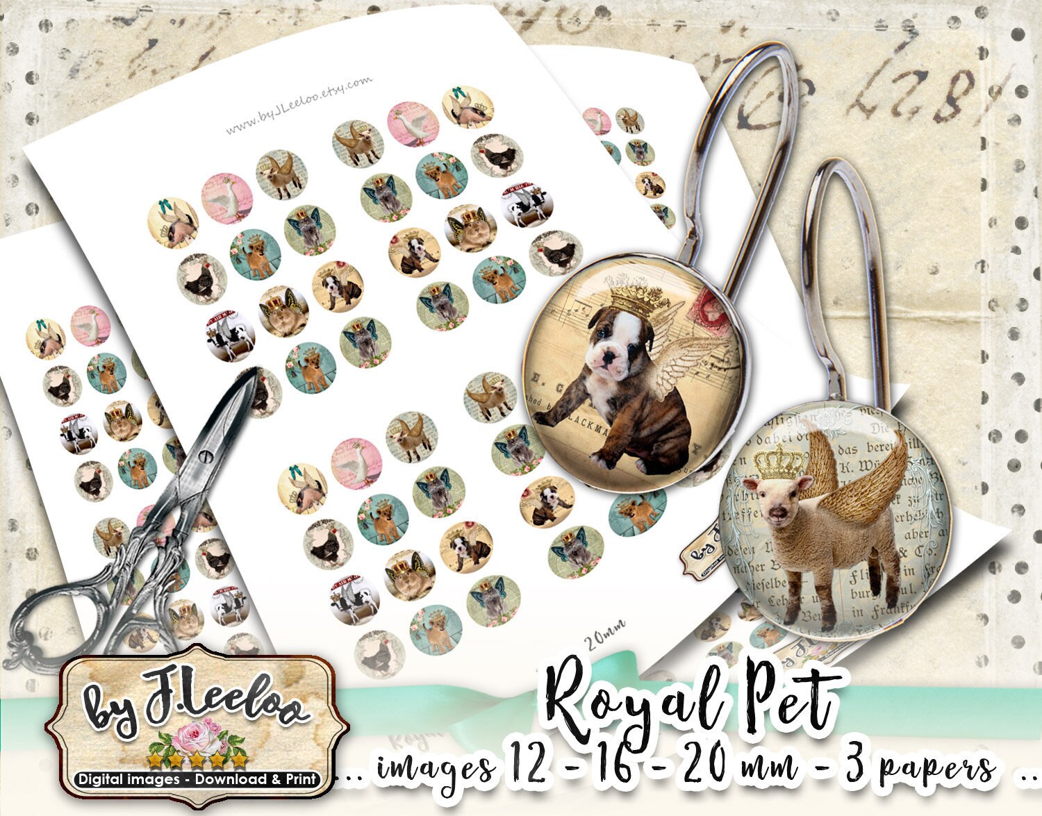ROYAL PET - Digital collage sheets - Circles images instant download ready to print for your jewelry making, resin pendants, rings, earrings and button, for magnets, stickers, scrapbook and your others craft project.