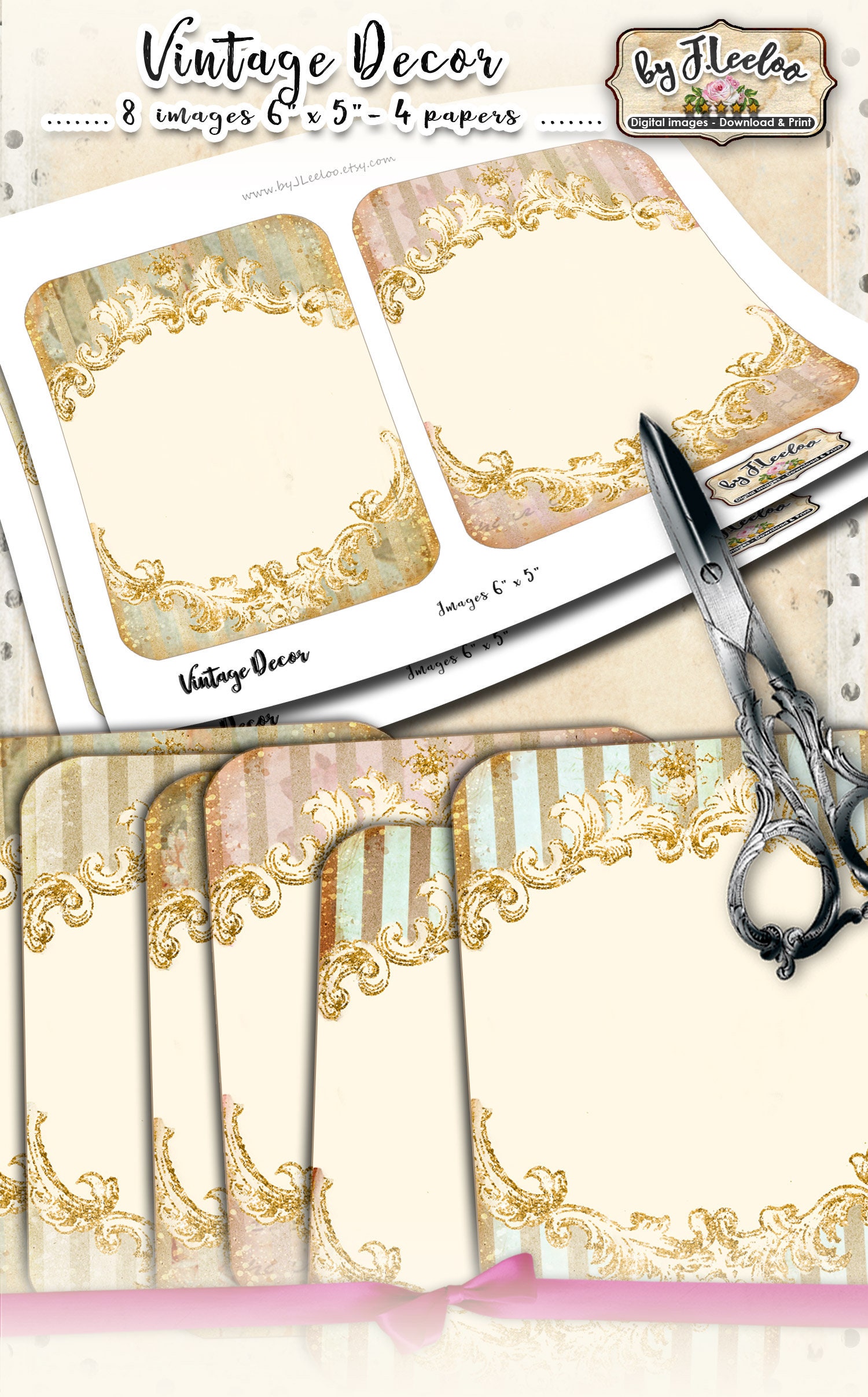 VINTAGE DECOR - Digital collage sheets: editable cards tags download and print for hang tags, labels, scrapbook, jewelry holders, cards, and your others craft project.