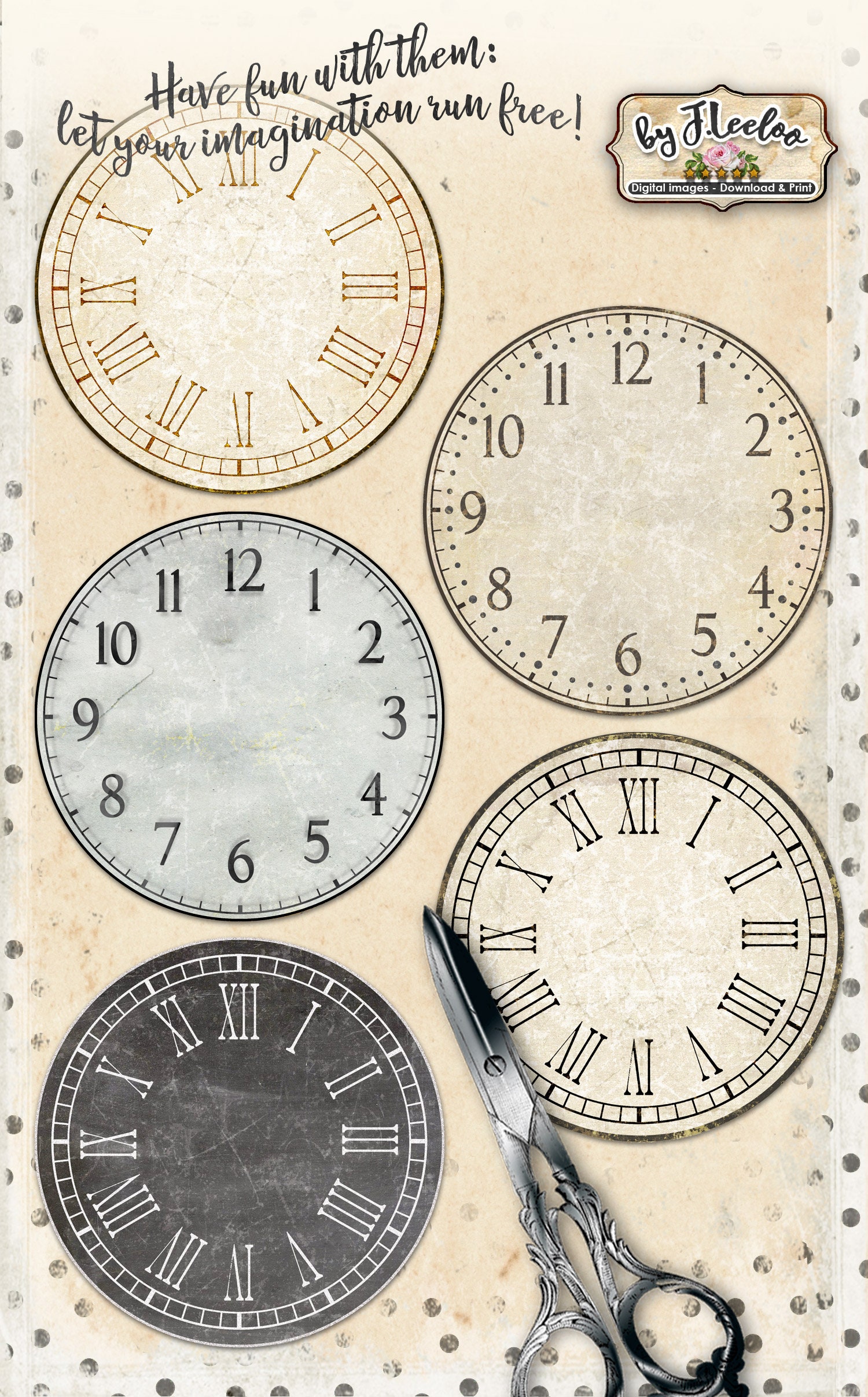VINTAGE CLOCK Digital printable collage sheets - Clock face large images instant download ready to print for home decor, magnets, stickers, scrapbook and your others craft project.