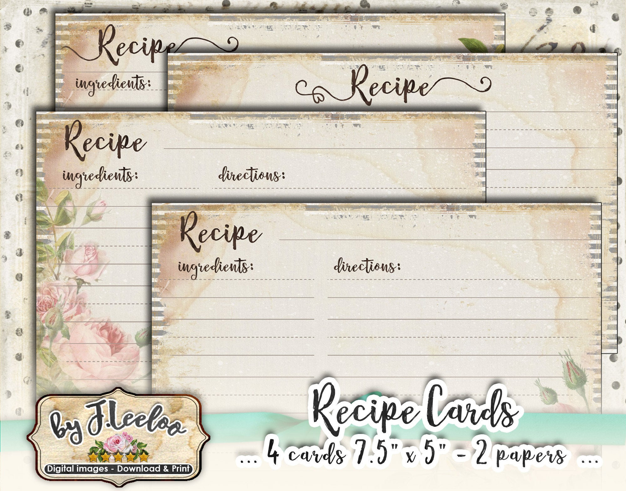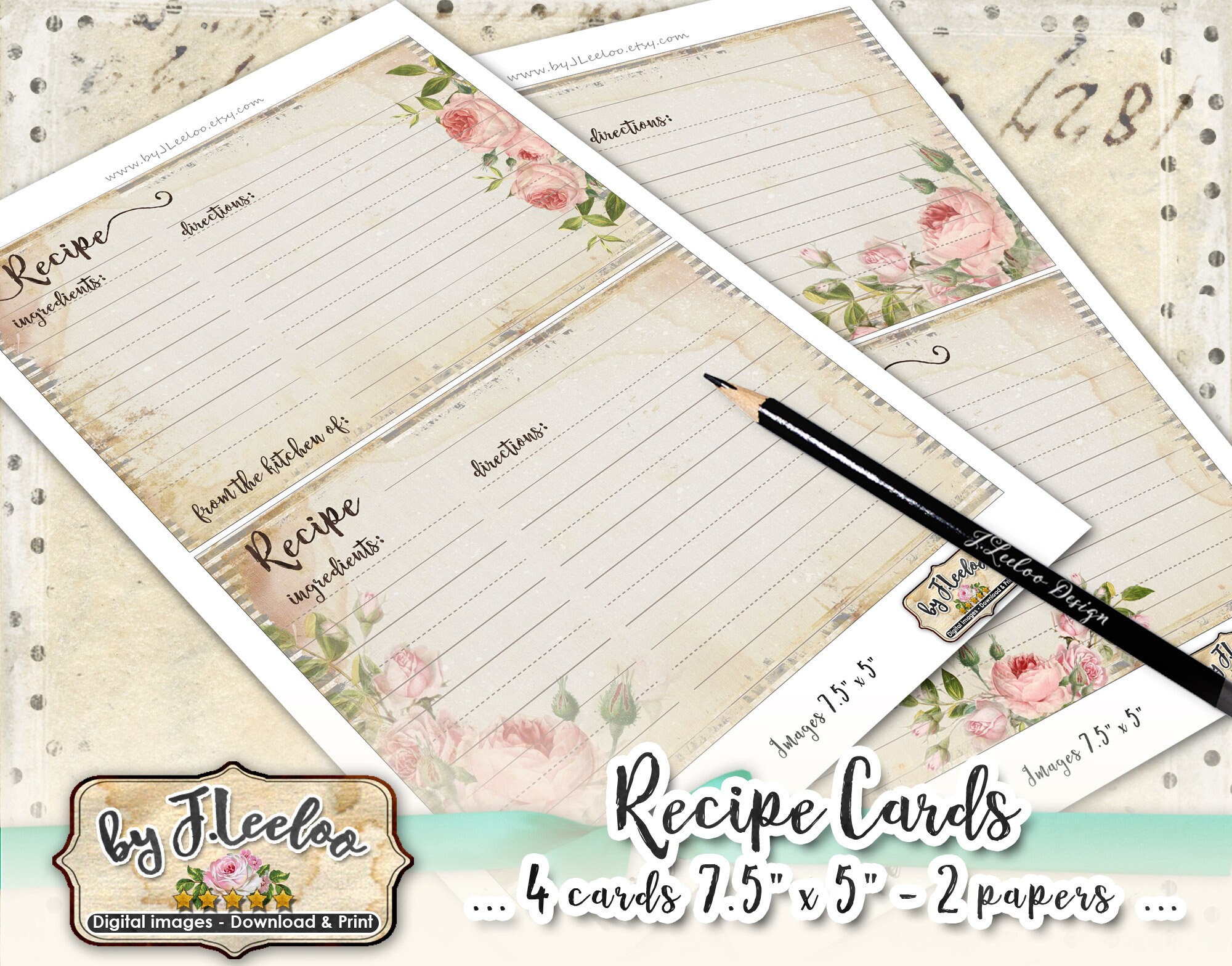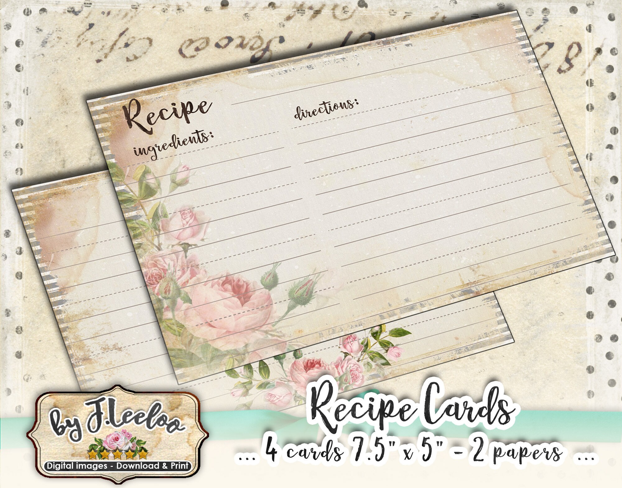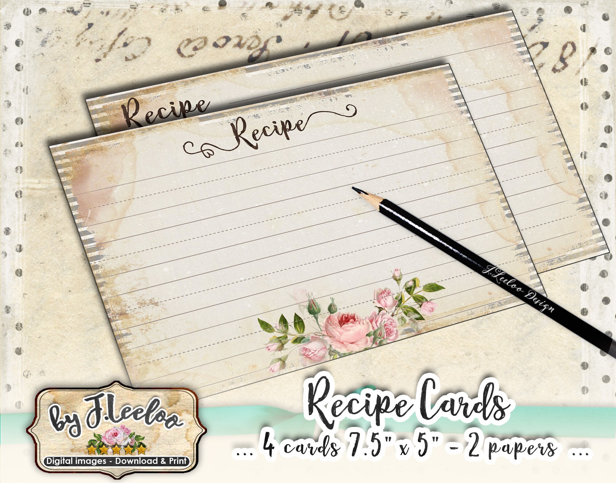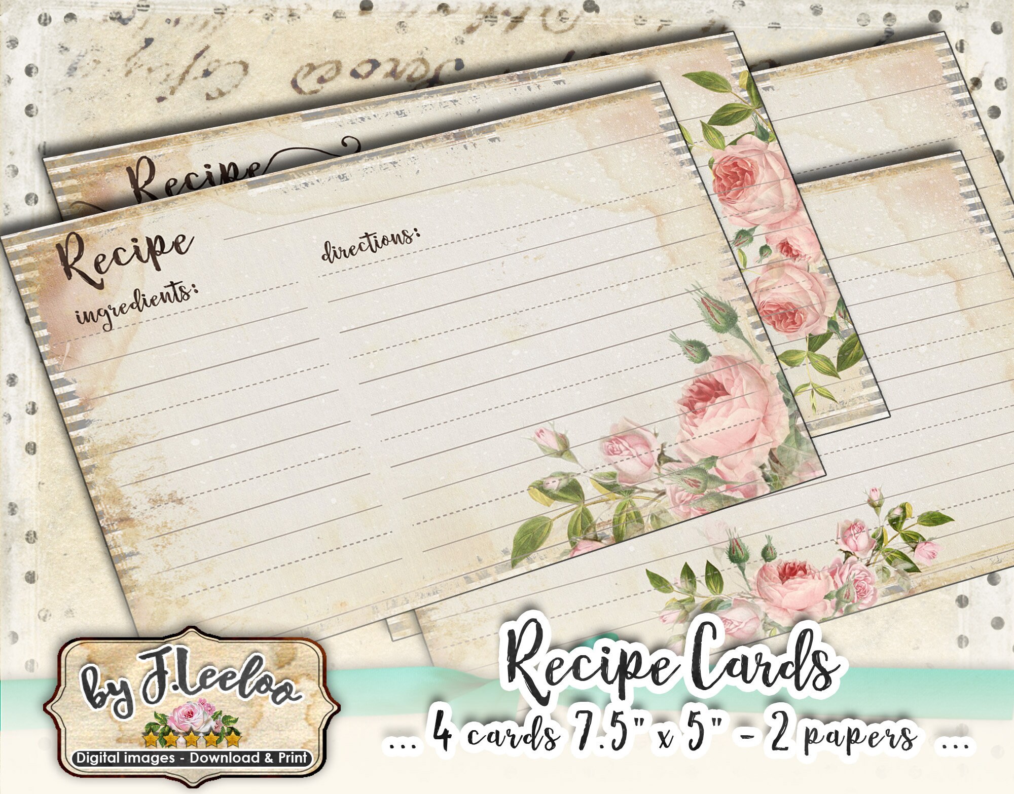 These are perfect! I love the variety and the vintage look. I printed out a couple on card stock paper and cut it to size. I wrote a couple of my favorite recipes on the cards before sending them to family. Very pleased with my purchase, thank you.