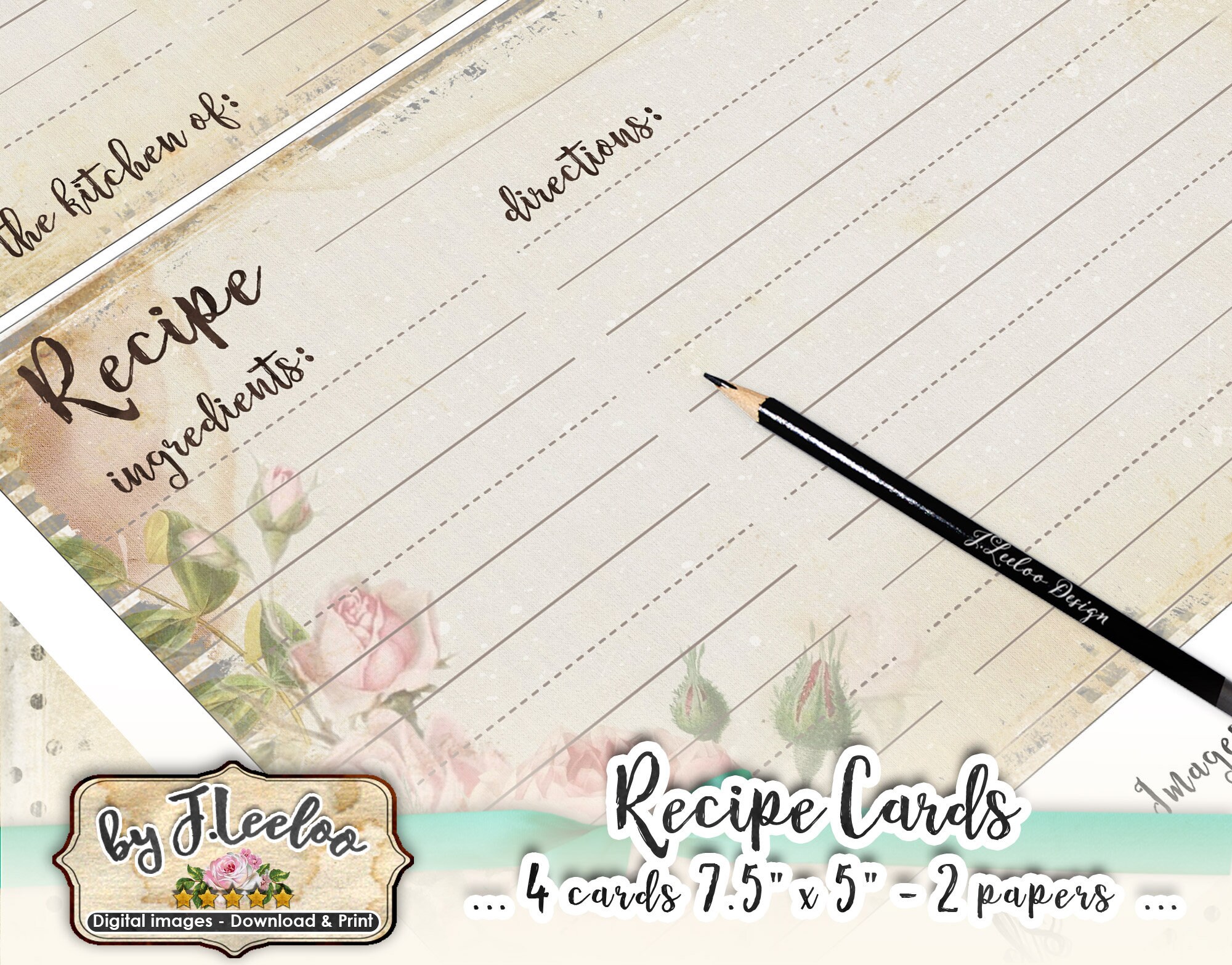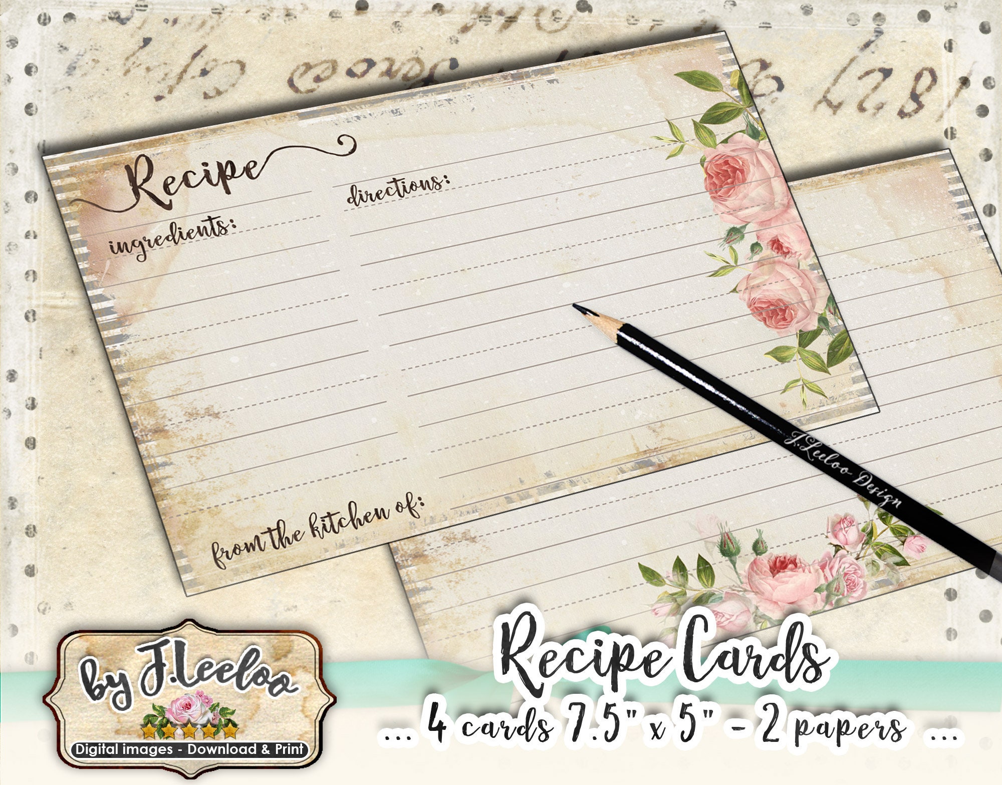RECIPE CARDS Digital collage sheets: download and print editable cards kitchen organization cookbook vintage crafting and your others craft projects.