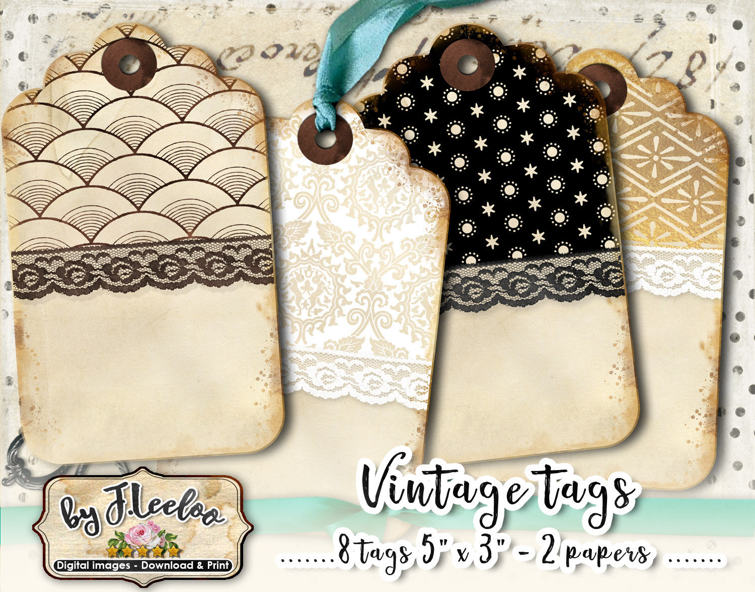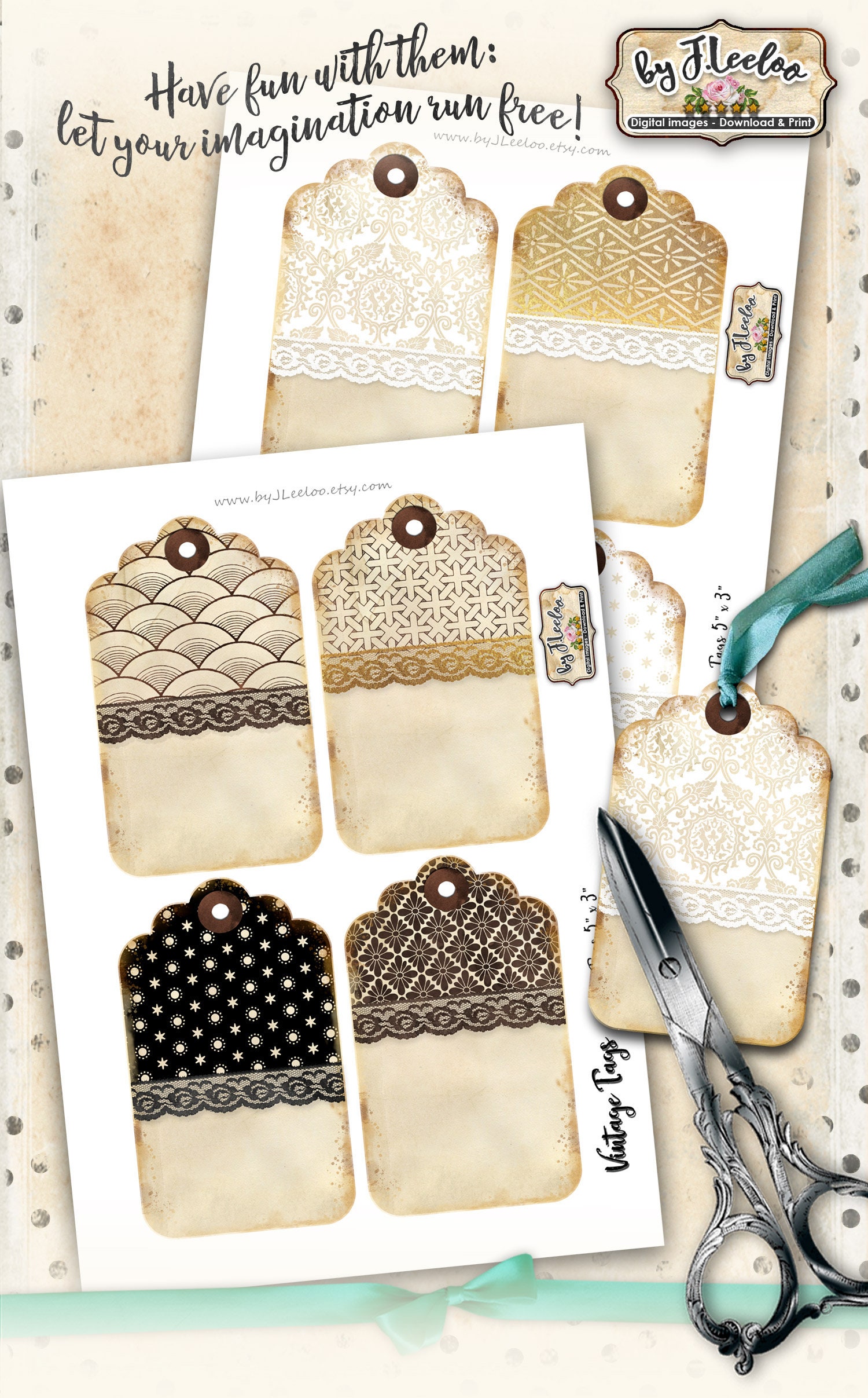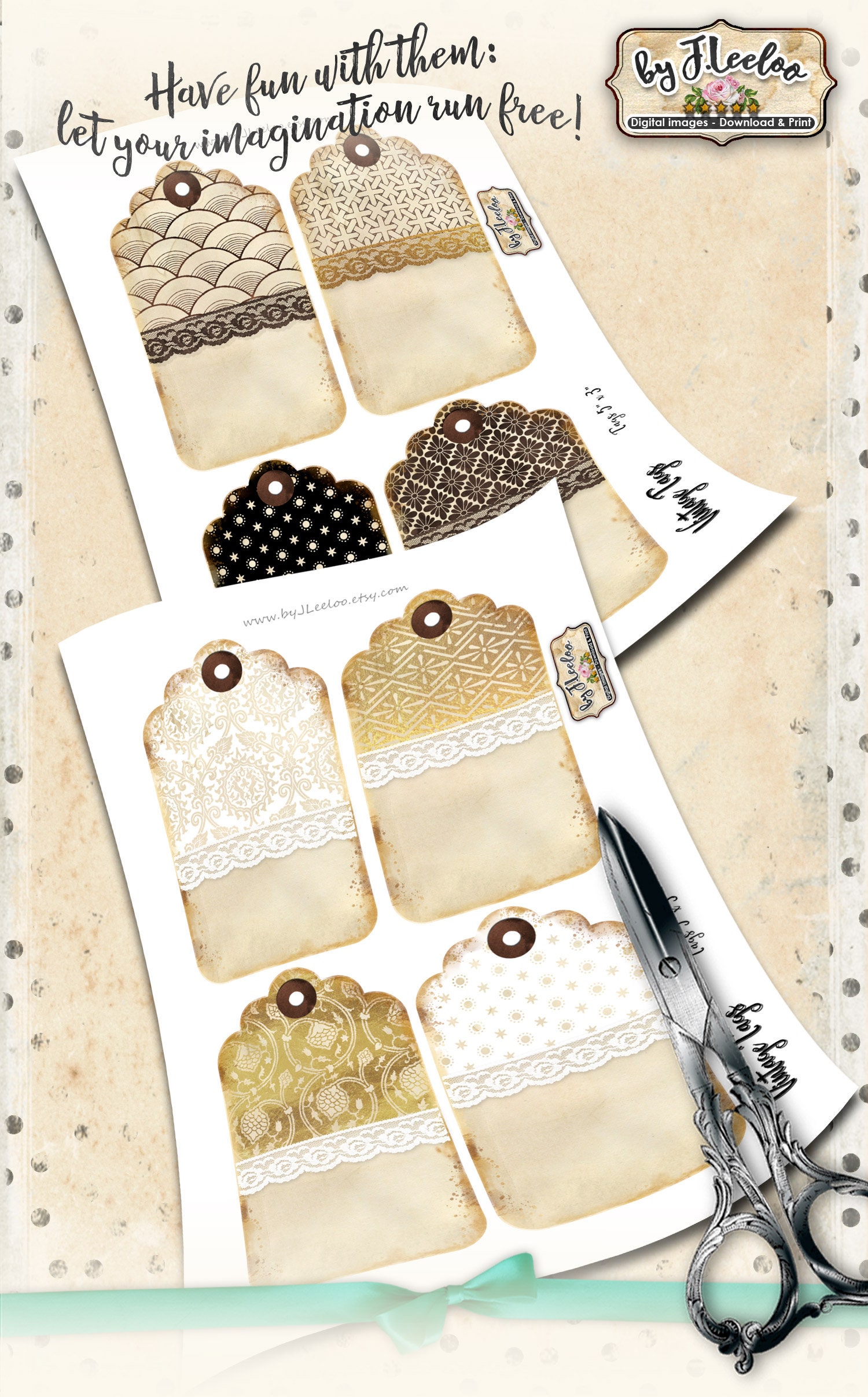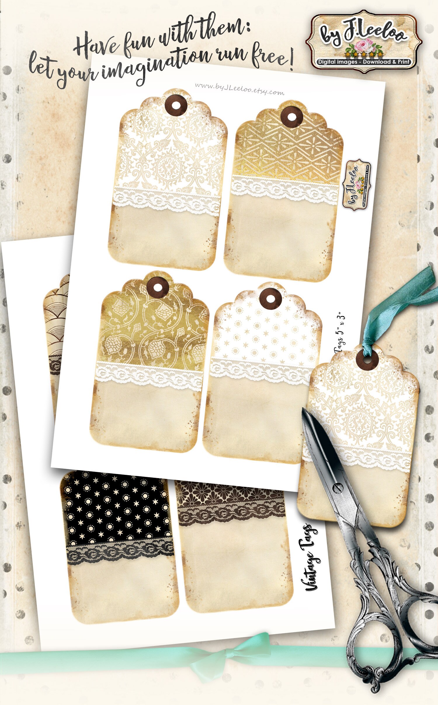 VINTAGE TAGS - Digital collage sheets: printable tags download and print for s hipping packages etsy shop hang tags, labels, scrapbook, jewelry holders, cards, and your others craft project.