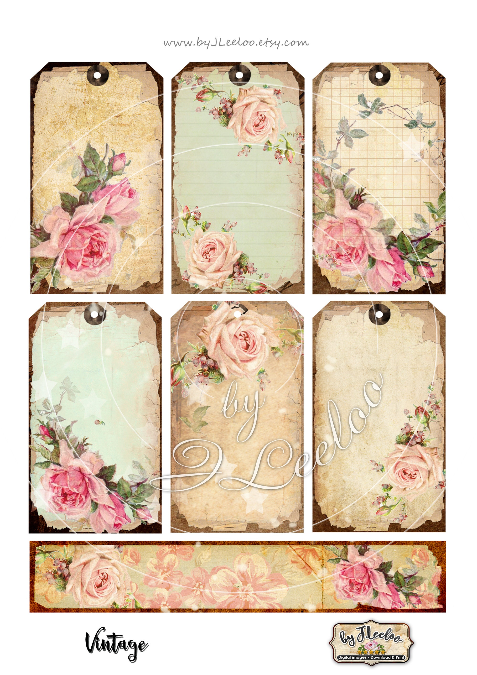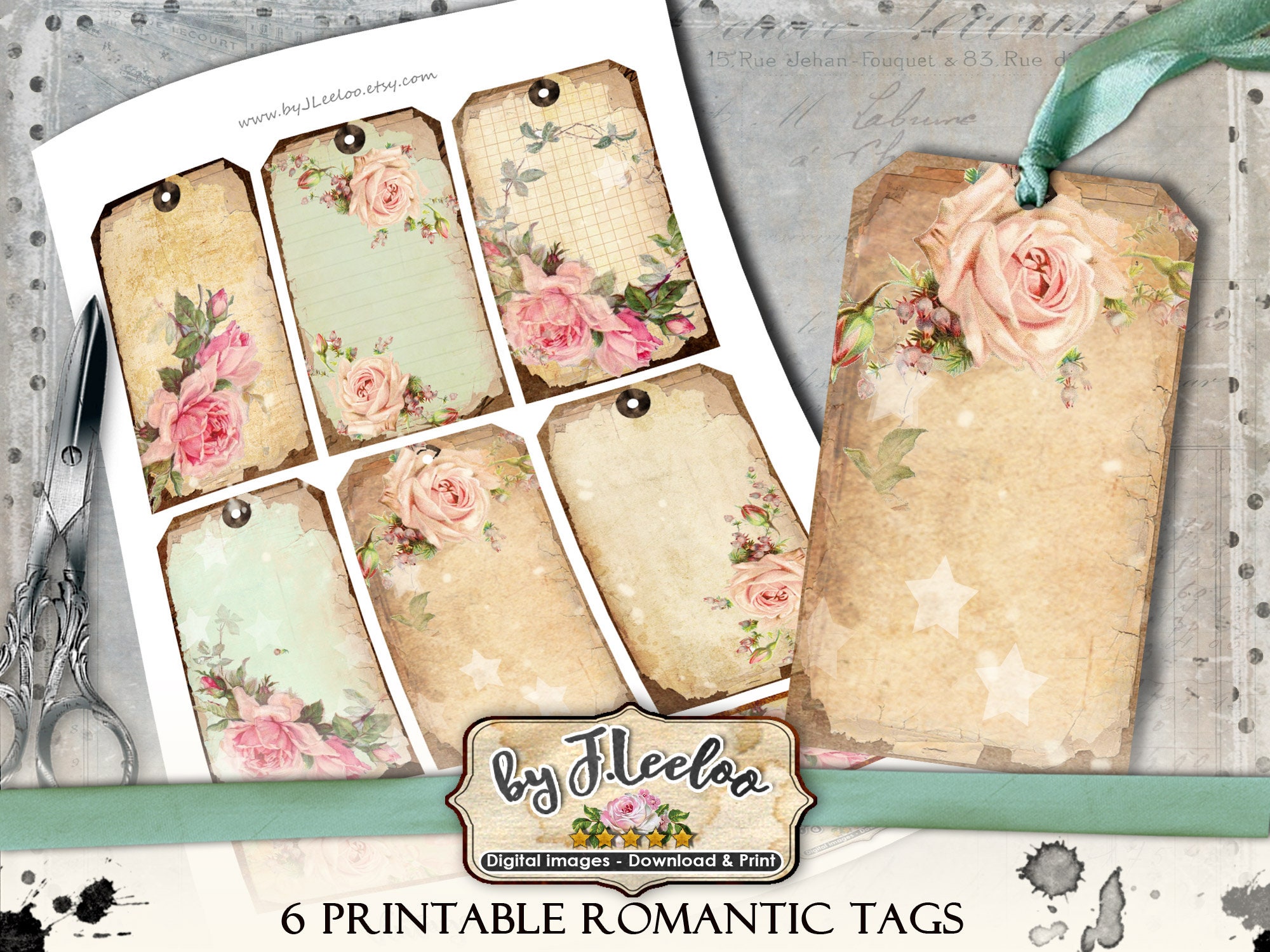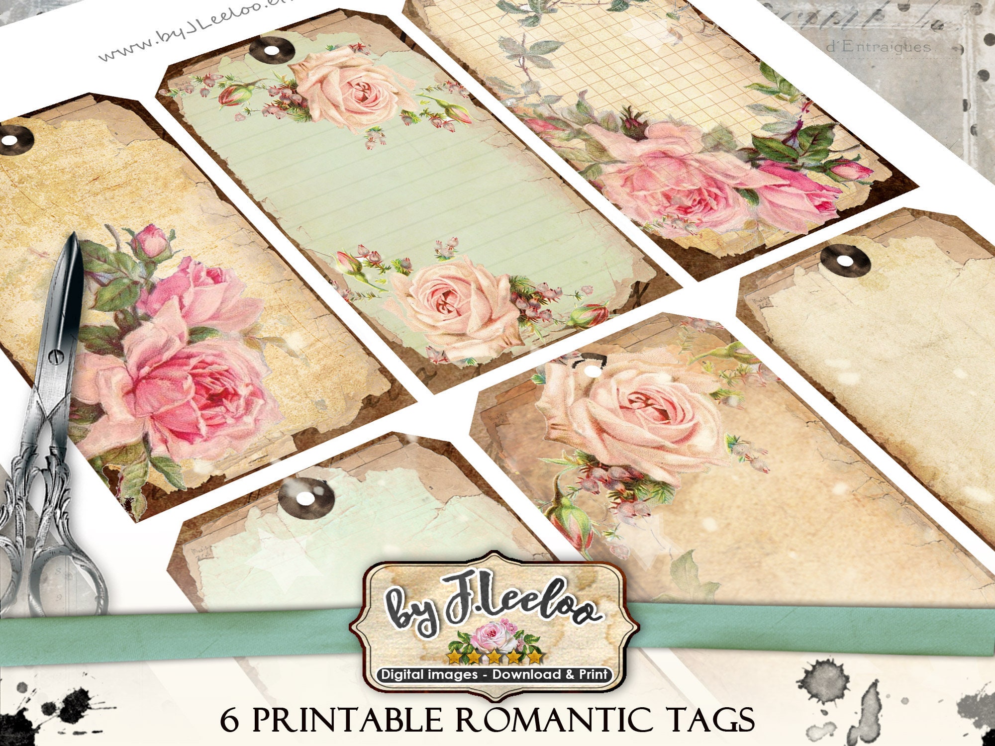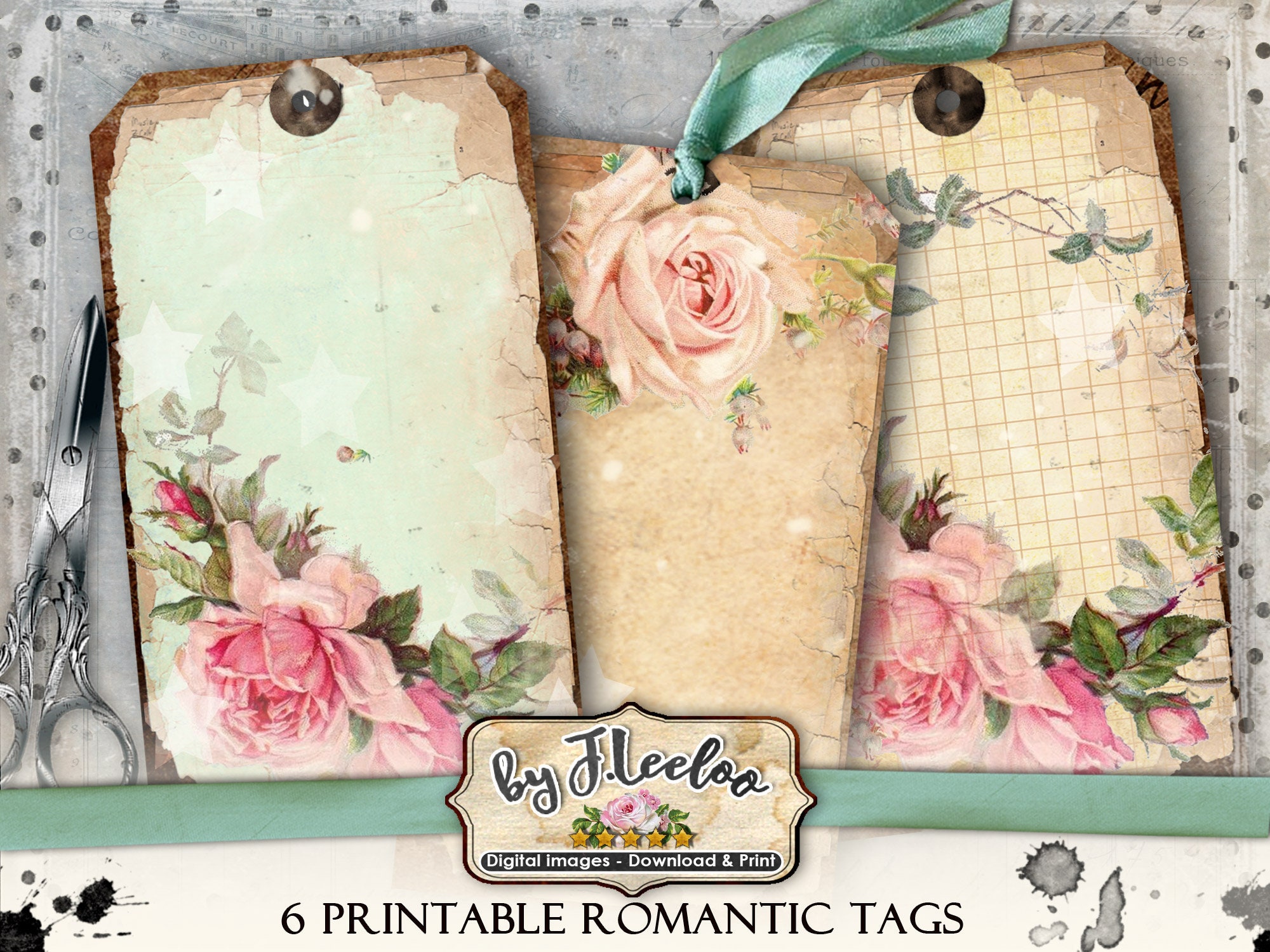 ROMANTIC TAGS digital shabby chic jewelry holder, french roses paper goods for craft art and your others craft project.