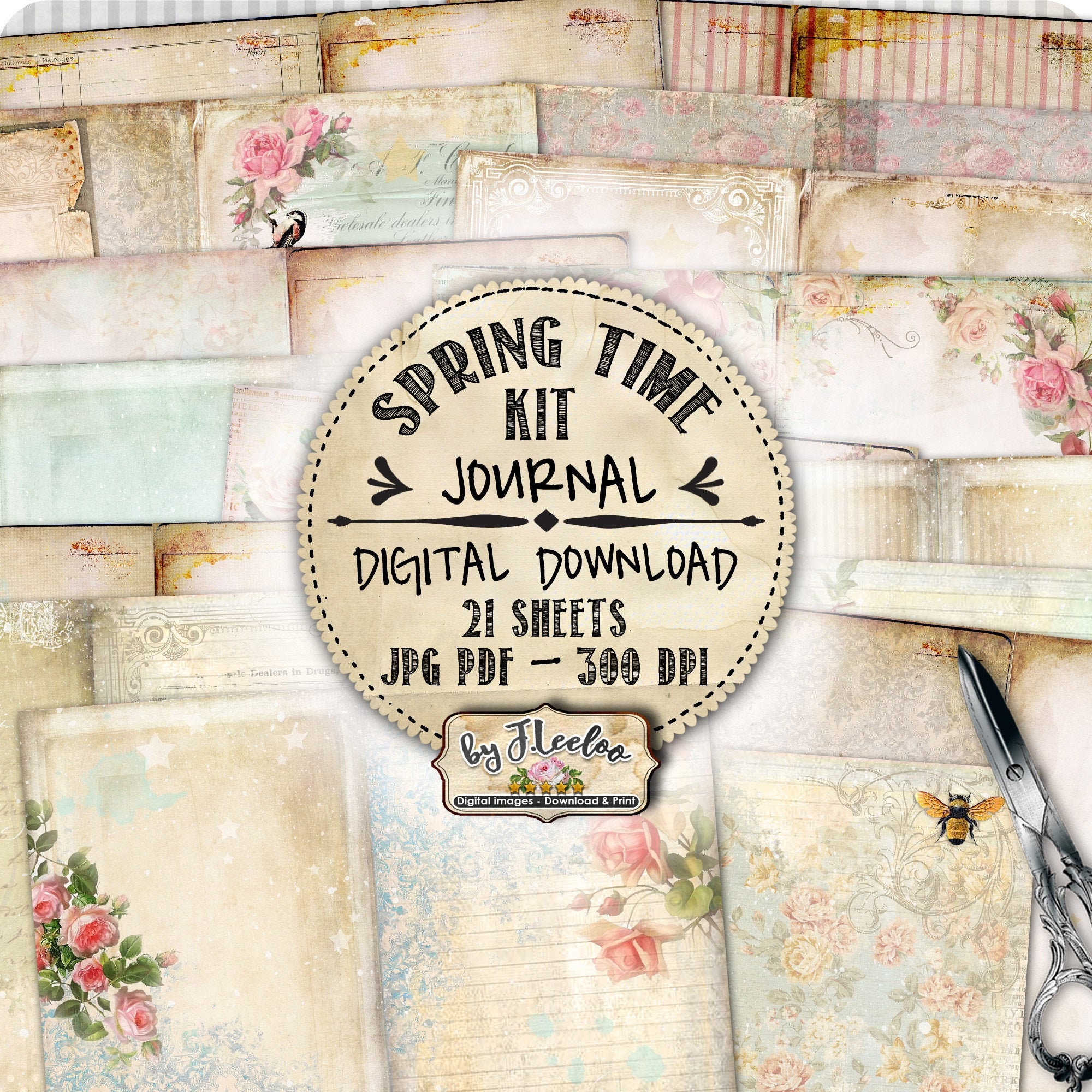 KIT DIARIO DI PRIMAVERA documenti shabby chic diario arte creazione sfondi brandelli scrapbooking download immediato diario stampabile.