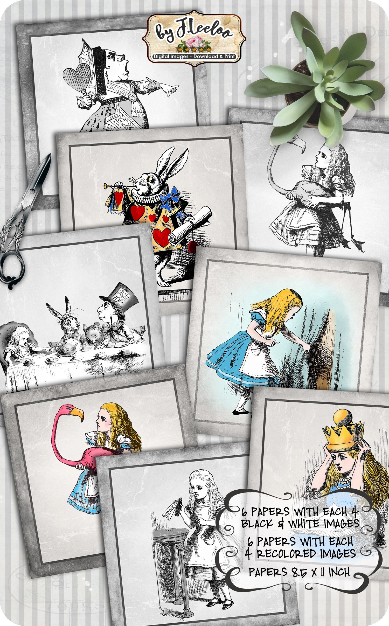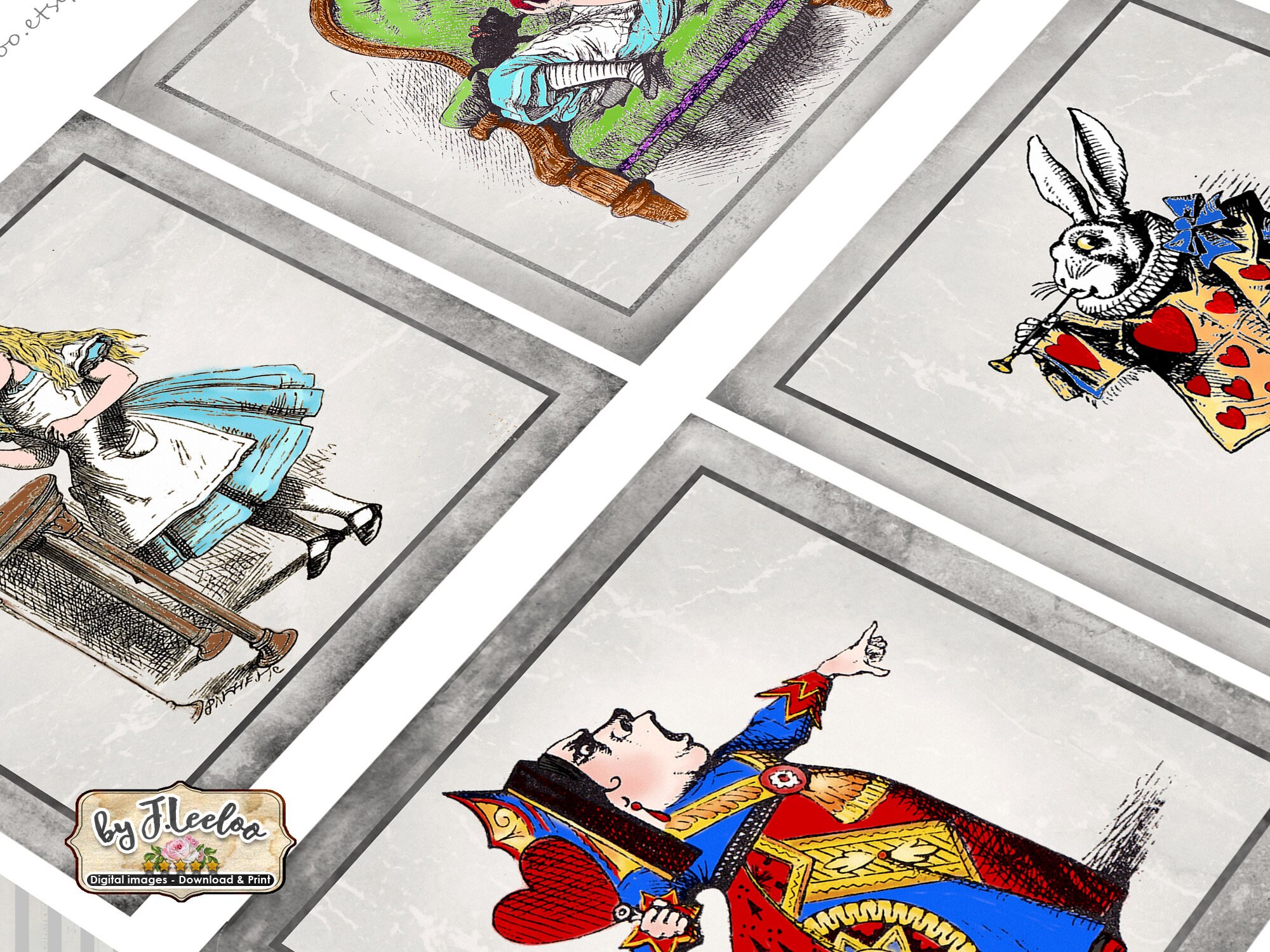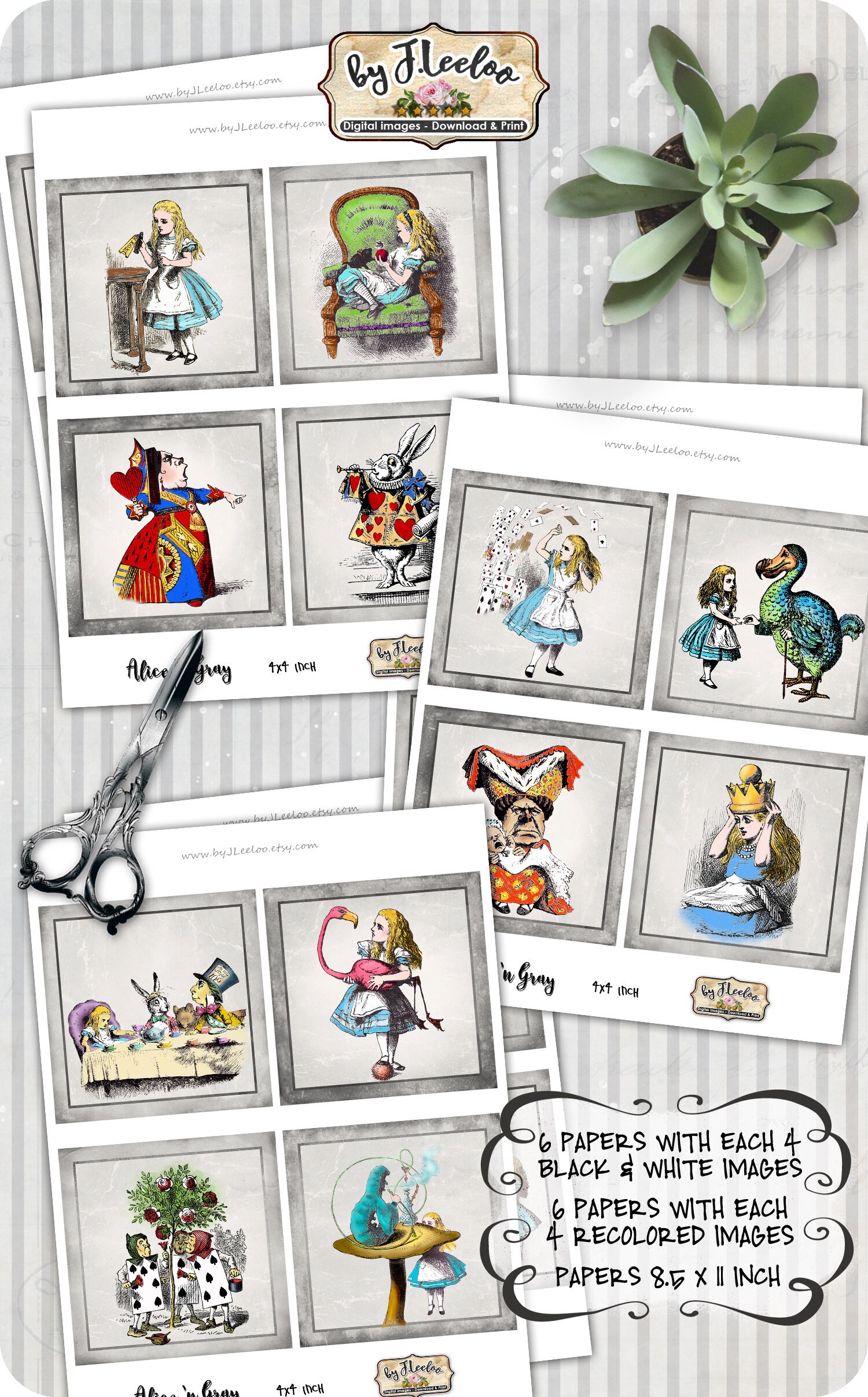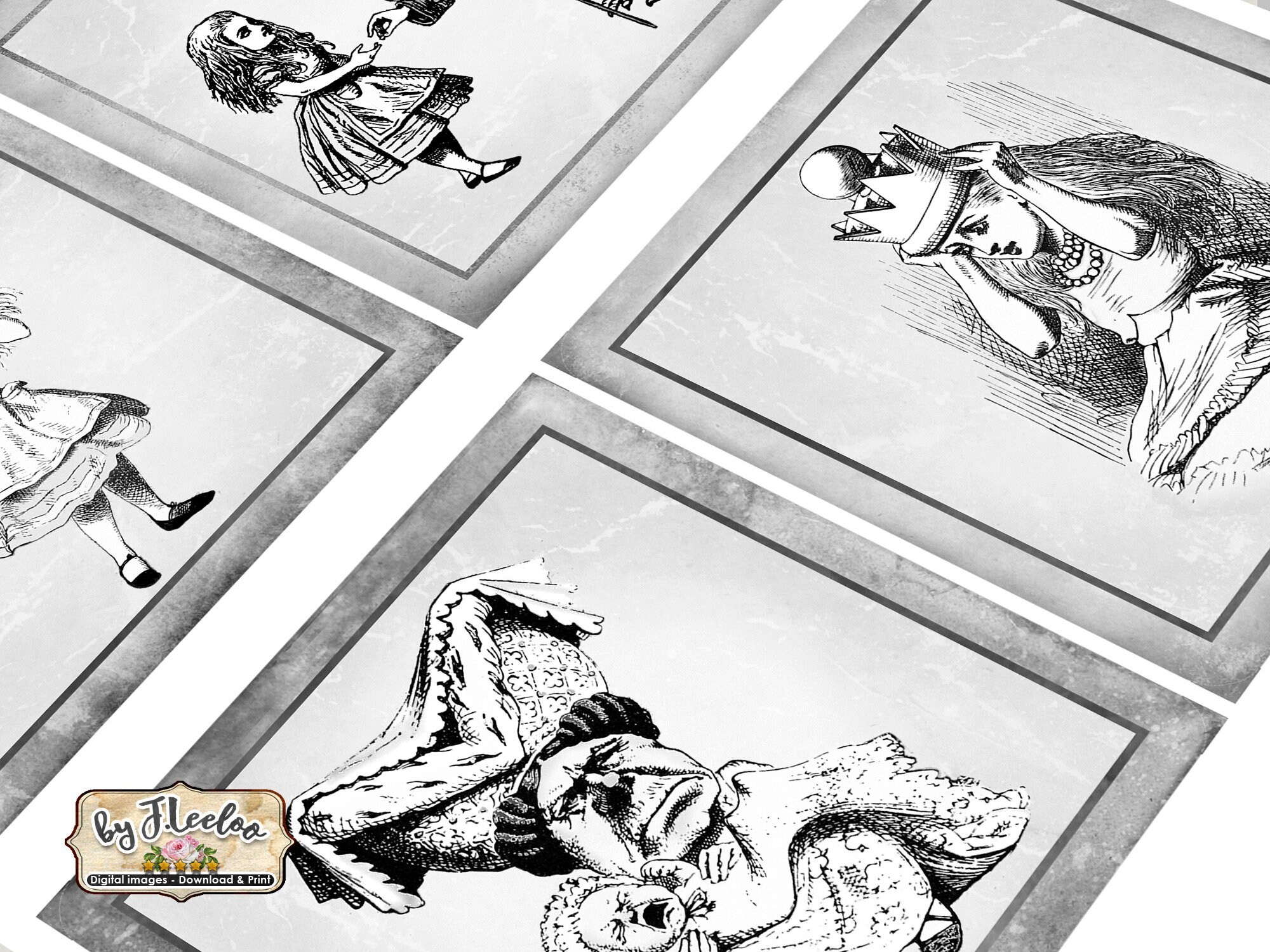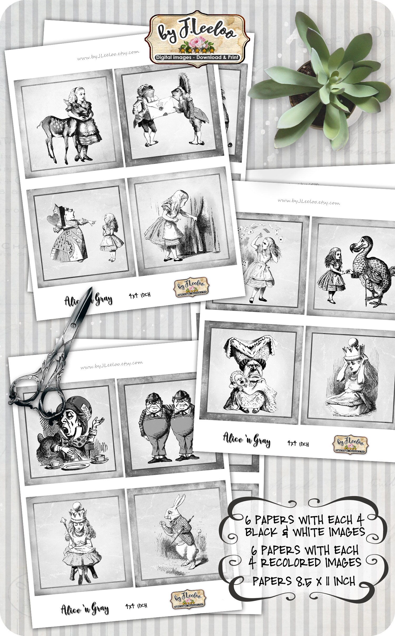 ALICE n GRAY Instant Download - Digital collage sheets - Squares printable images for coaster, jewelry holder, hang tags, stickers and all your craft project.