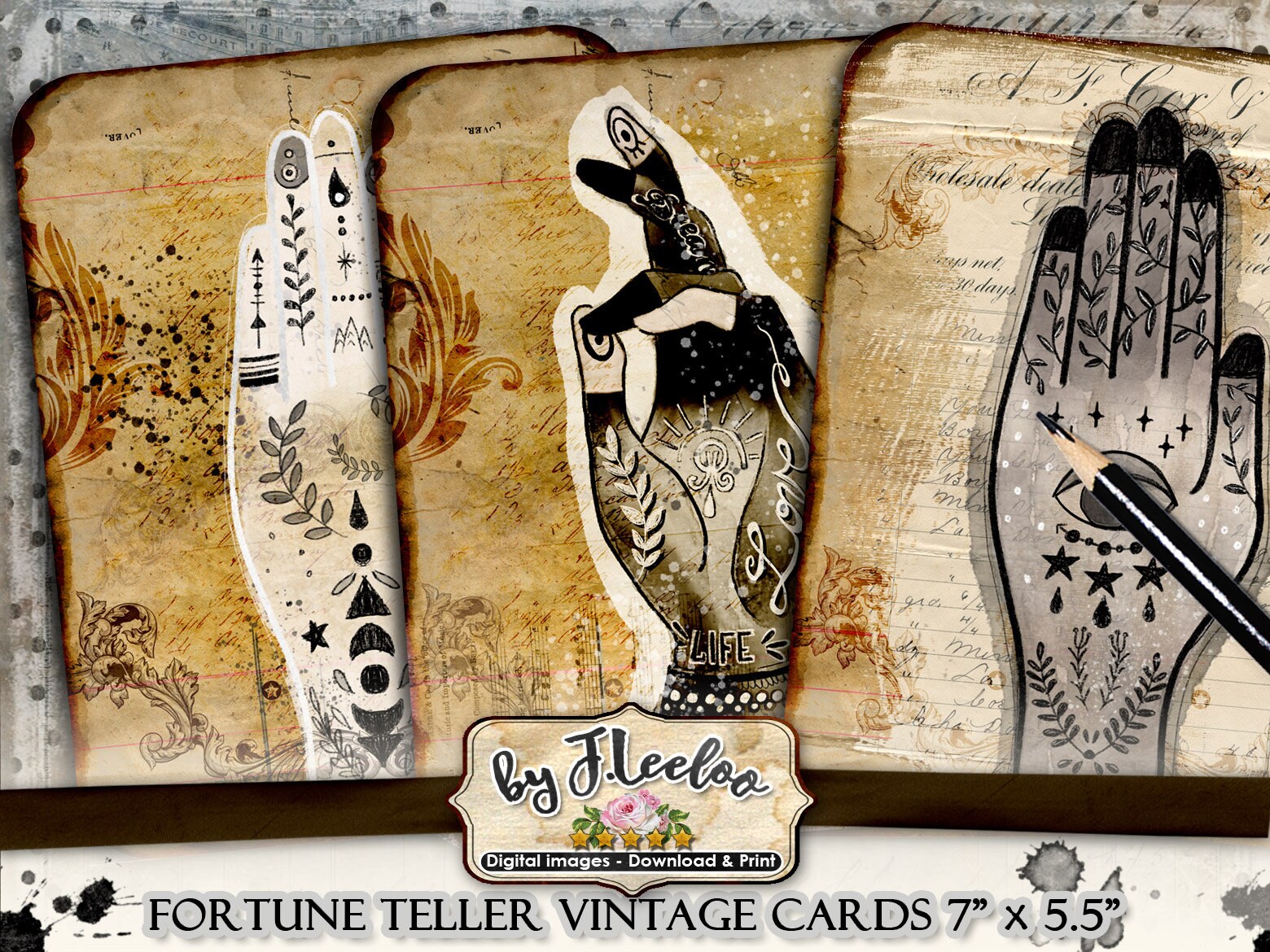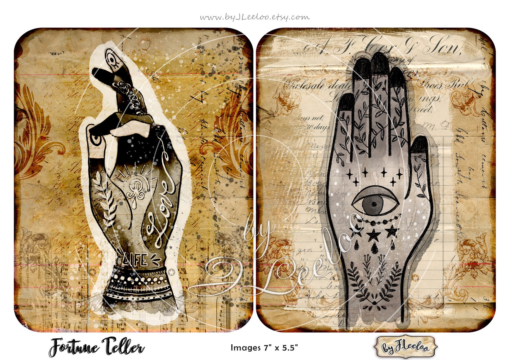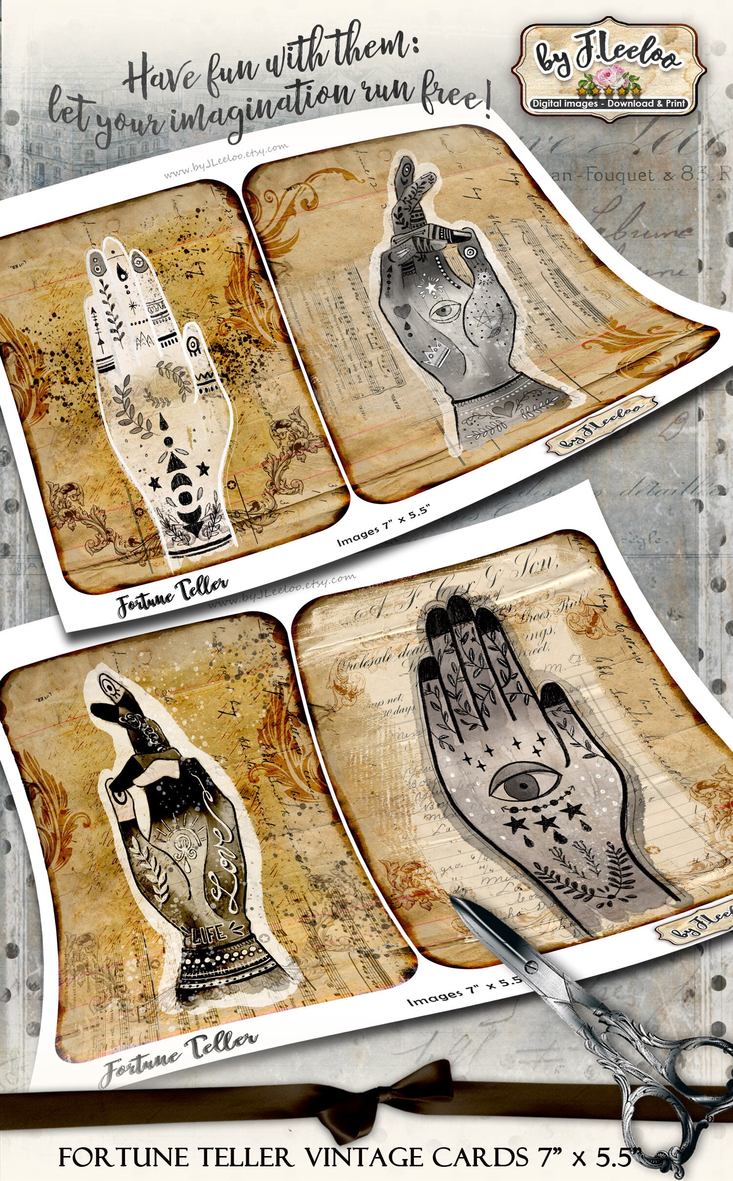 Foglio di collage digitale disegnato a mano da FORTUNE TELLER - Carte digitali steampunk scure e gotiche: immagini per il tuo diario, opere d'arte, cartoline, cartellini, inviti, biglietti di auguri, annunci, album di ritagli, carte di supporto... tutto per il tuo progetto di creazione!