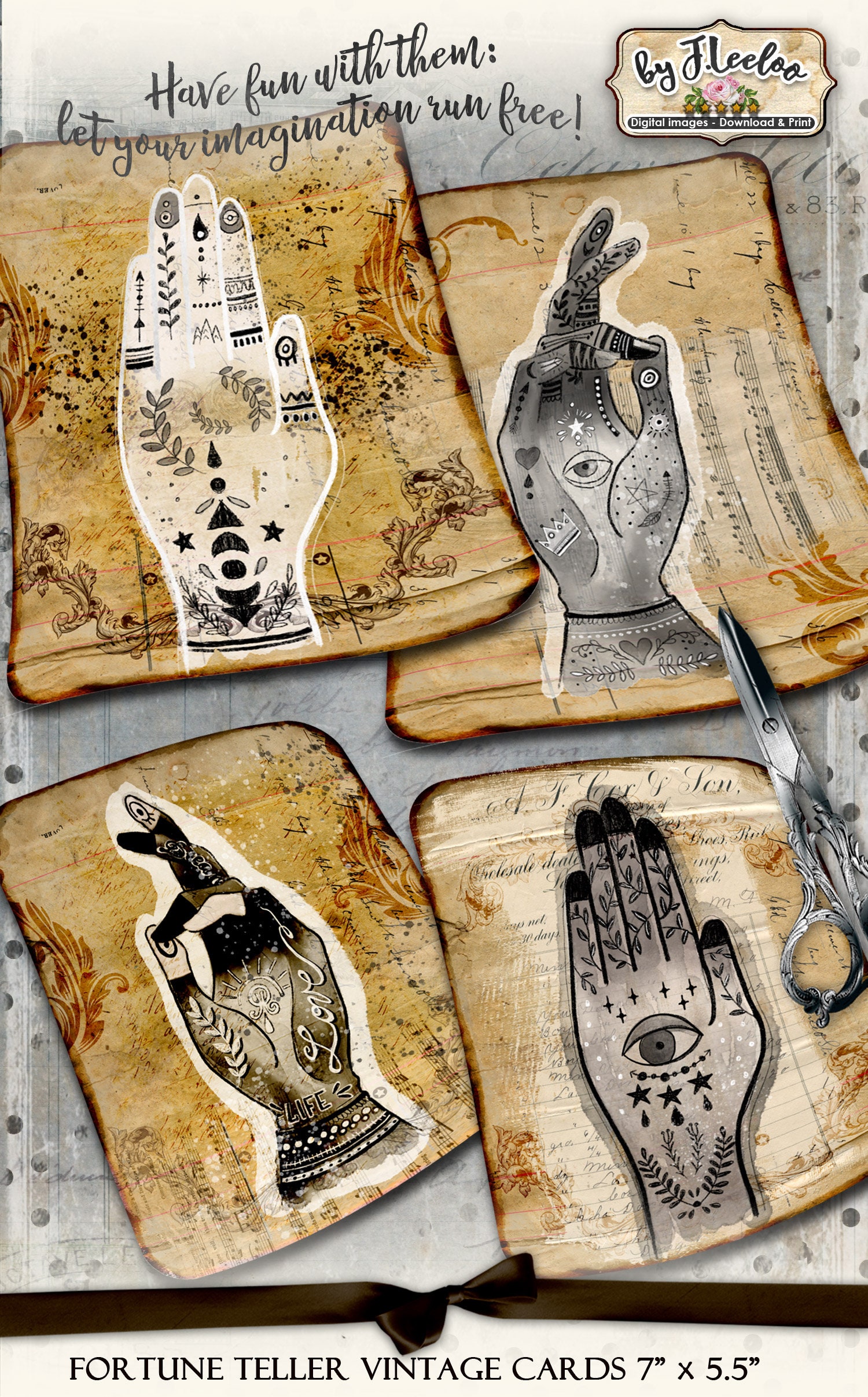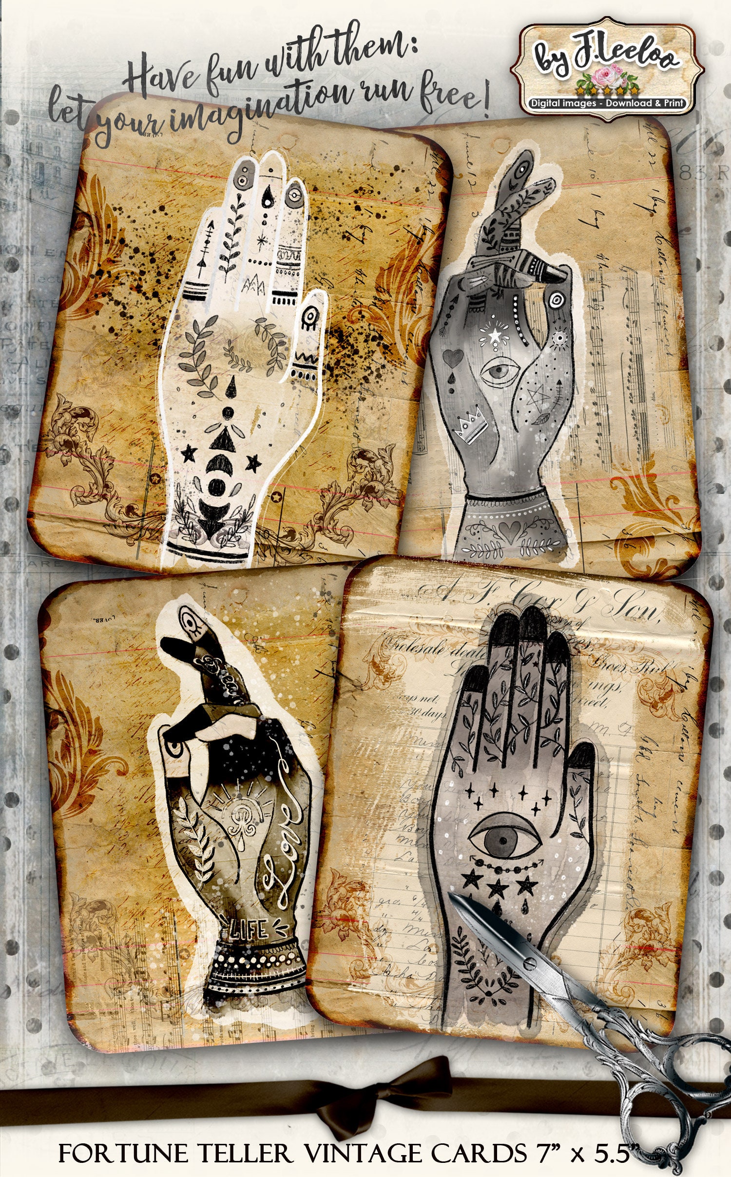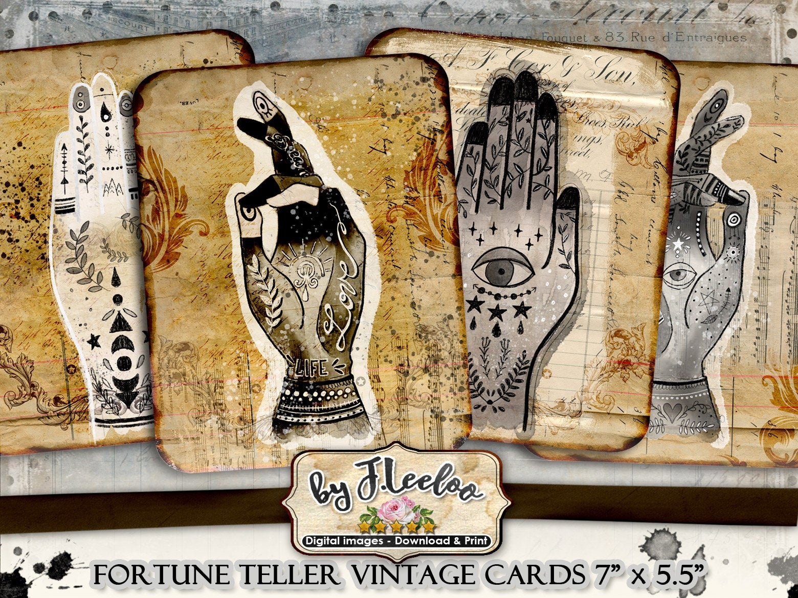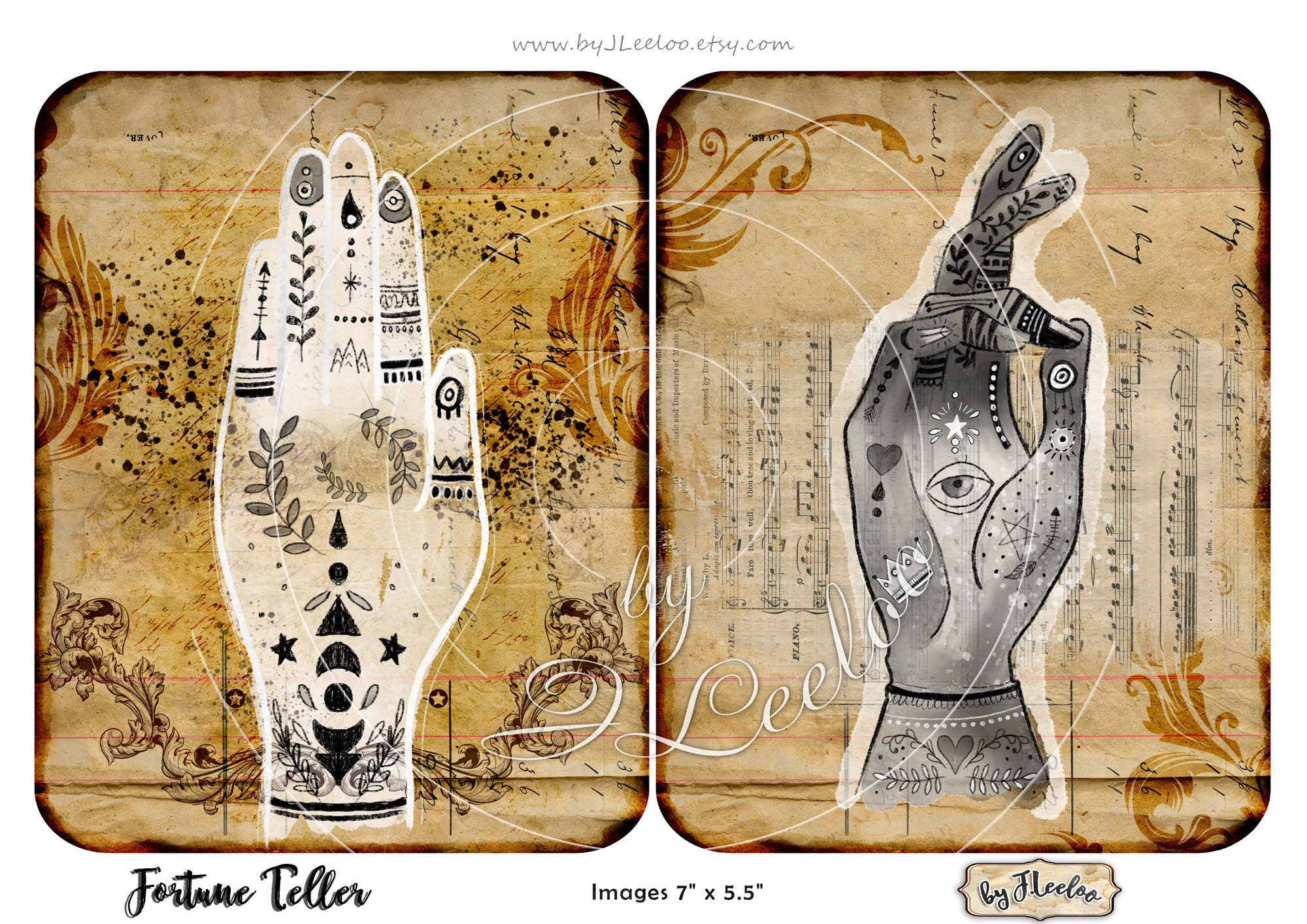 Foglio di collage digitale disegnato a mano da FORTUNE TELLER - Carte digitali steampunk scure e gotiche: immagini per il tuo diario, opere d'arte, cartoline, cartellini, inviti, biglietti di auguri, annunci, album di ritagli, carte di supporto... tutto per il tuo progetto di creazione!