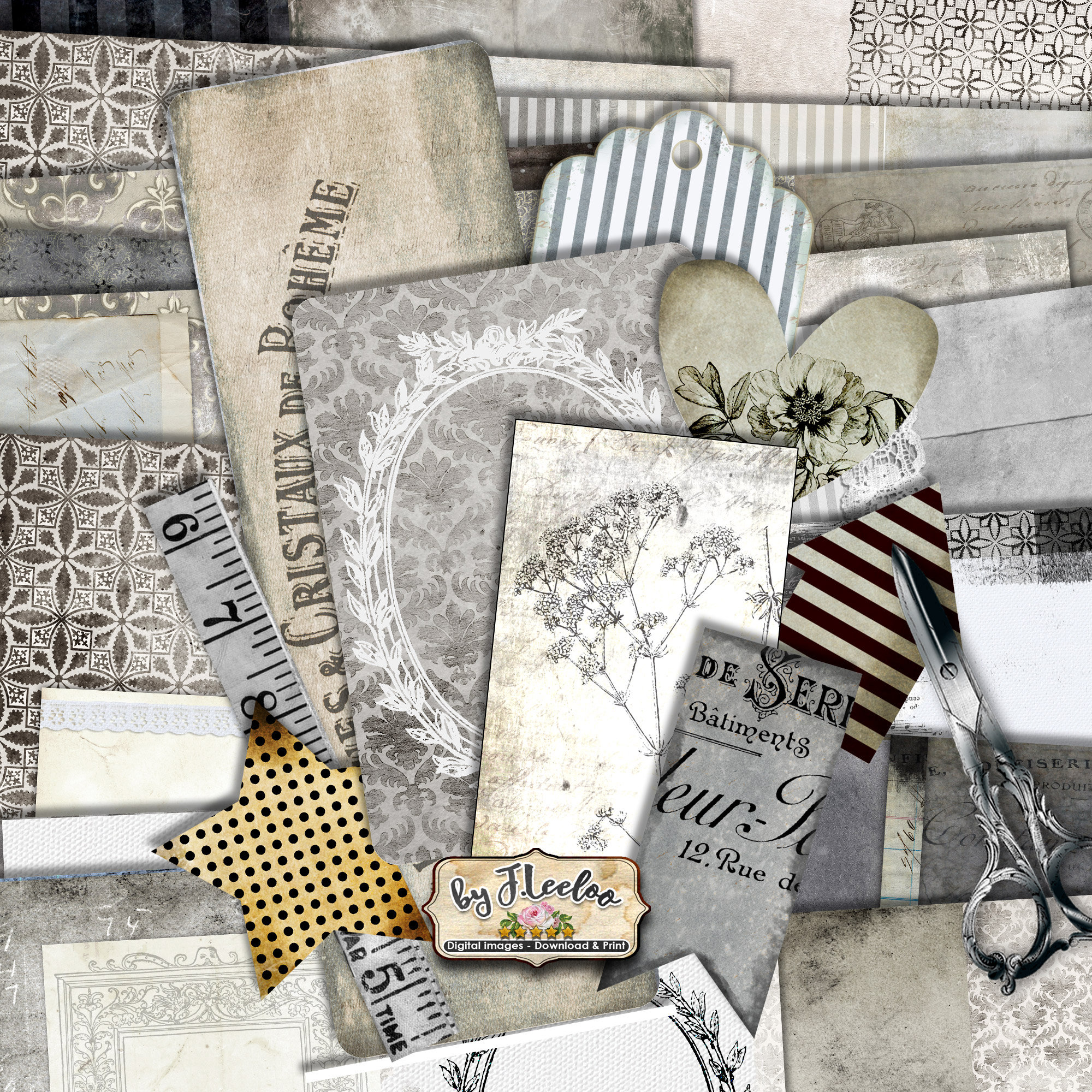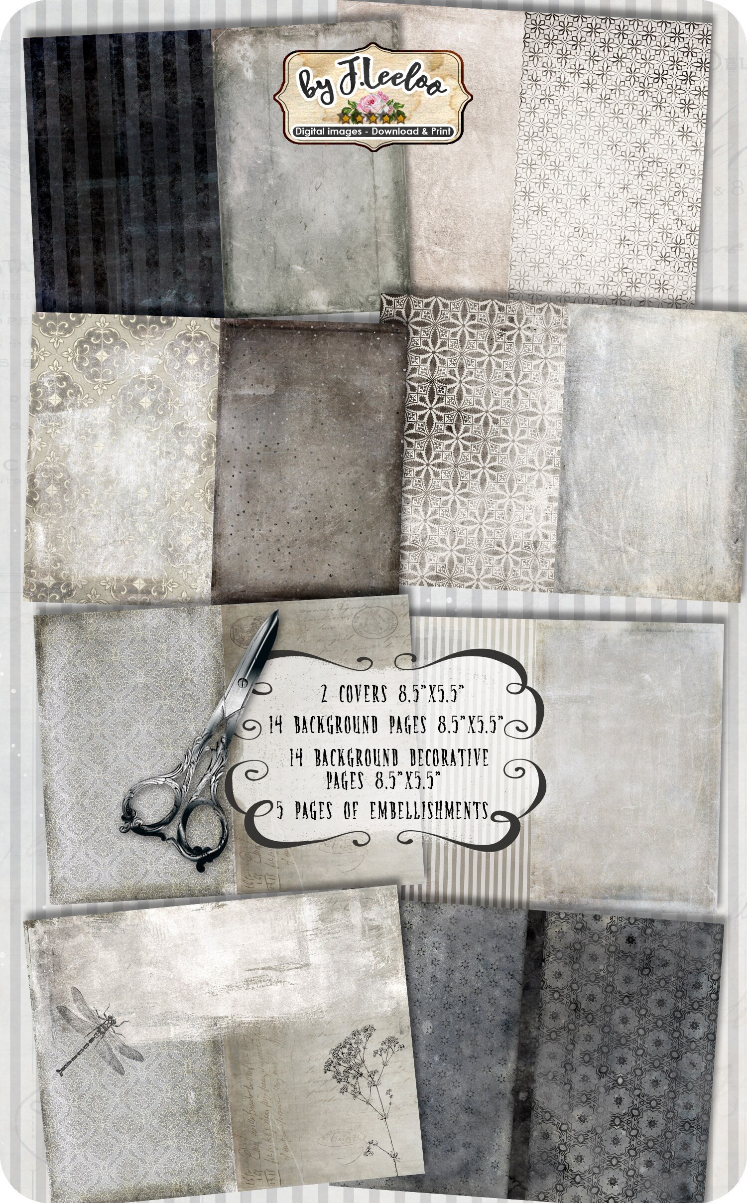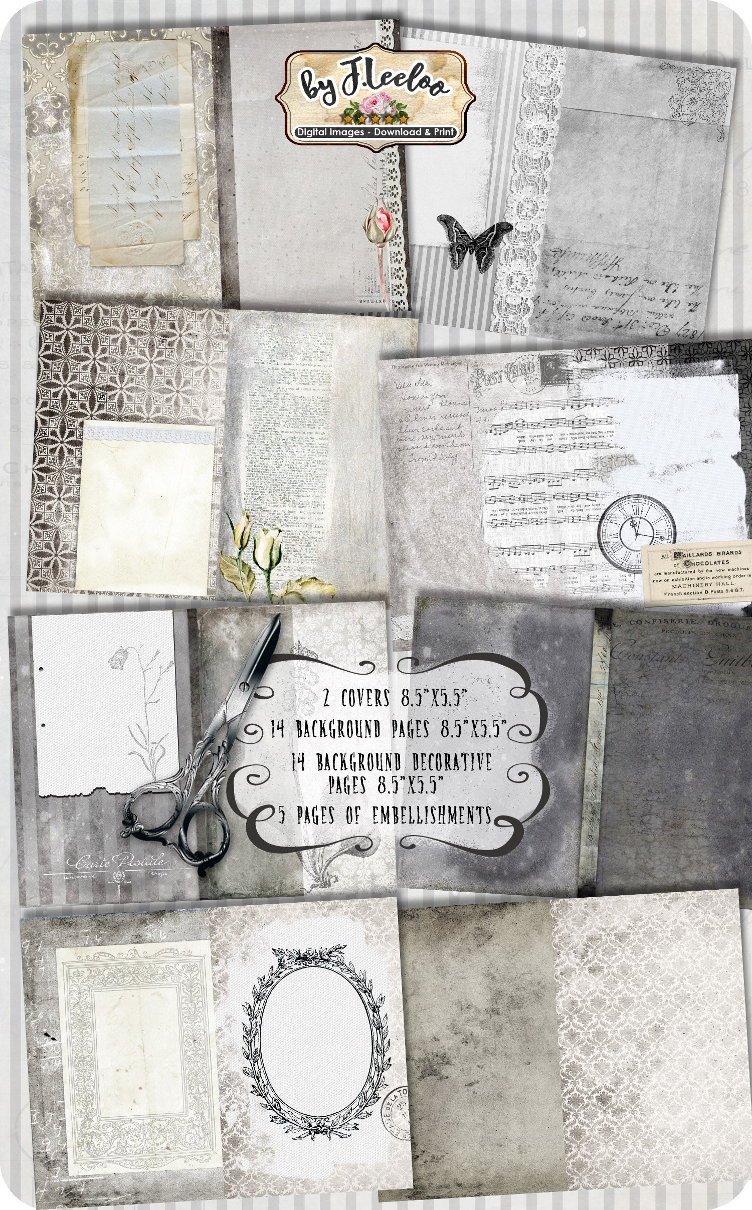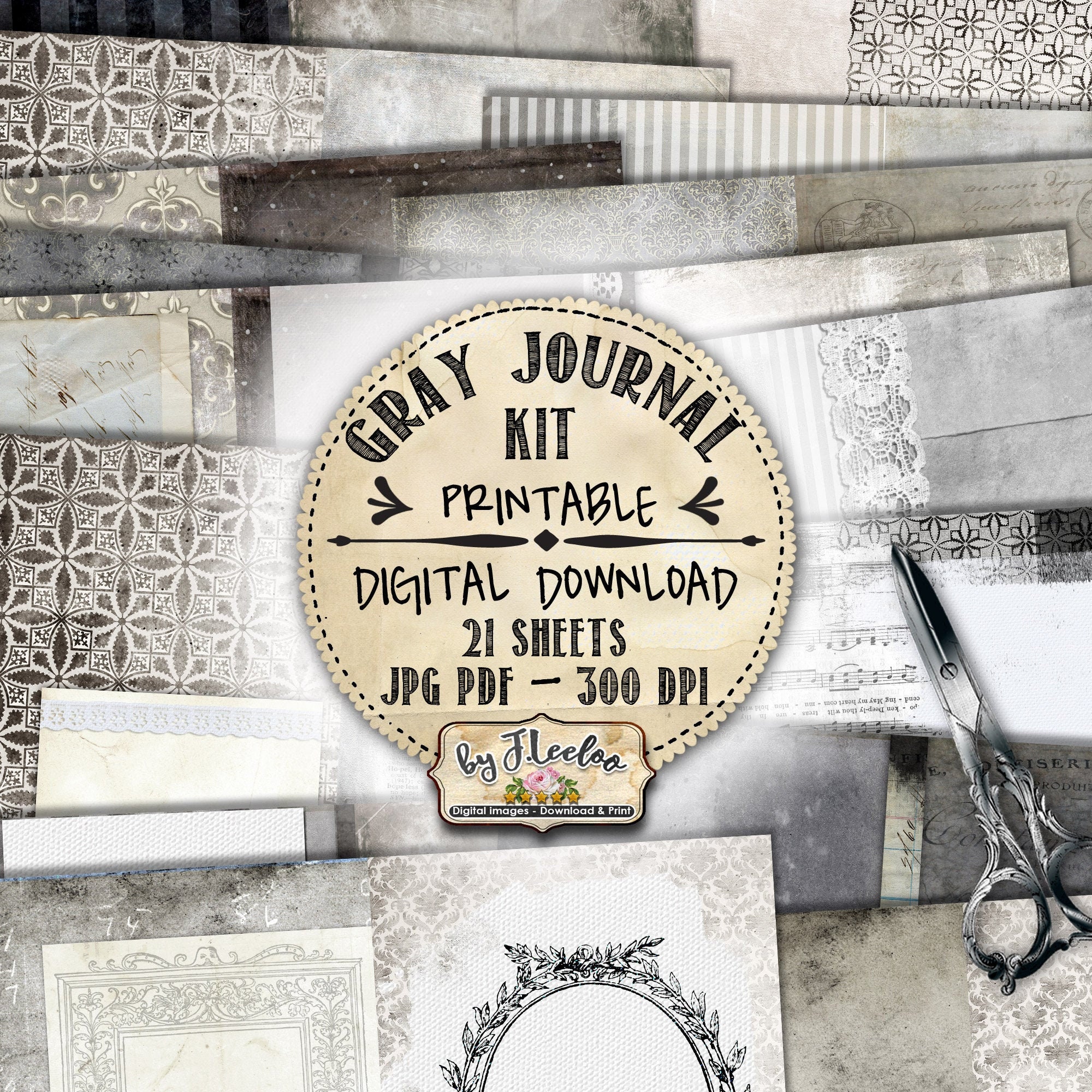 GRAY JOURNAL KIT papers shabby junk journal art crafting tattered backgrounds scrapbooking instant download printable diary.