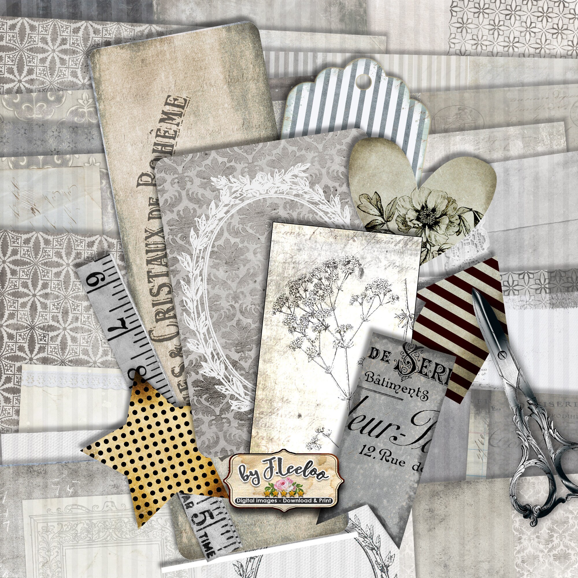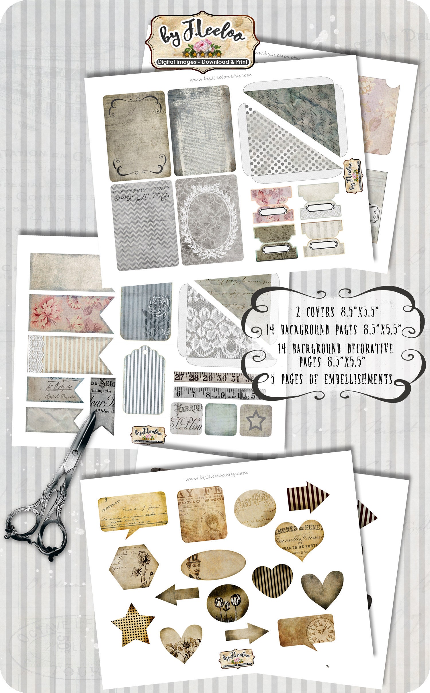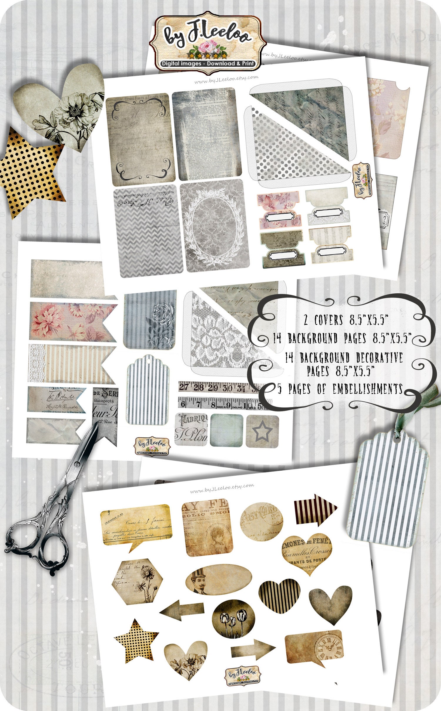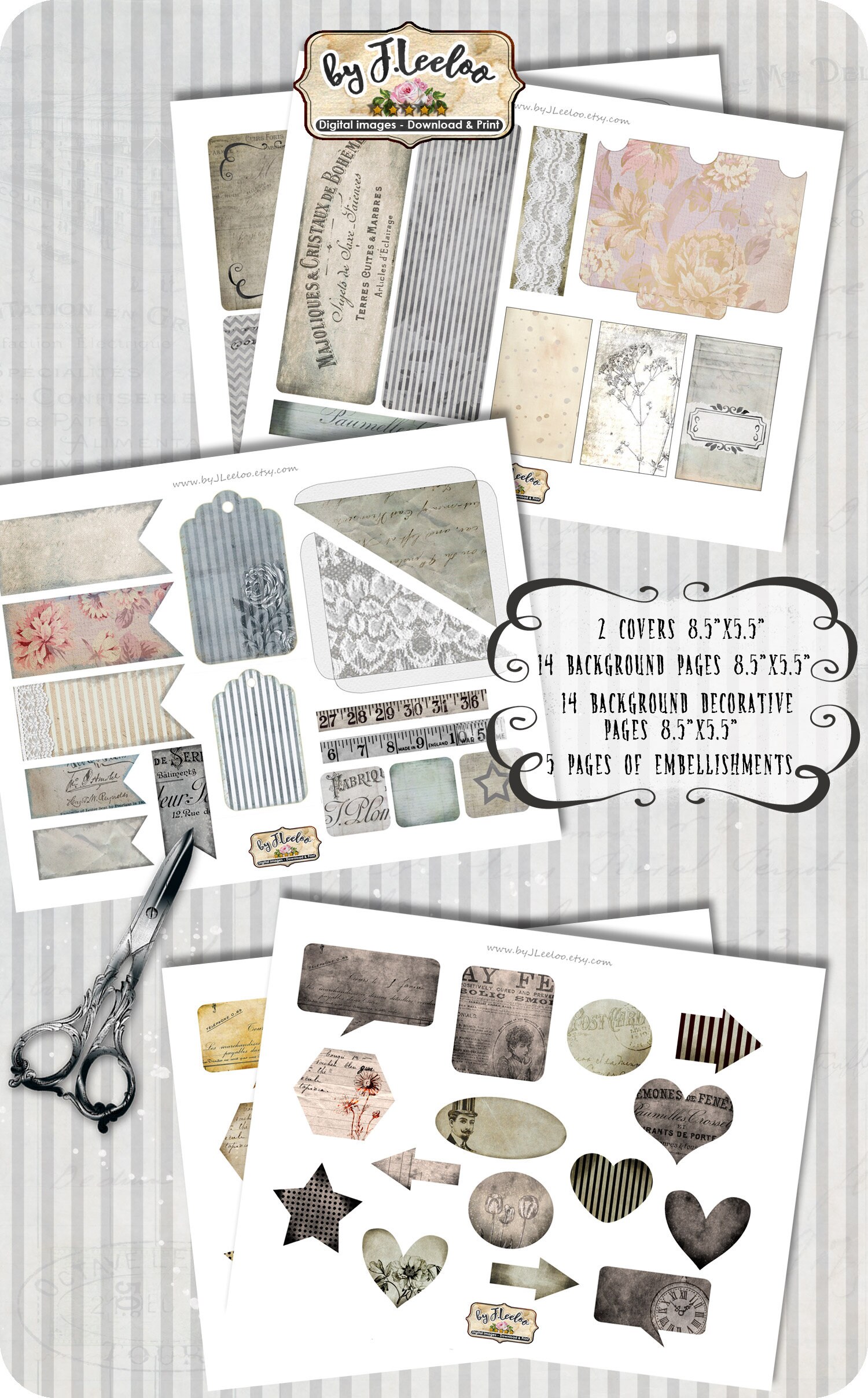 GRAY JOURNAL KIT papers shabby junk journal art crafting tattered backgrounds scrapbooking instant download printable diary.