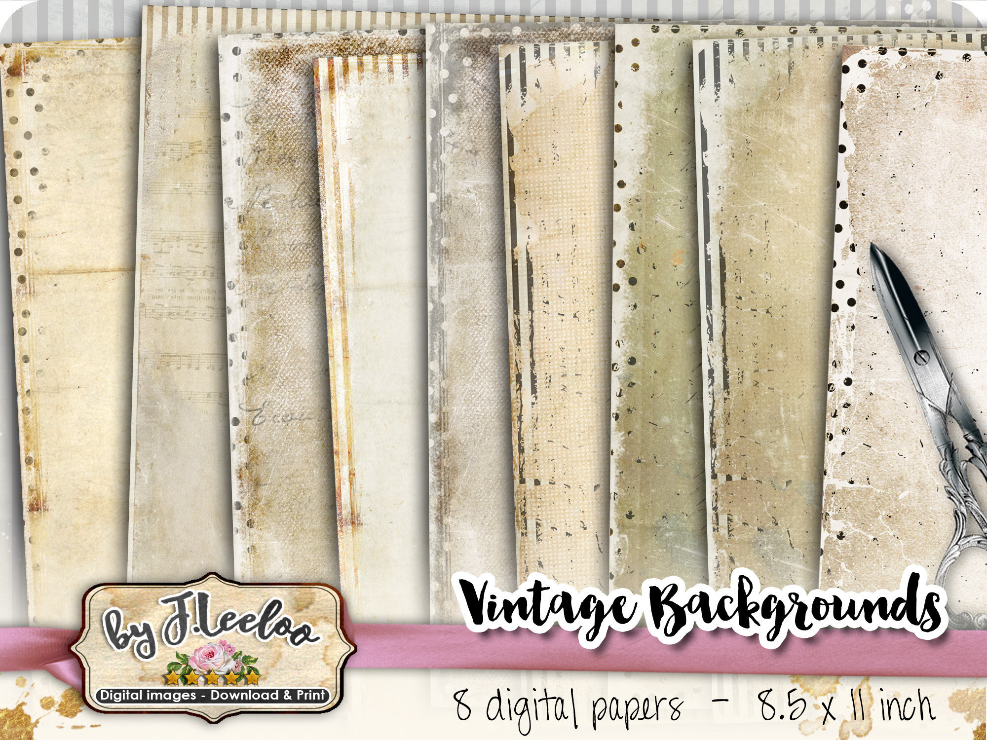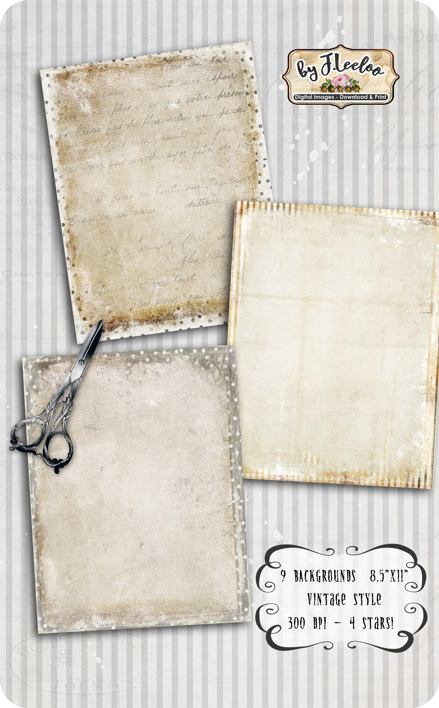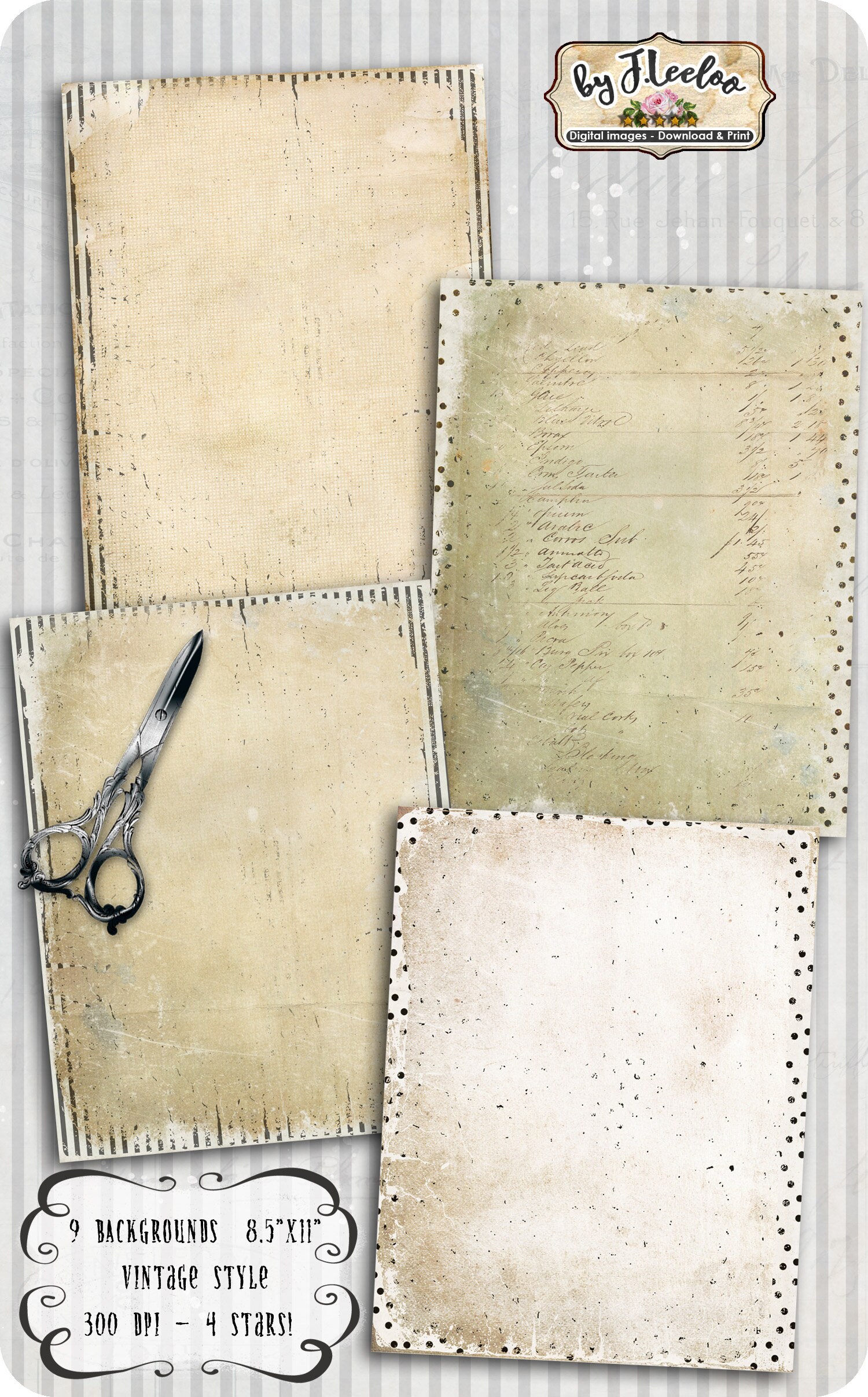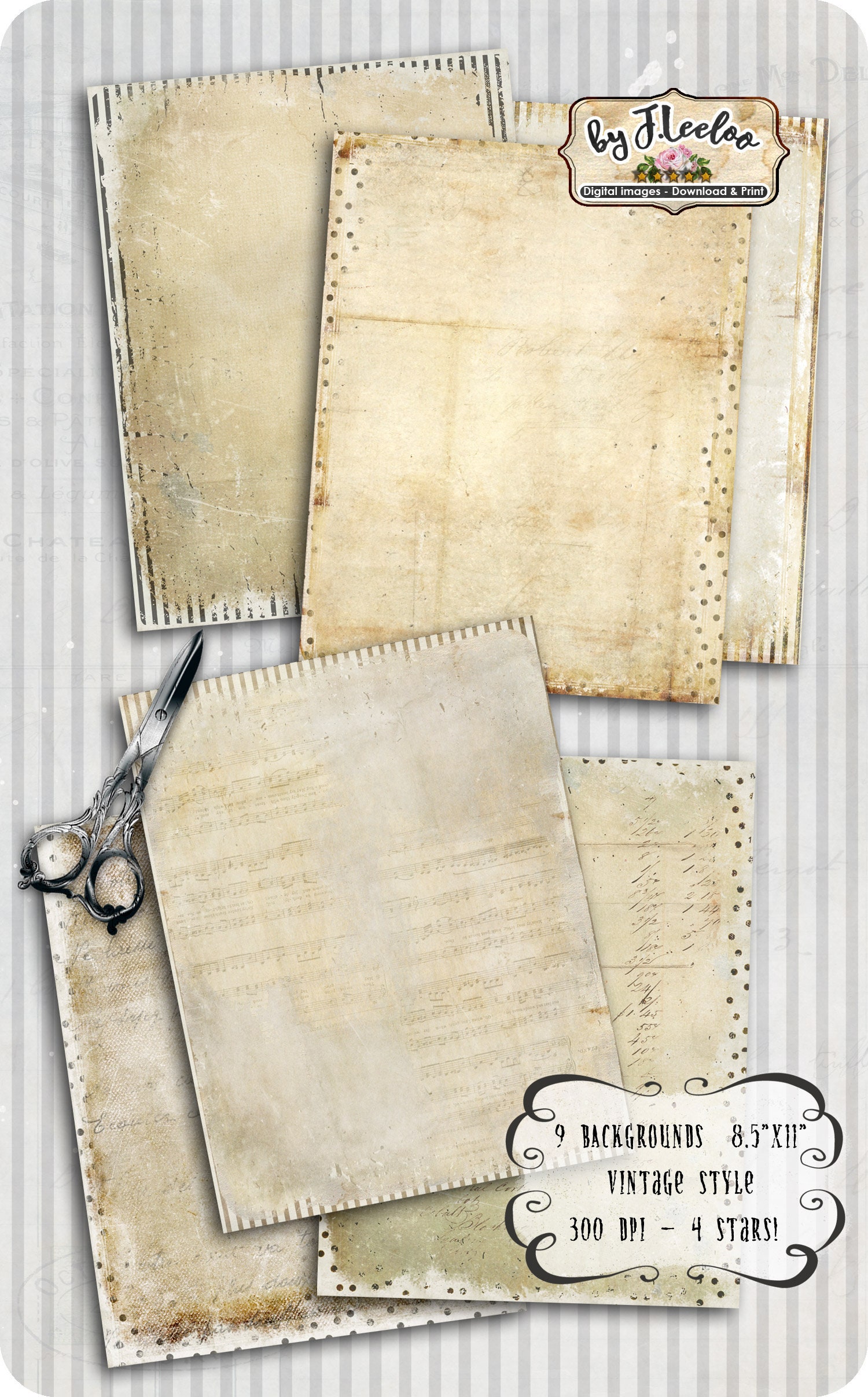 VINTAGE PAPER 9 grandi carte da 8,5x11 pollici shabby chic realizzando sfondi a brandelli scrapbooking download istantaneo diario stampabile.