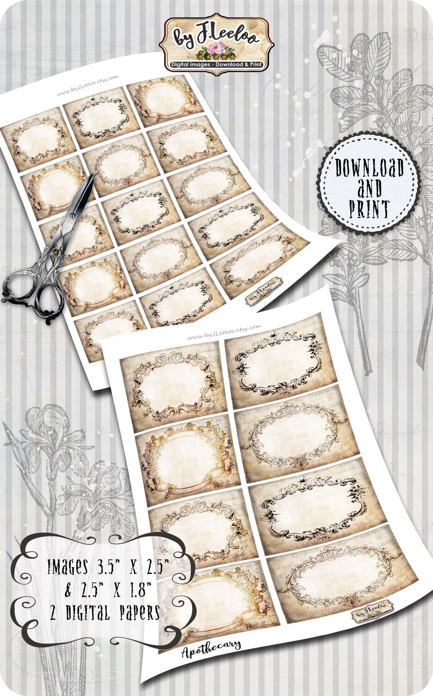 APOTHECARY - Digital collage sheets - Blank editable label tag apothecary images instant download ready to print for your bottle jar, invitation, jewelry making, stickers, scrapbook and your others craft project.