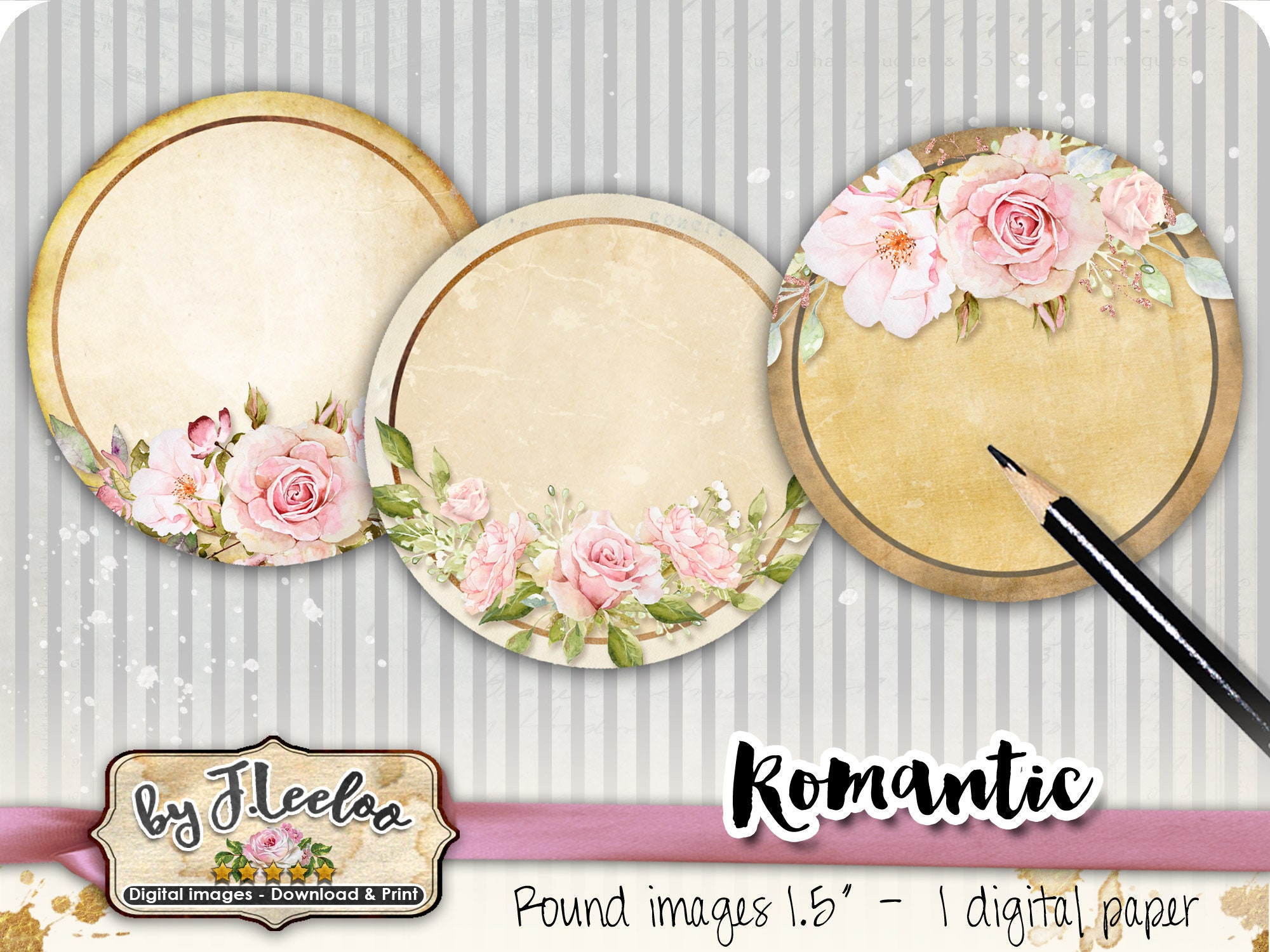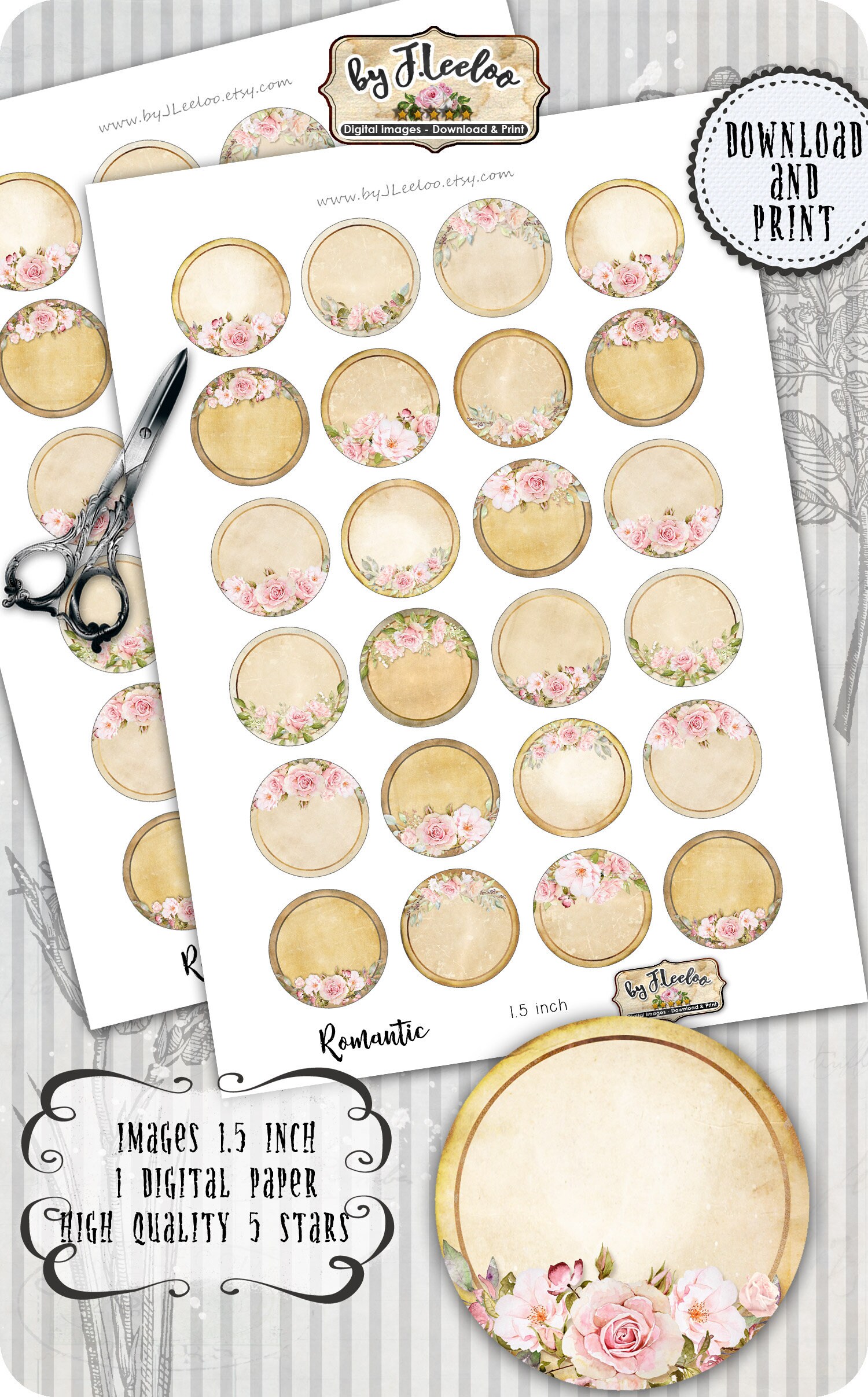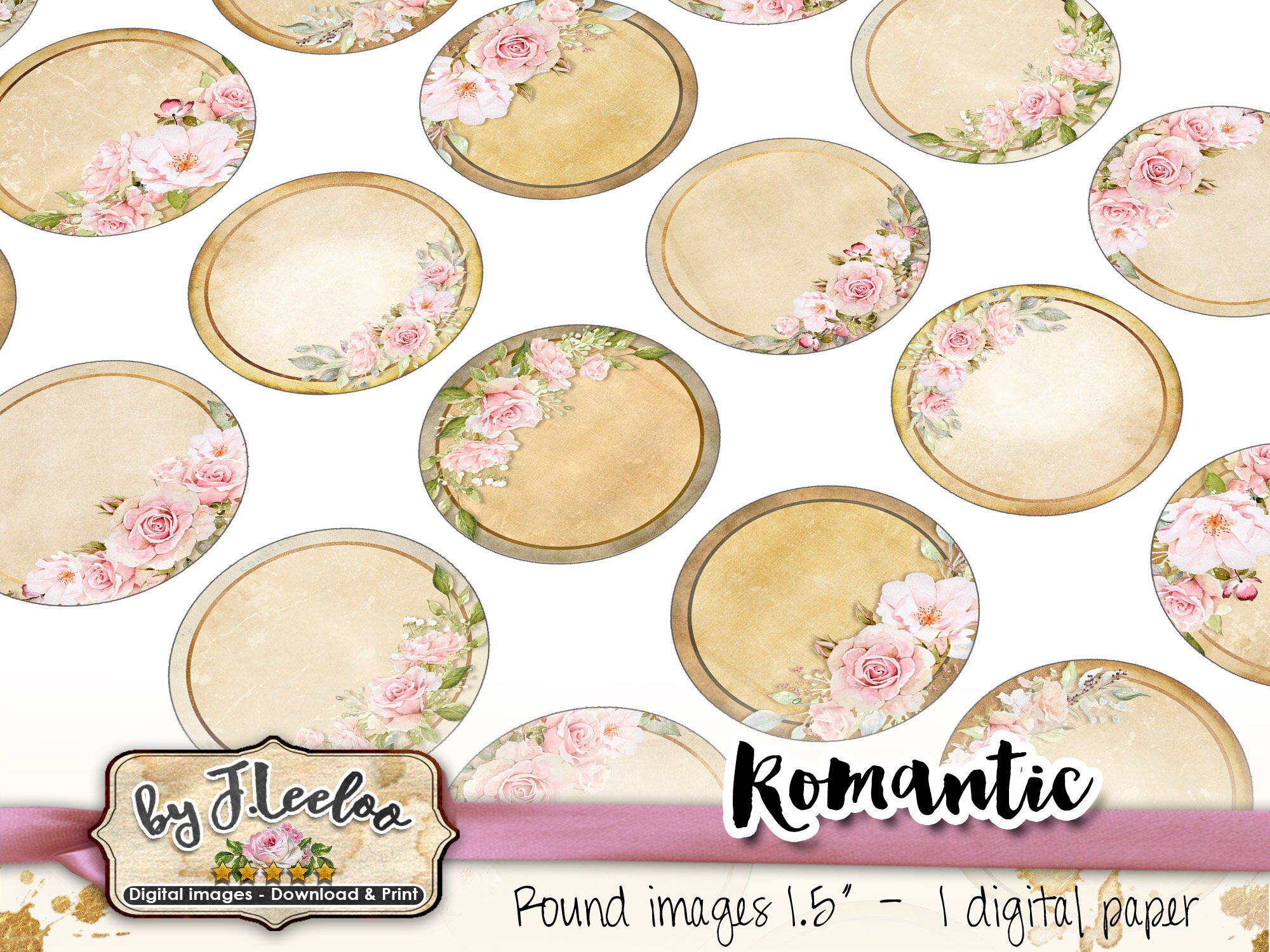 ROMANTIC digitale circles frames printable wreath shabby chic editable vintage 2.5 inch Instant Download ready to print for your jewelry making, resin pendants, rings, earrings and button, for magnets, stickers, scrapbook and your others craft project.