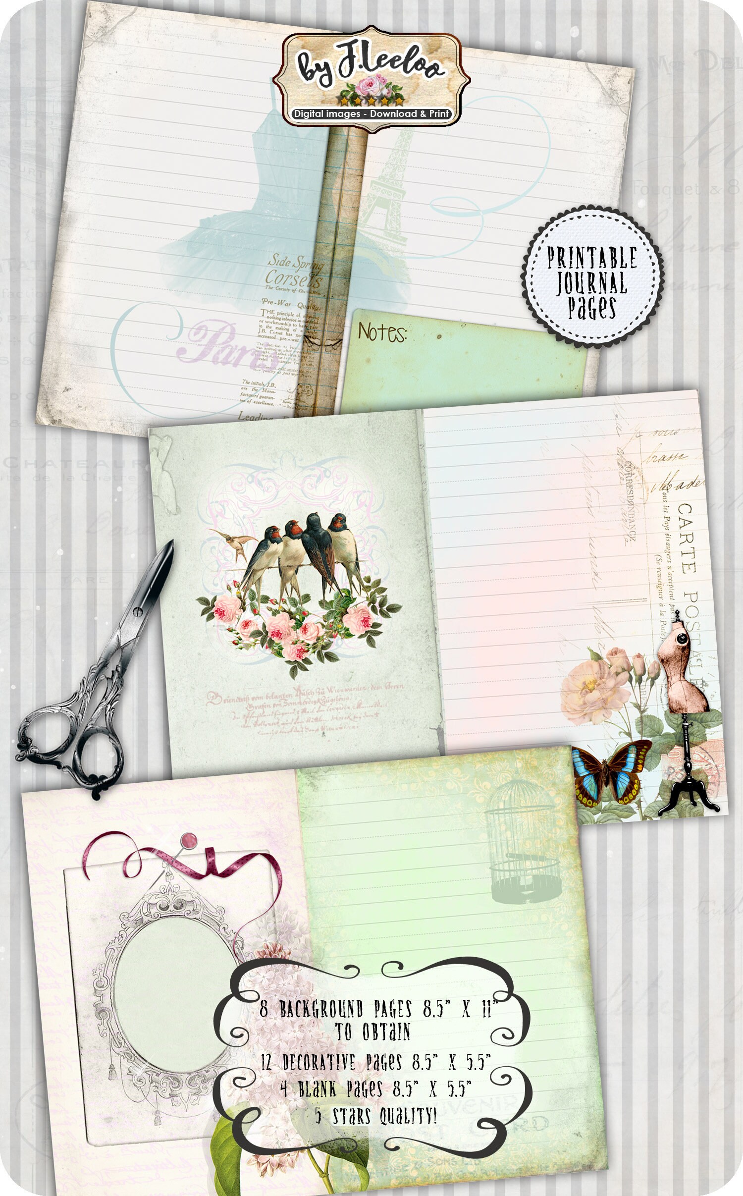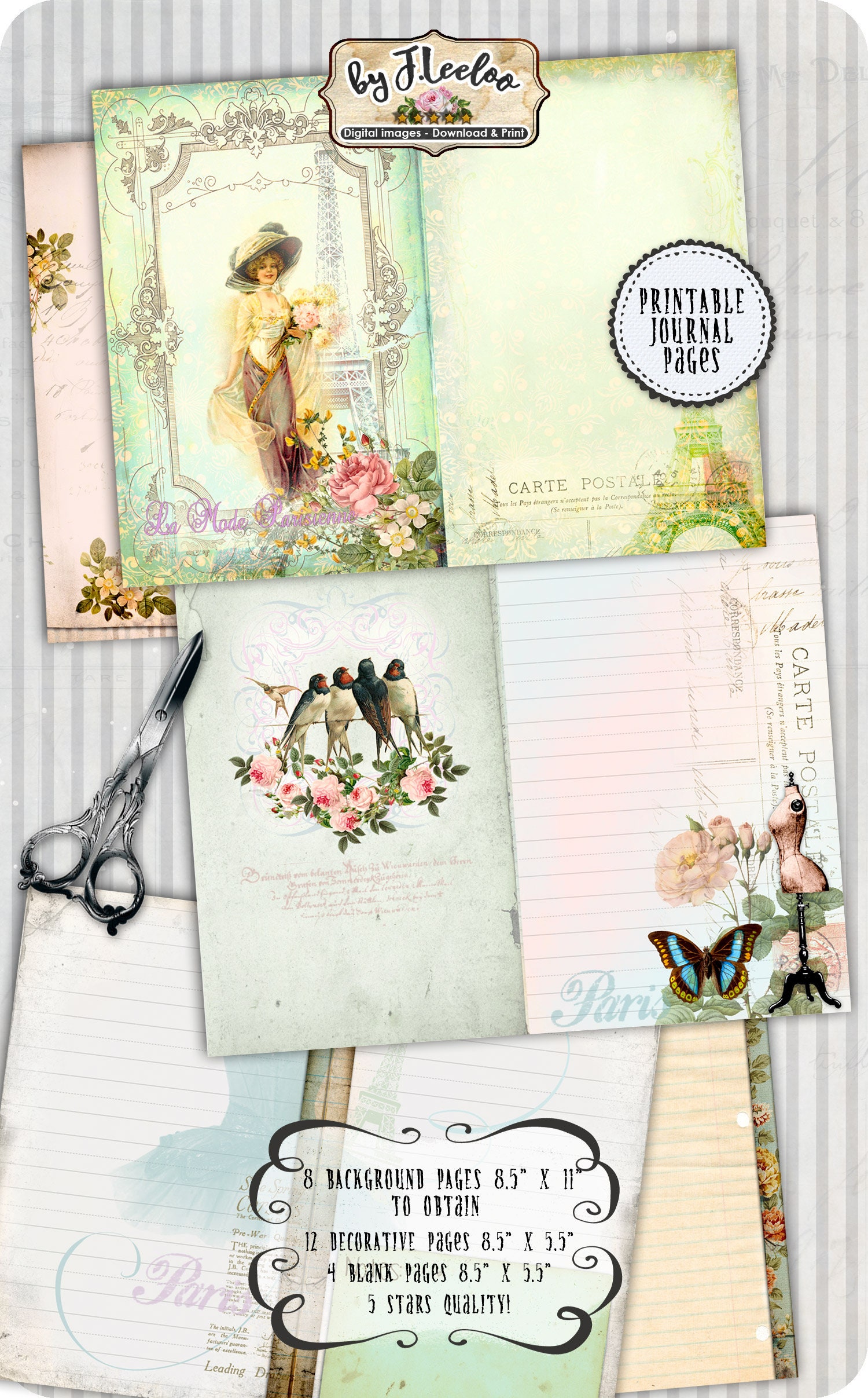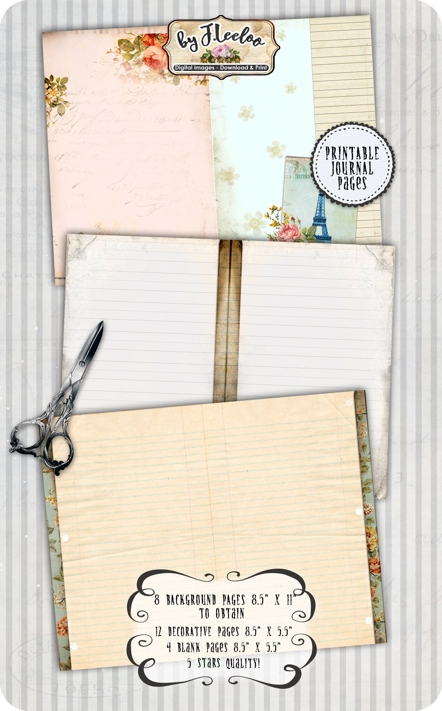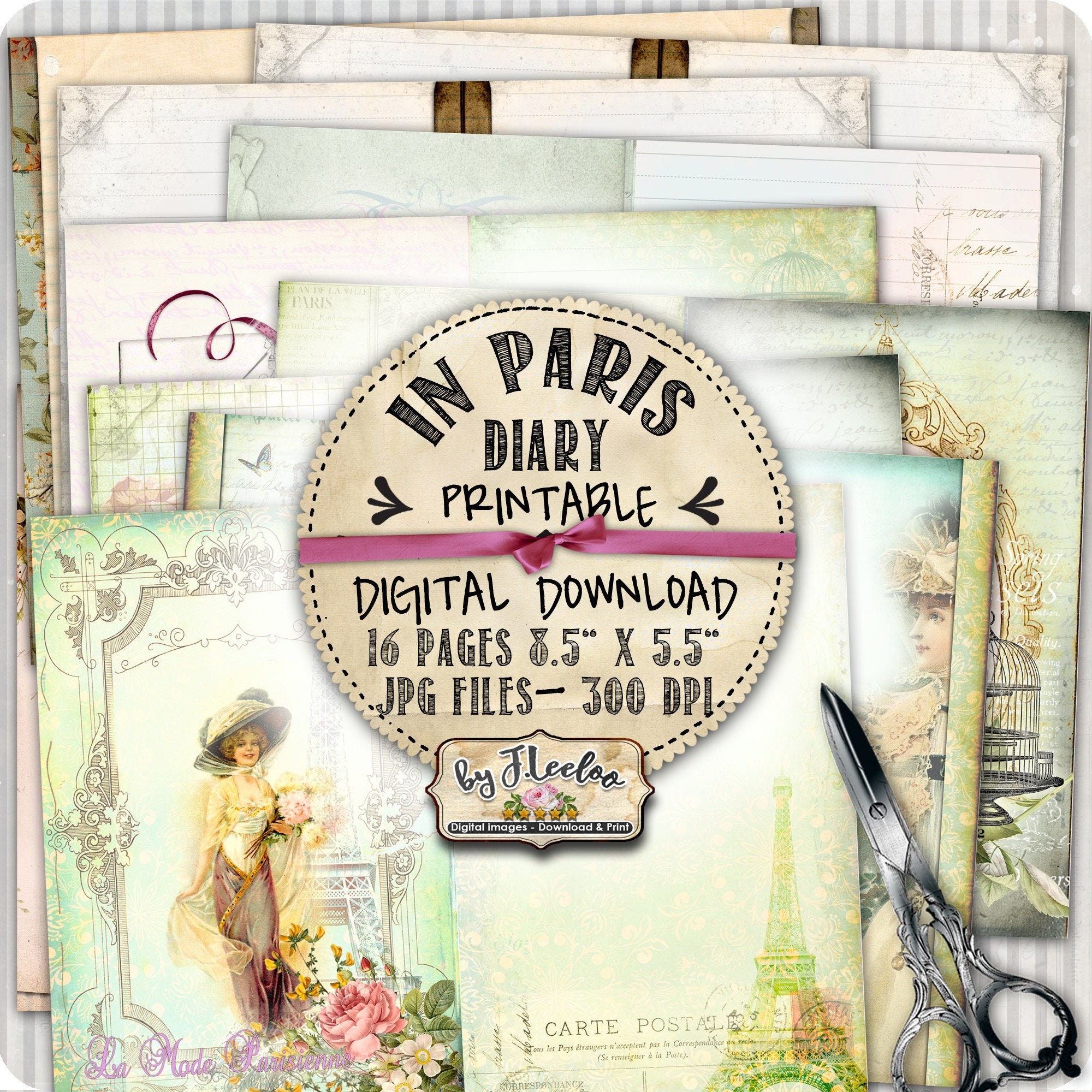 IN PARIS vintage french journal diary art crafting tattered backgrounds scrapbooking instant download printable diary.