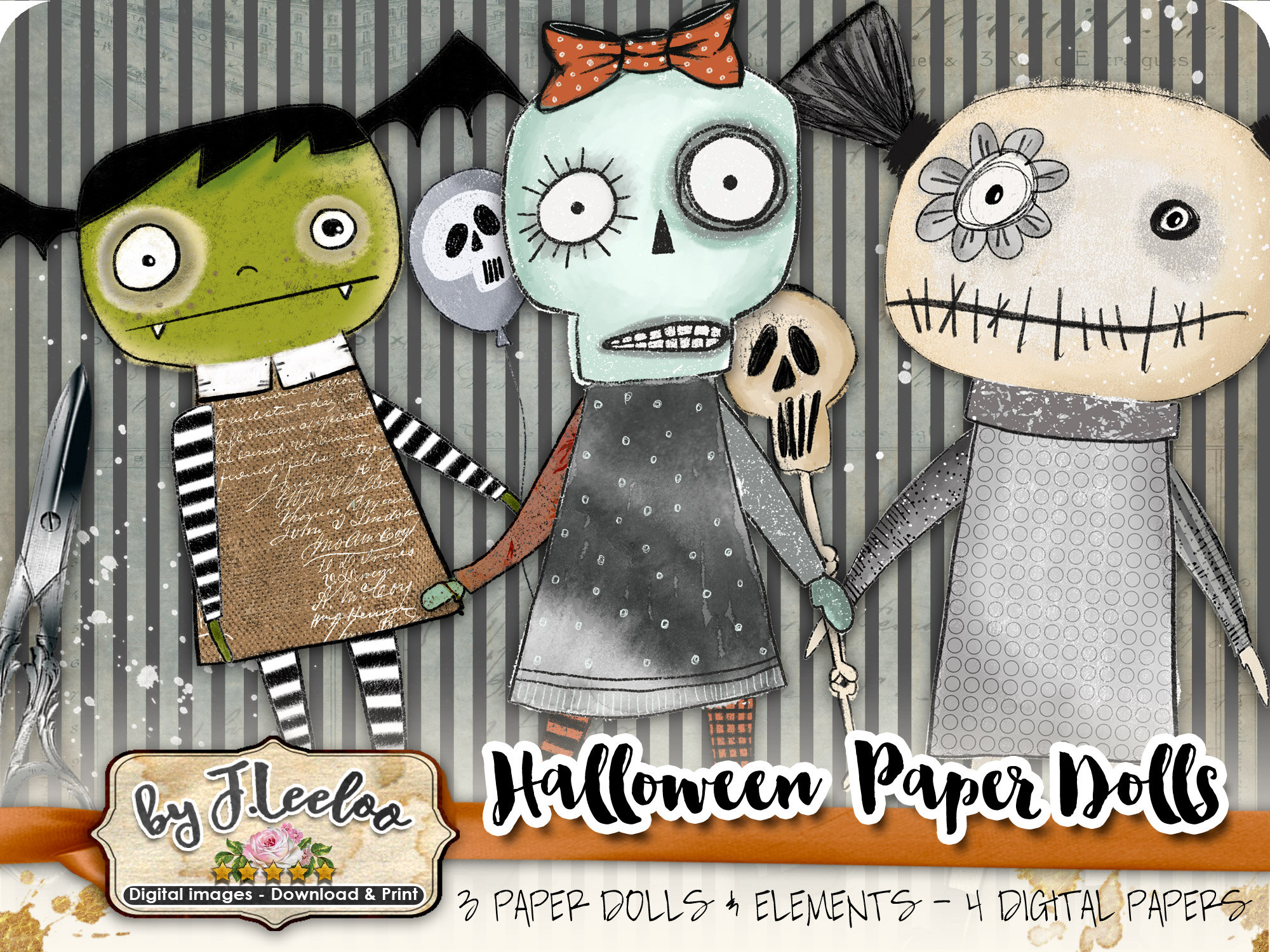 PAPER DOLL HALLOWEEN Digital collage sheet HAND DRAWN - Digital paper: printable halloween paper doll for your artwork and crafting project - Altered art, steampunk, scrapbook, vintage project etc... free your imagination!