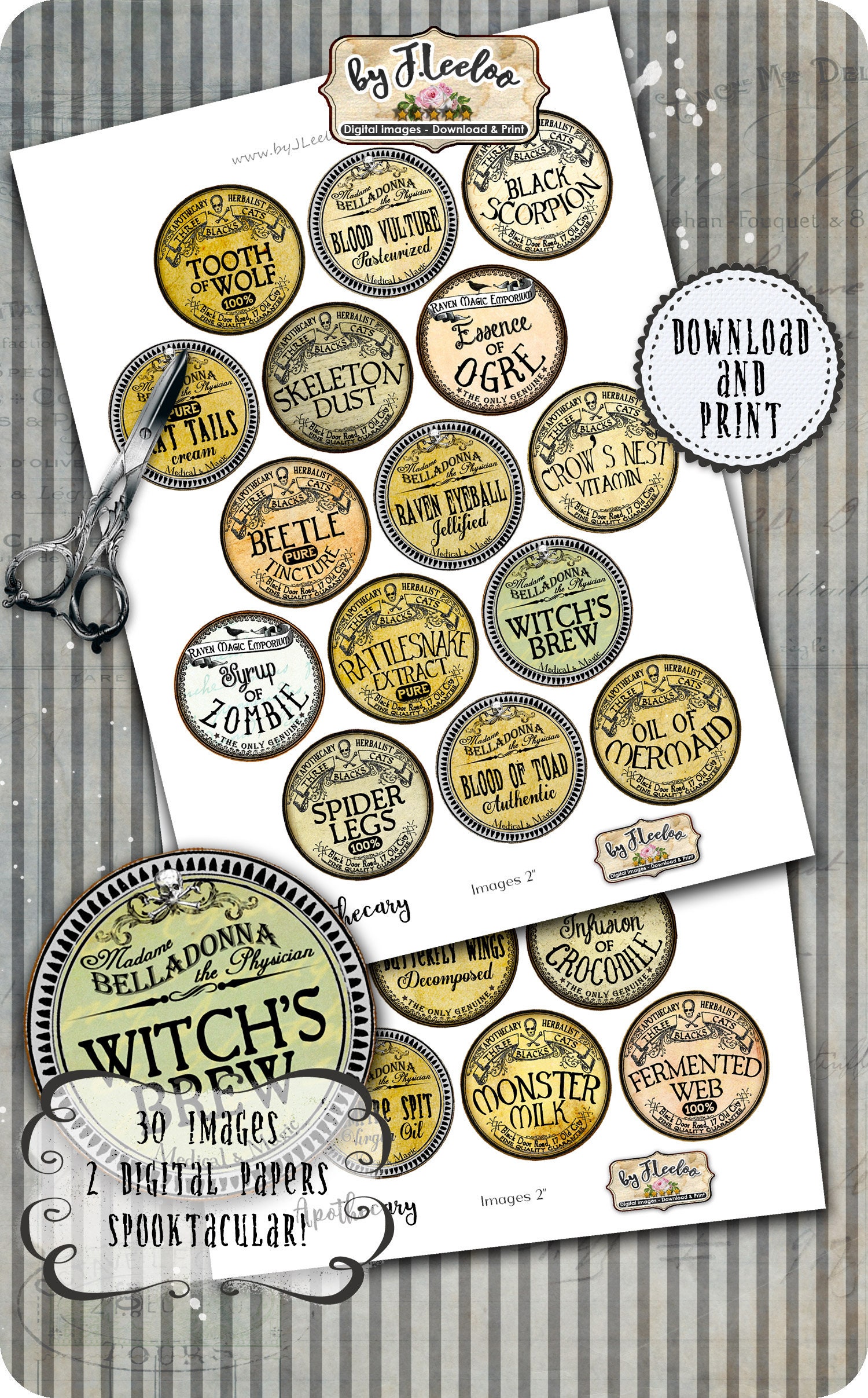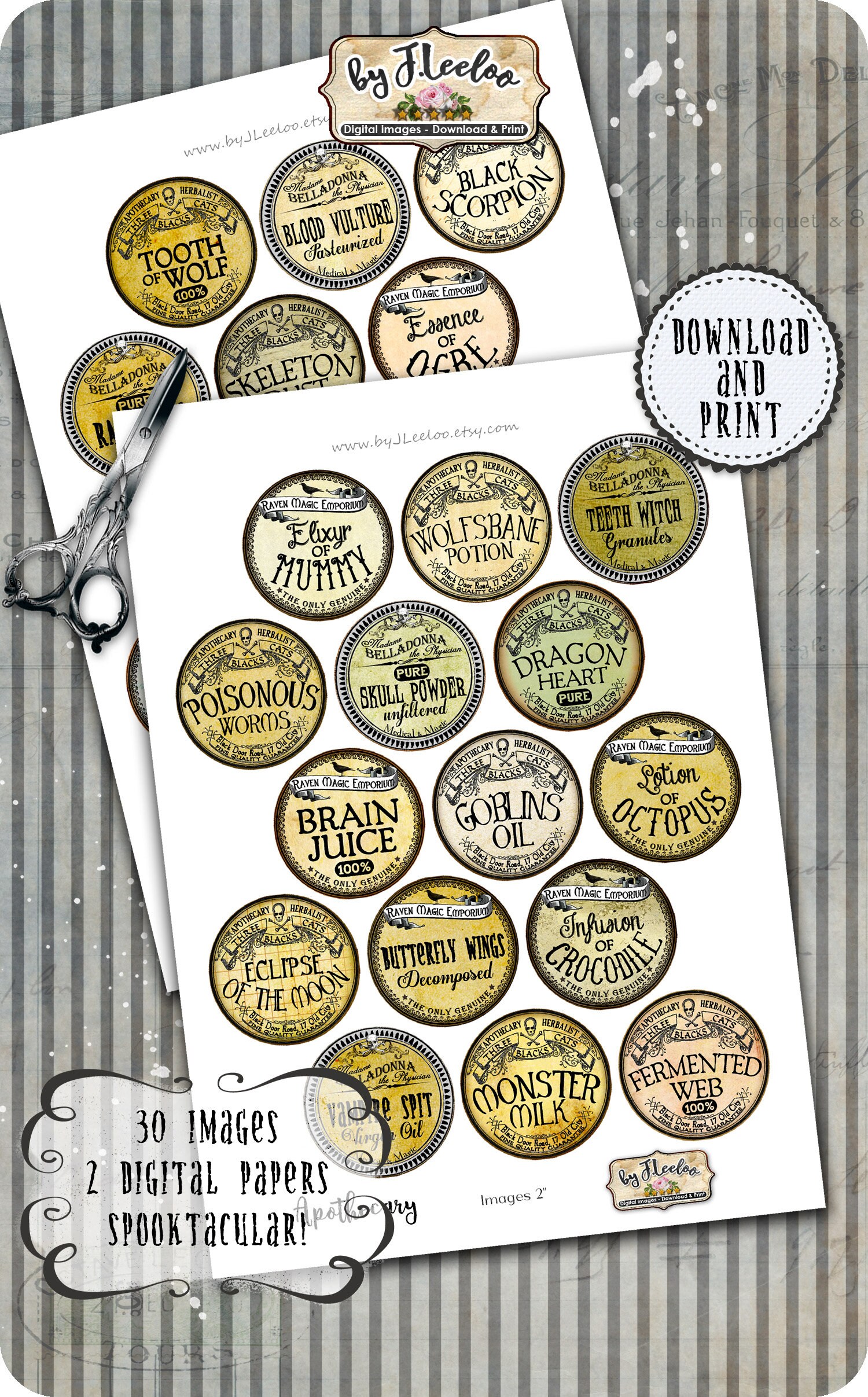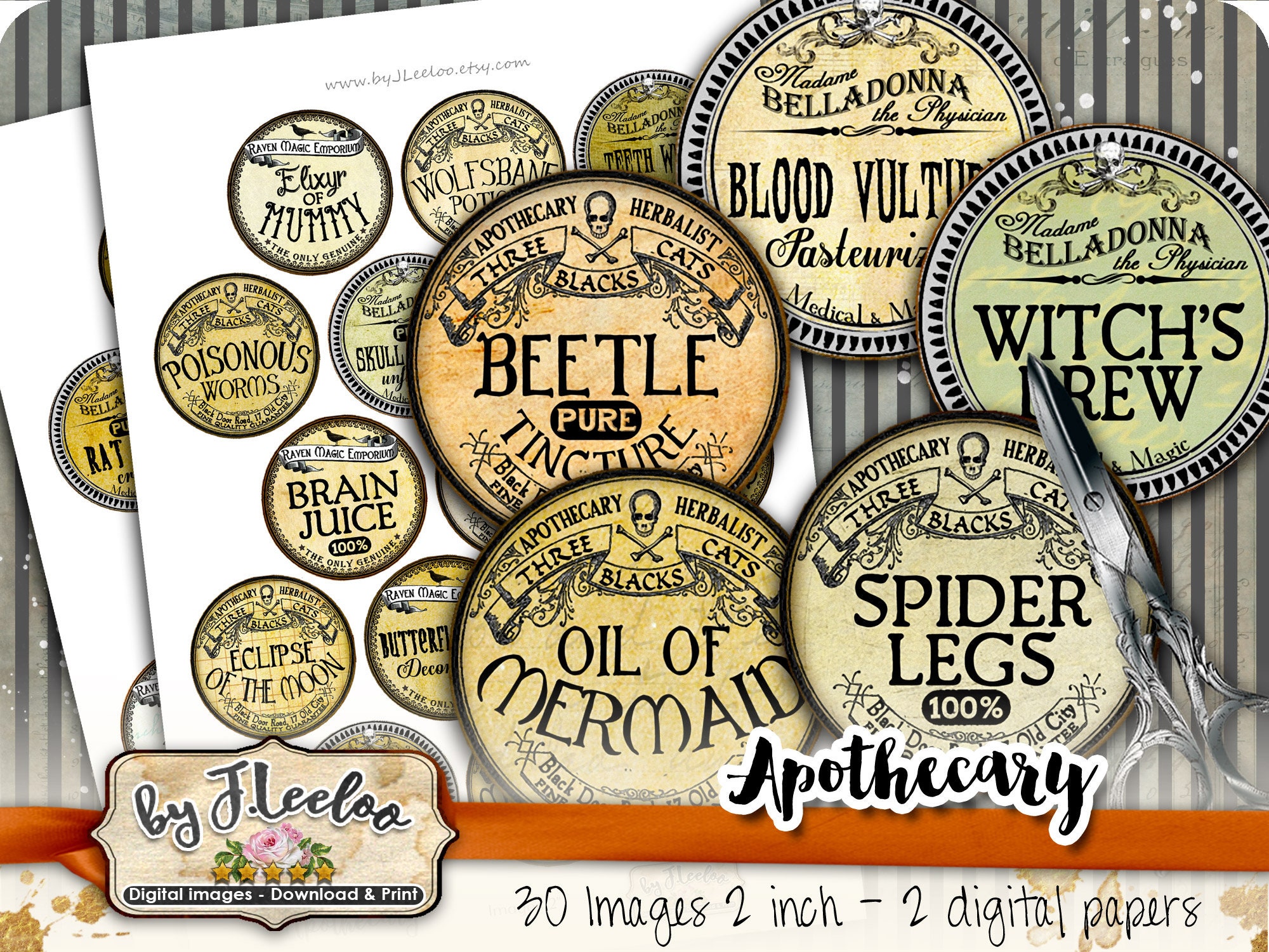 APOTHECARY Instant Download - Digital collage sheets - Round printable images for resin pendants, charms, card making, button, magnets, stickers and all your craft project.