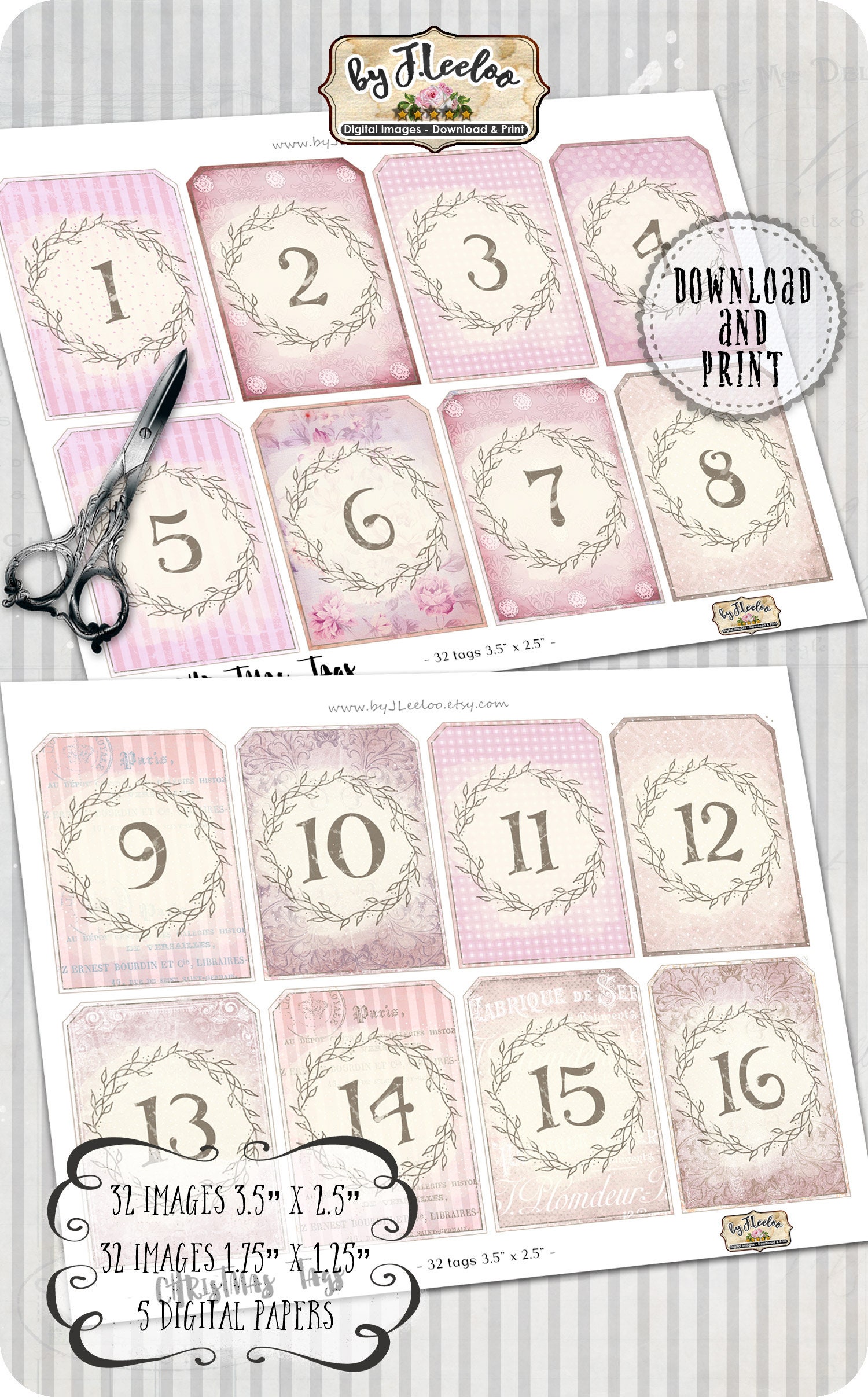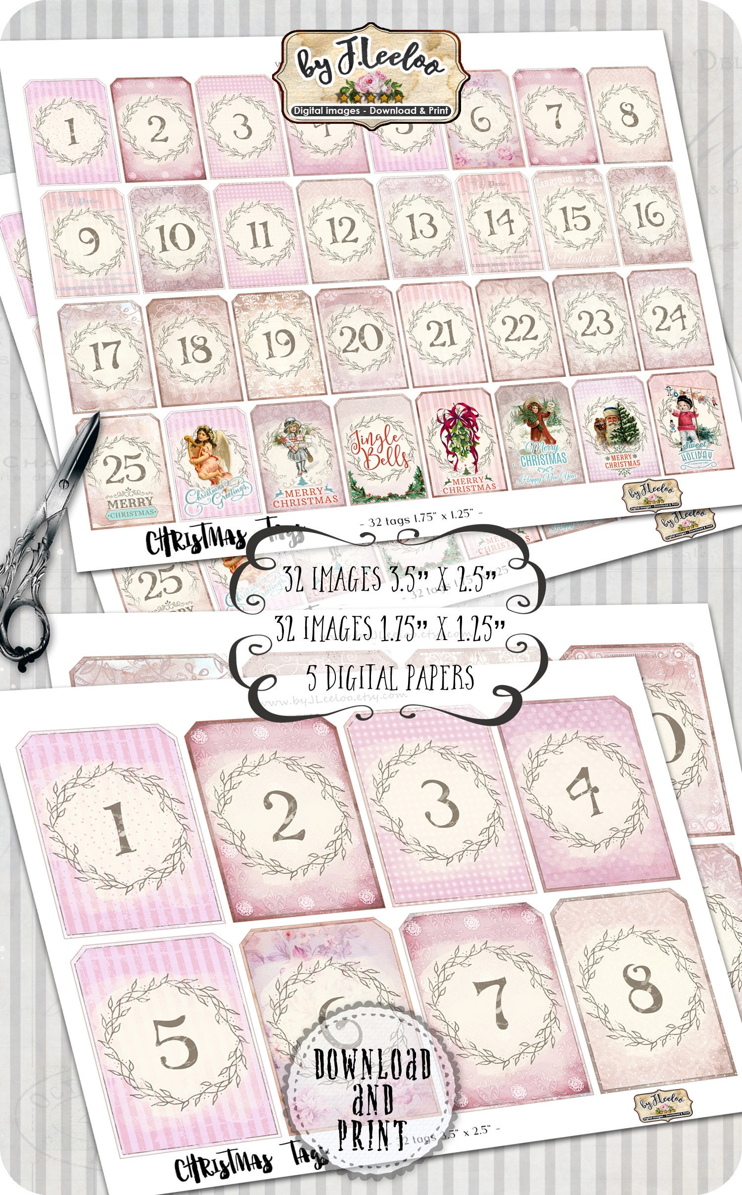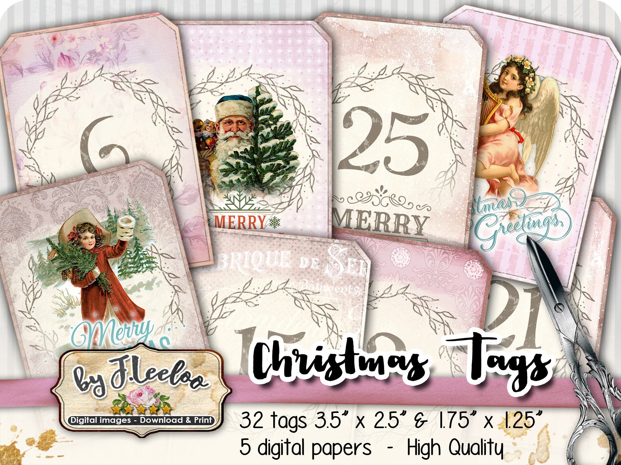 CHRISTMAS - Digital collage sheets: daily calendar daily planner countdowndownload labels and print for paper craft gift tags vintage ephemera scrapbooking downloadable graphic