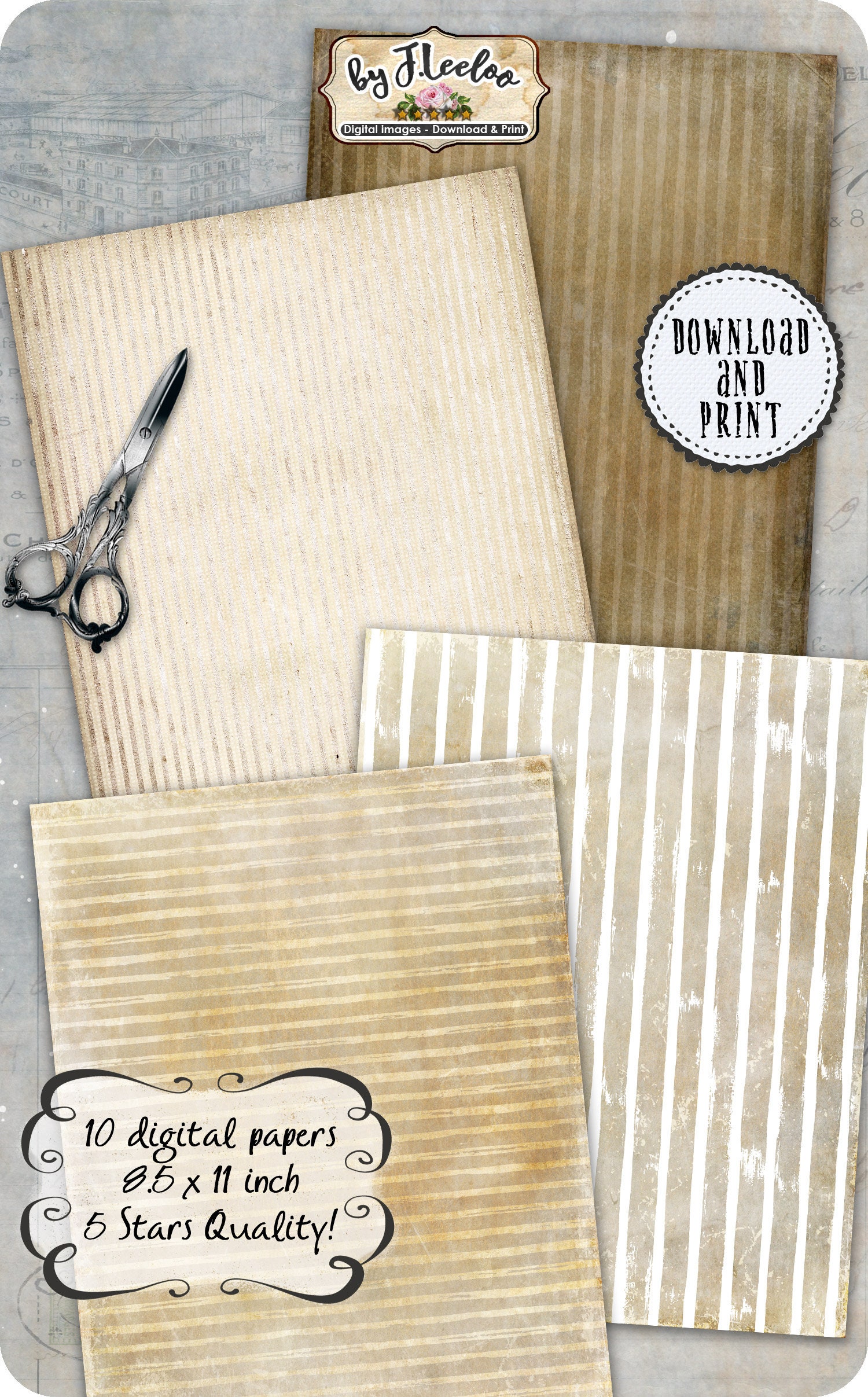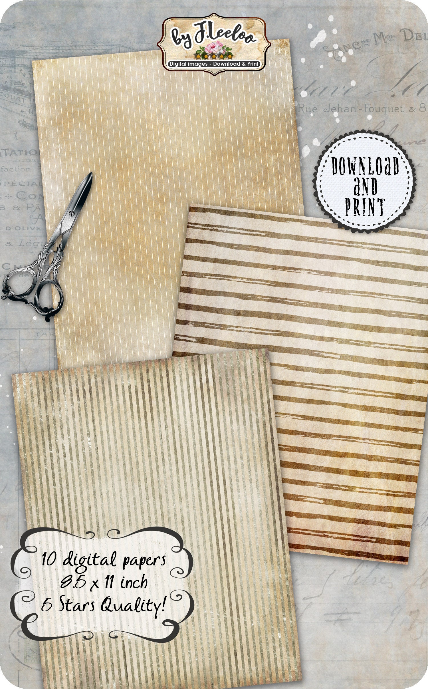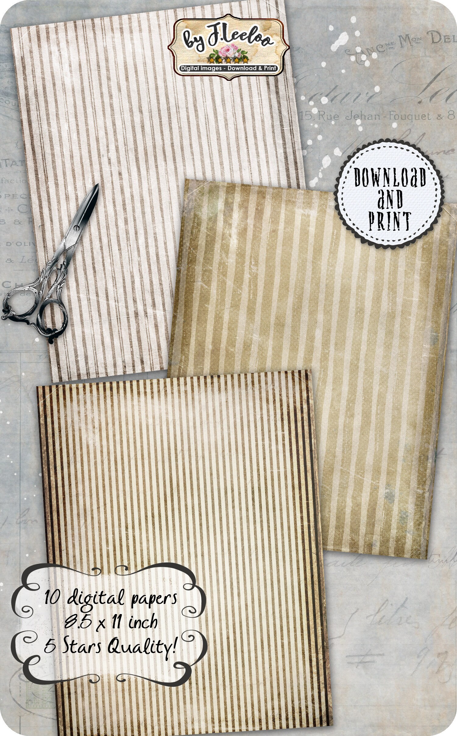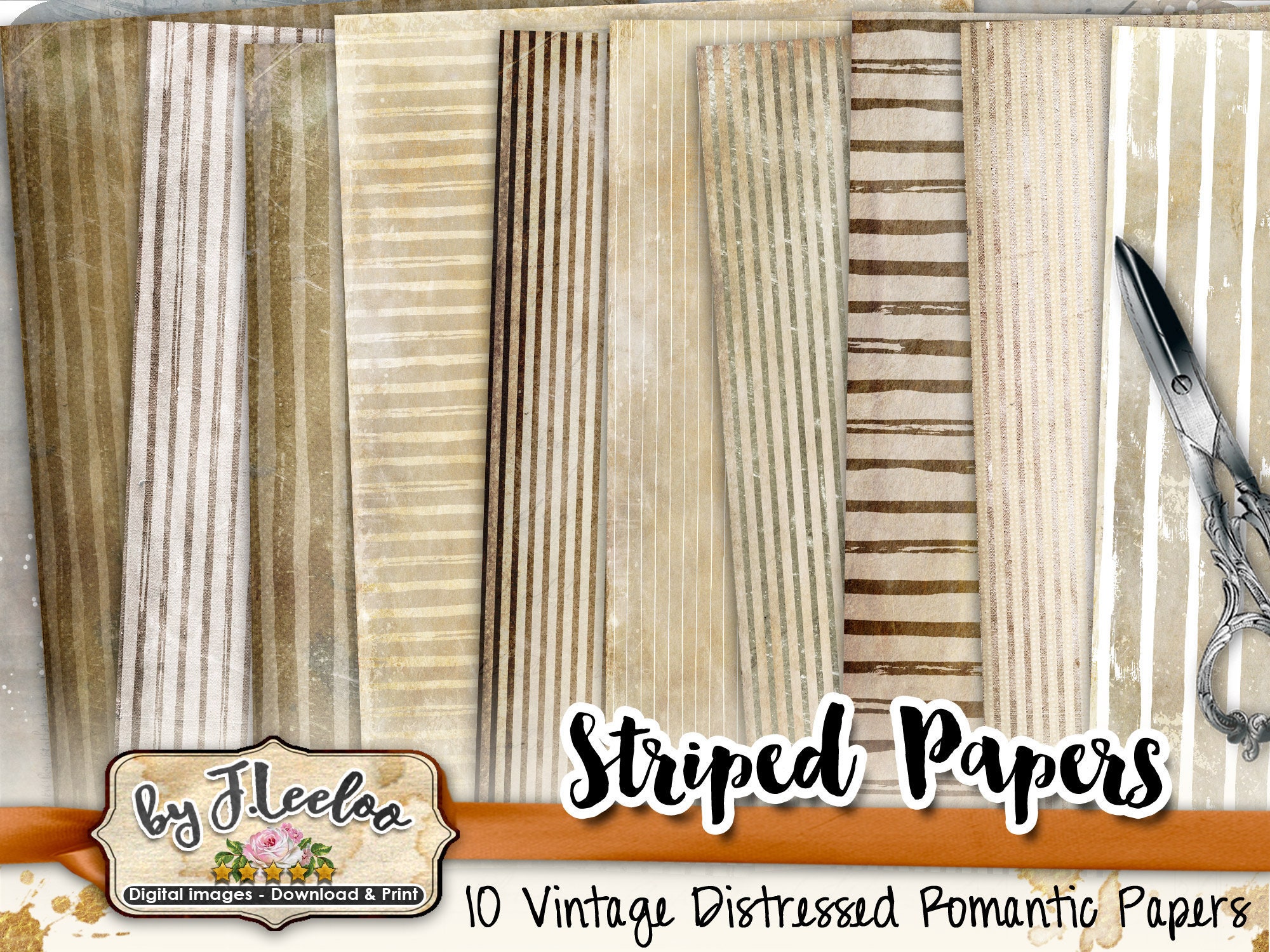 STRIPED PAPERS Instant Download - Digital collage sheets pack - vintage distressed documents digital paper - Large images for scrapbook, background, artwork.